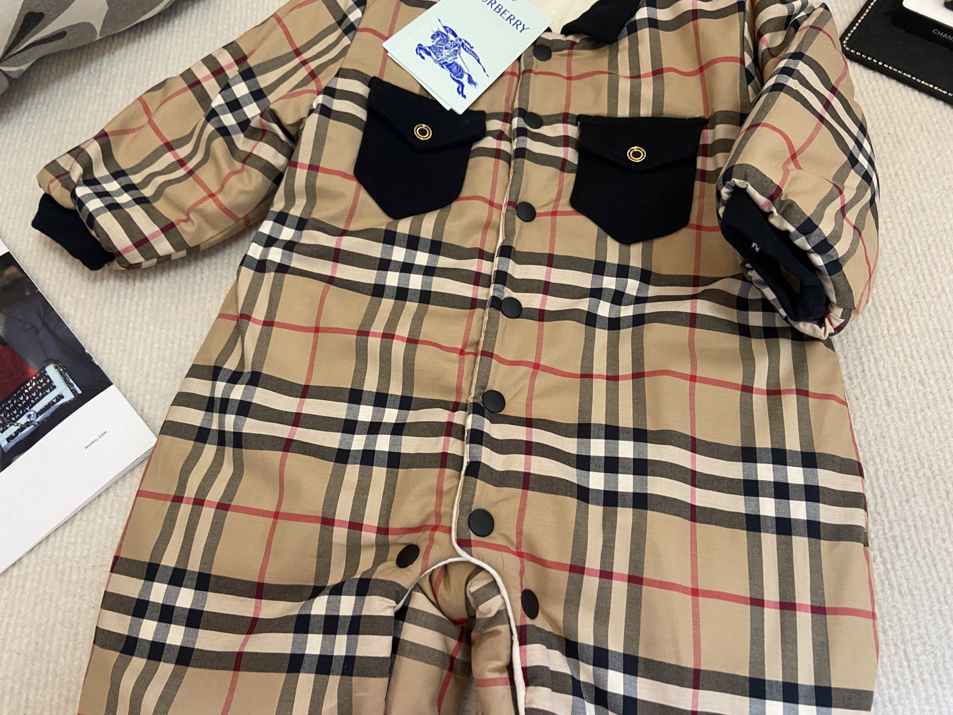 This Burberry baby romper is a must-have addition to your little one's wardrobe, combining classic style with practical features for both baby and parents.