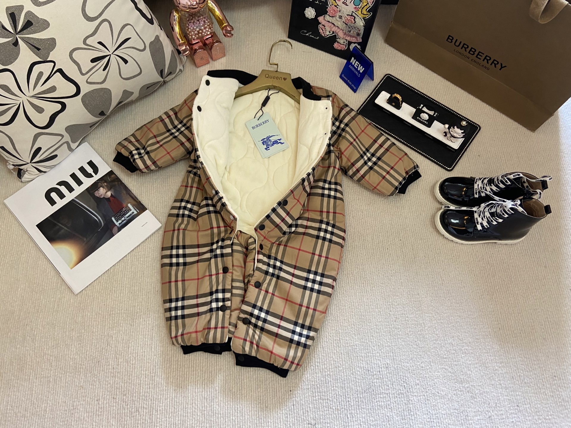 Burberry Baby Classic Check Cotton Padded Romper - Infant Winter Warm Jumpsuit