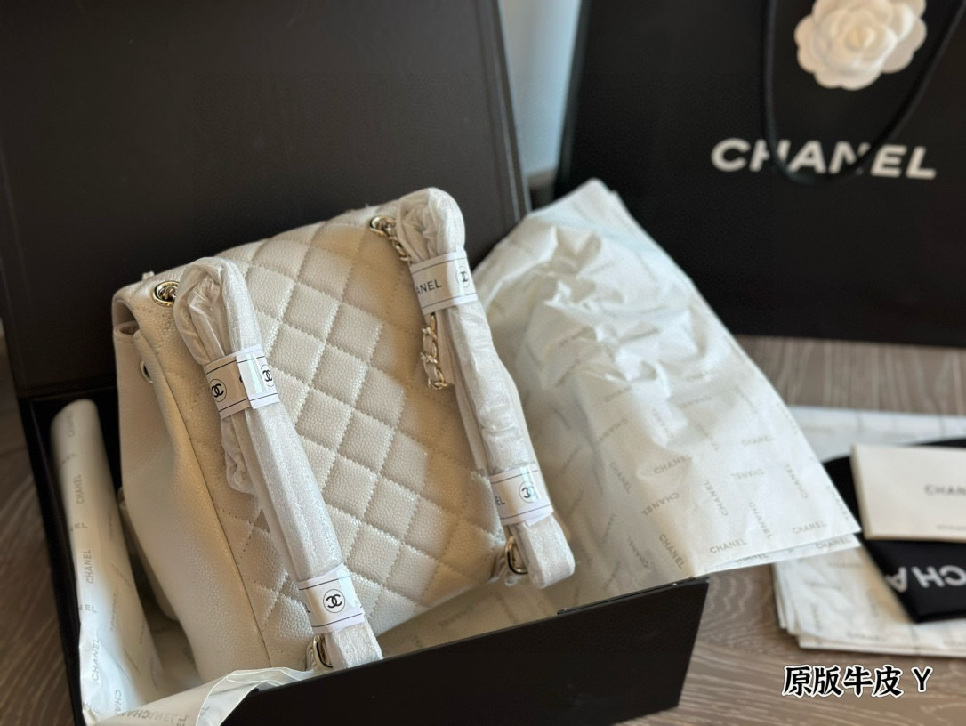 Chanel Duma Backpack, Quilted Leather, Top Handle & Chain Straps, White