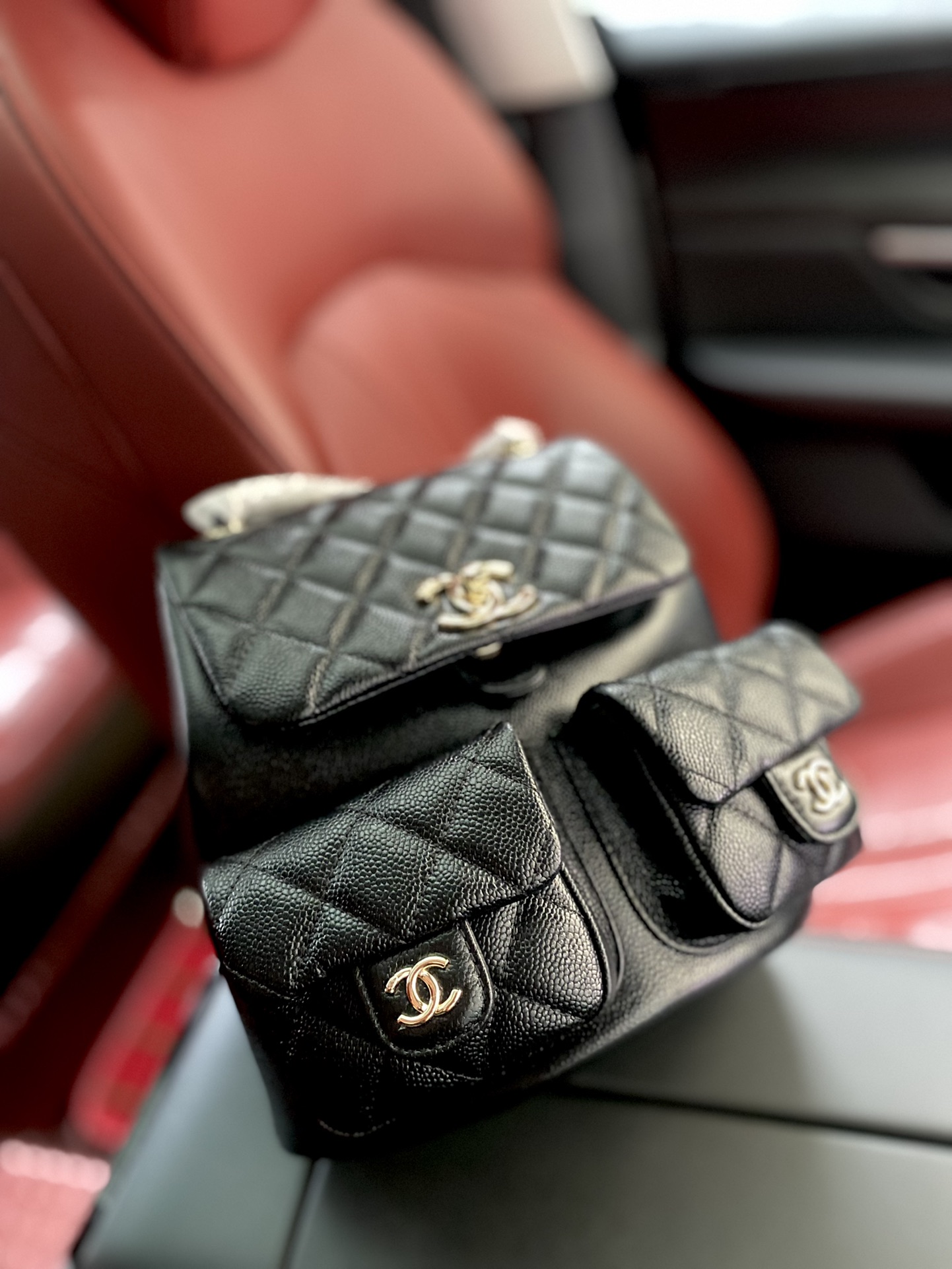 Chanel Quilted Leather Backpack with Double Pockets - Stylish and Durable