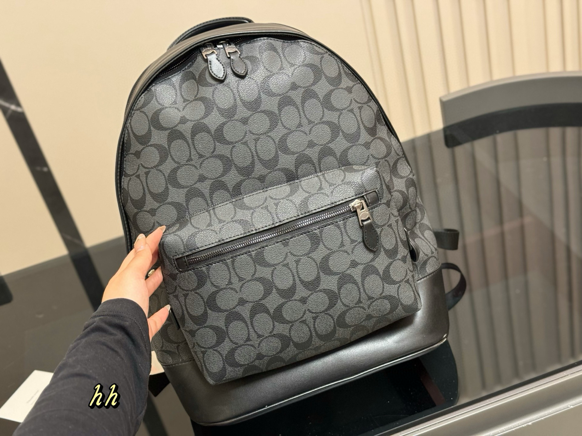 Coach Men's Leather Backpack with Signature Logo, 33.39cm - Stylish & Durable