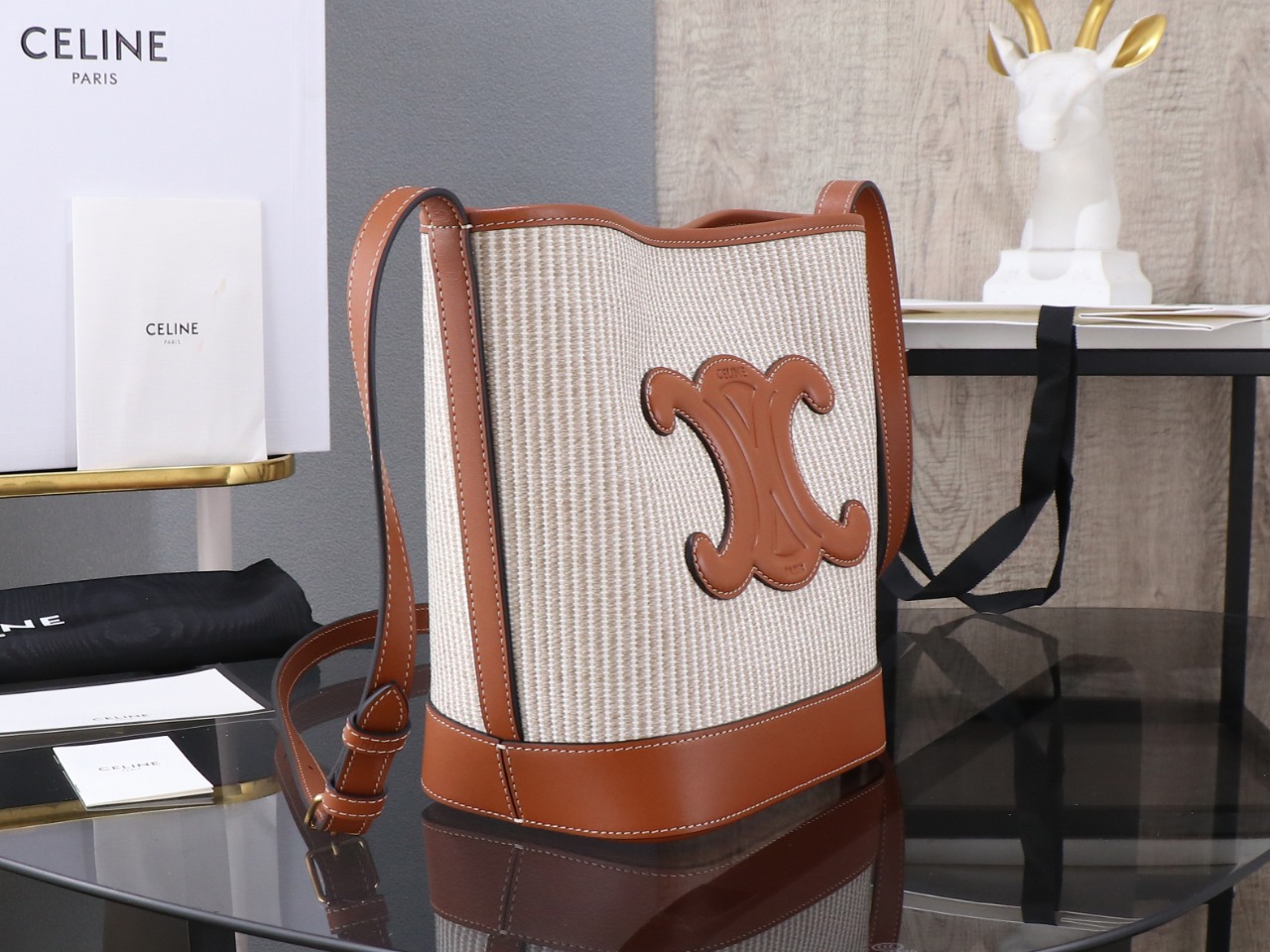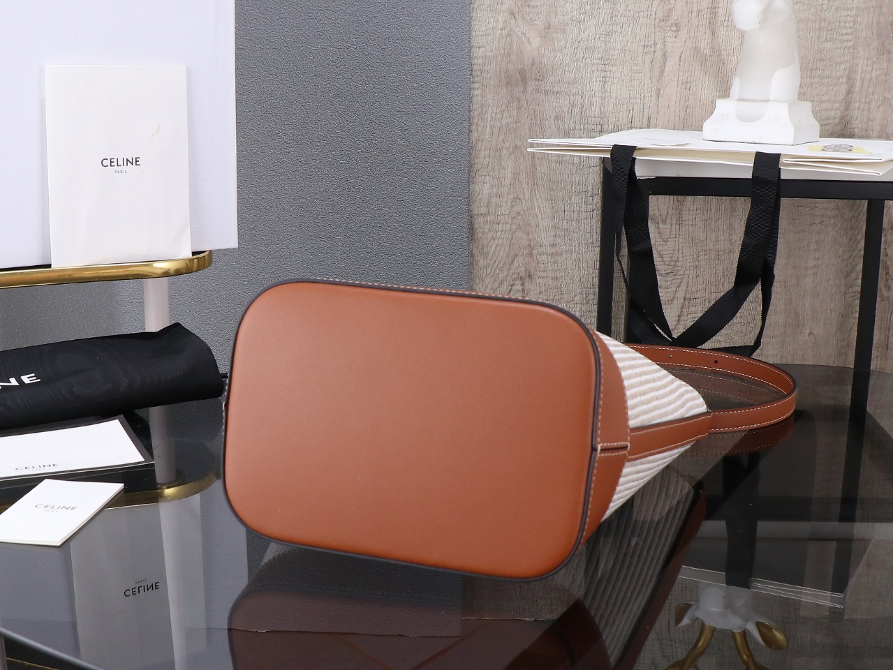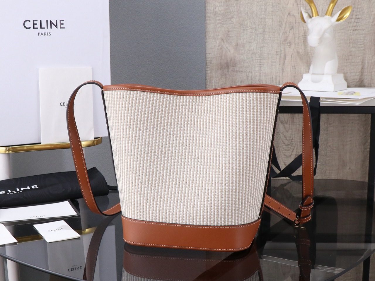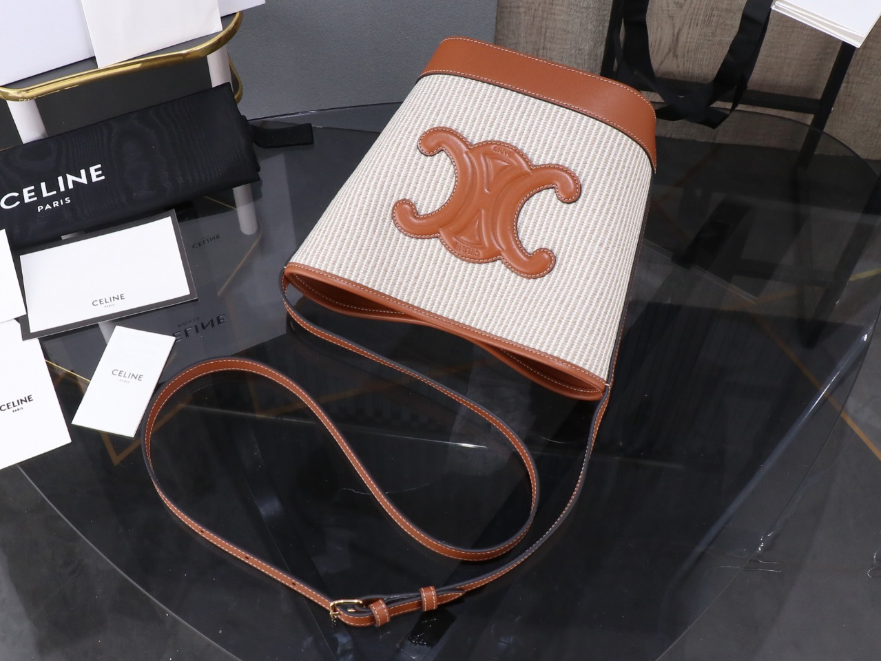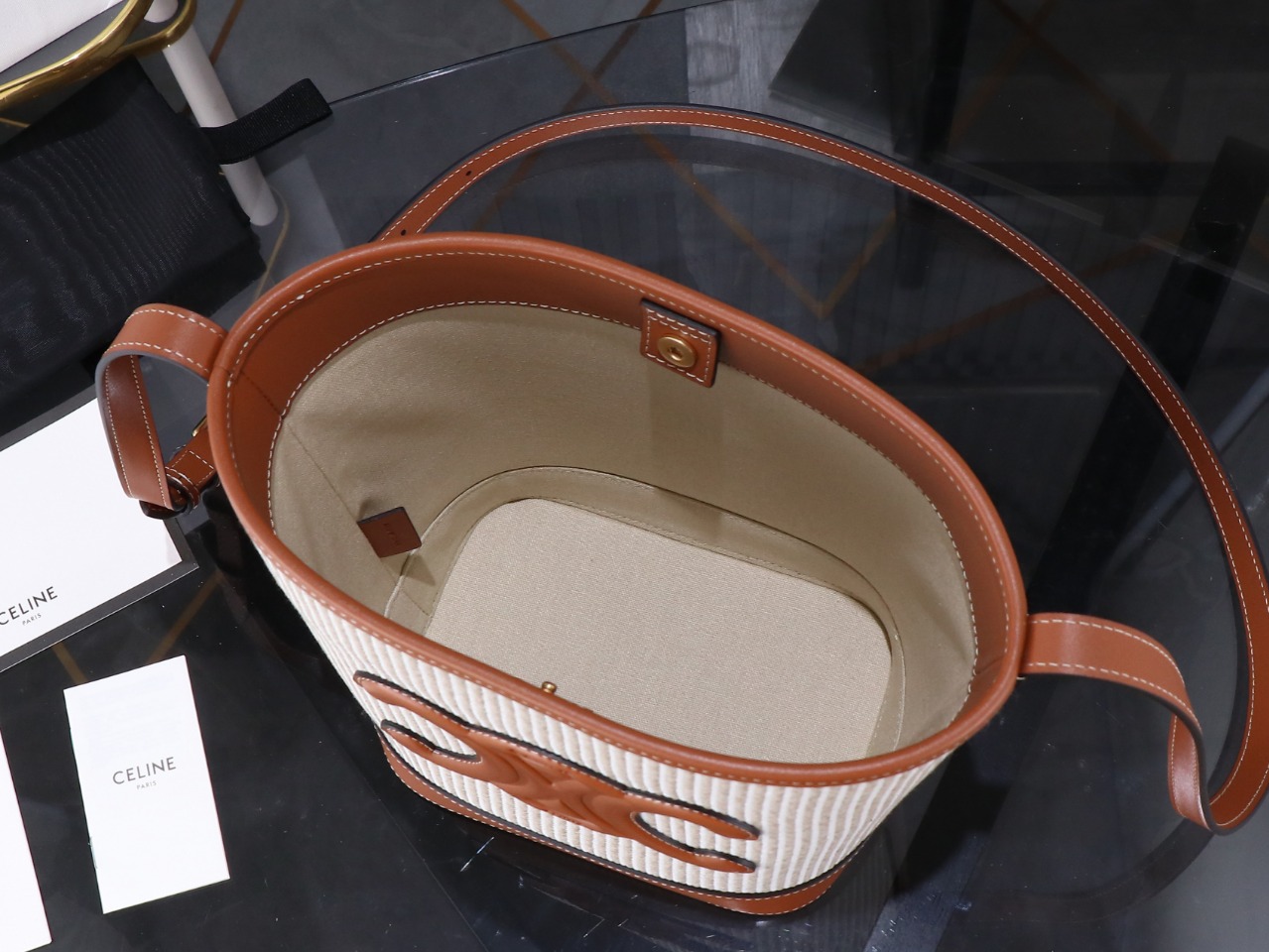 Celine Cuir Triomphe Small Bucket Bag in Smooth Calfskin & Linen