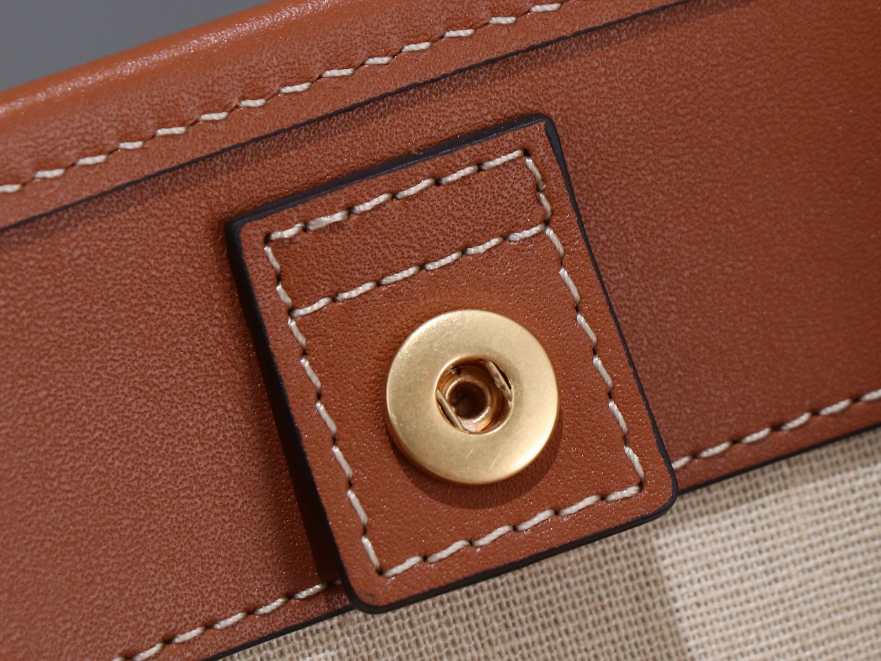 The Celine Cuir Triomphe Small Bucket Bag is the perfect blend of luxury and casual elegance. Crafted from high-quality smooth calfskin and linen fabric, this bucket bag features the iconic Triomphe logo, making it a timeless addition to your collection.