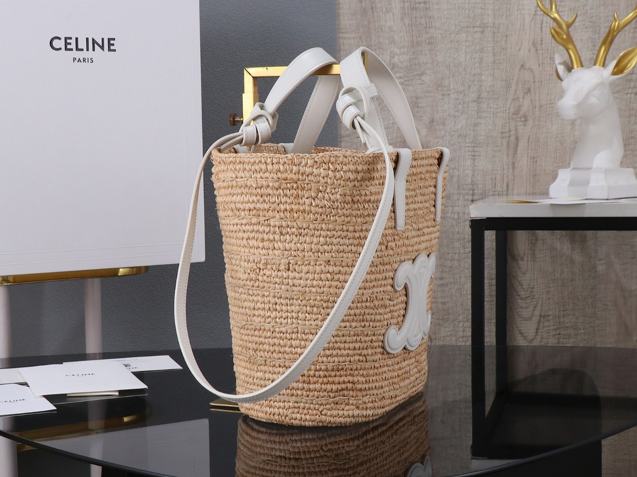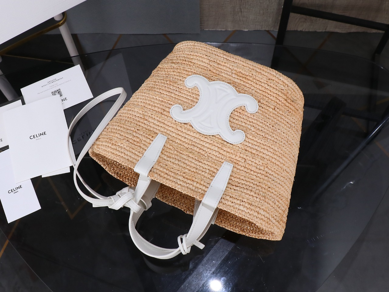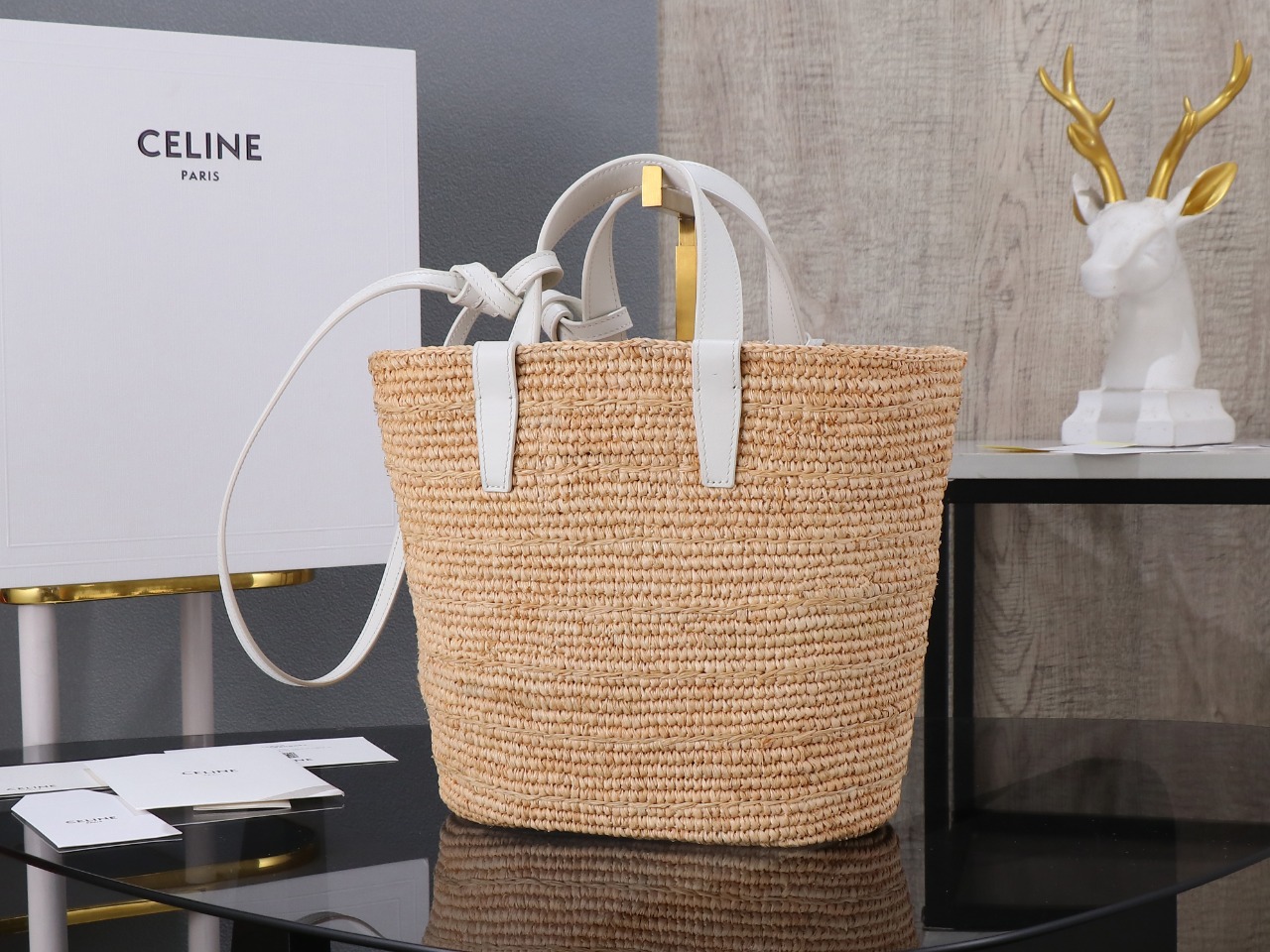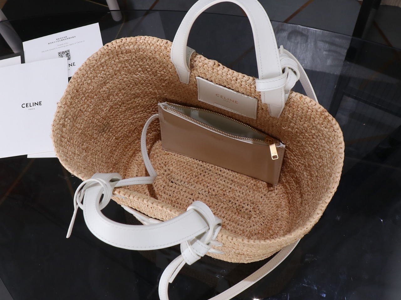 Celine Teen Classic Panier in Palm Leaf and Calfskin with Removable Pouch