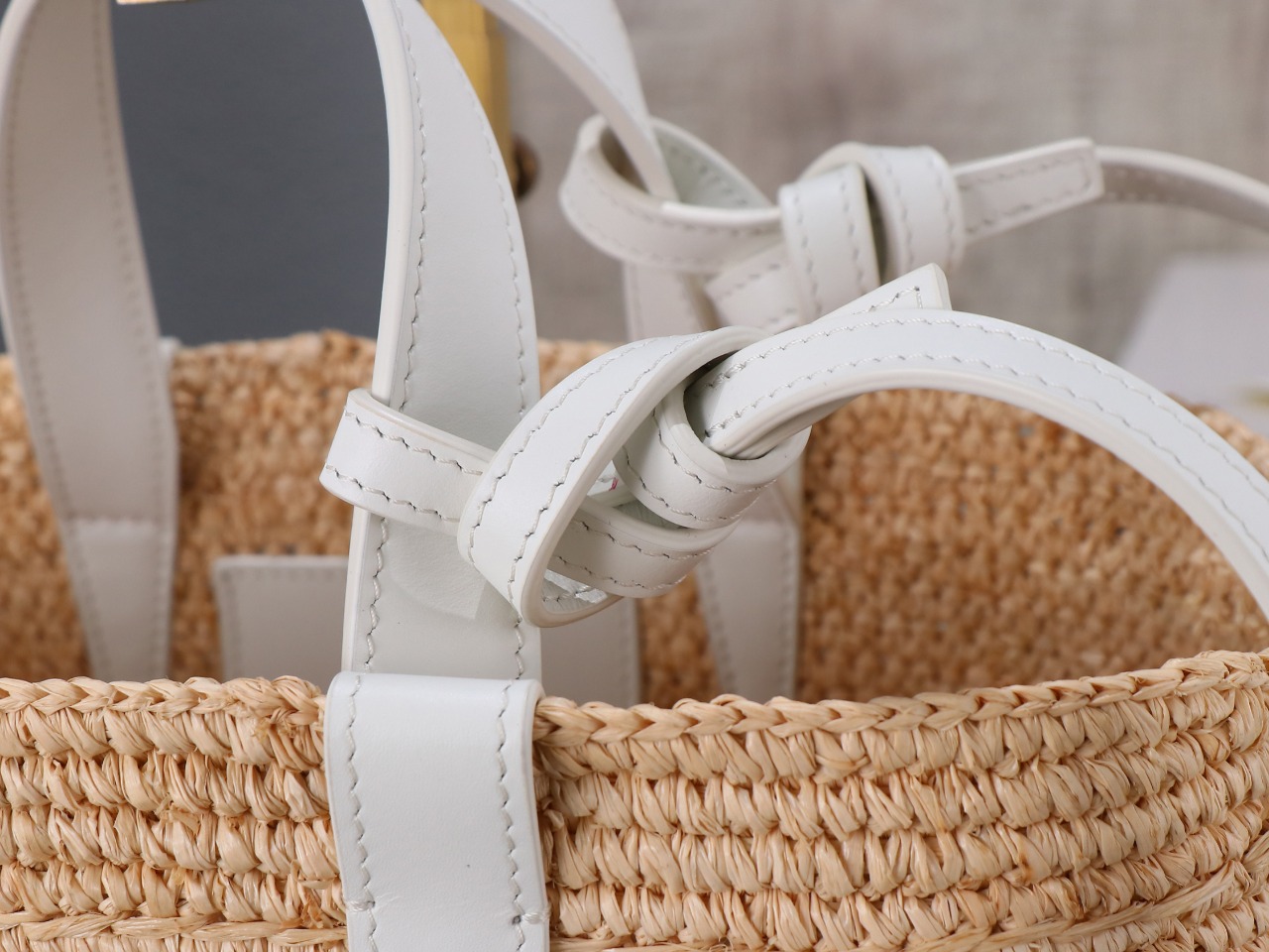 The Celine Teen Classic Panier is the epitome of summer chic. Handcrafted from natural palm leaf and trimmed with luxurious calfskin, this bag is perfect for adding a touch of effortless elegance to any outfit.