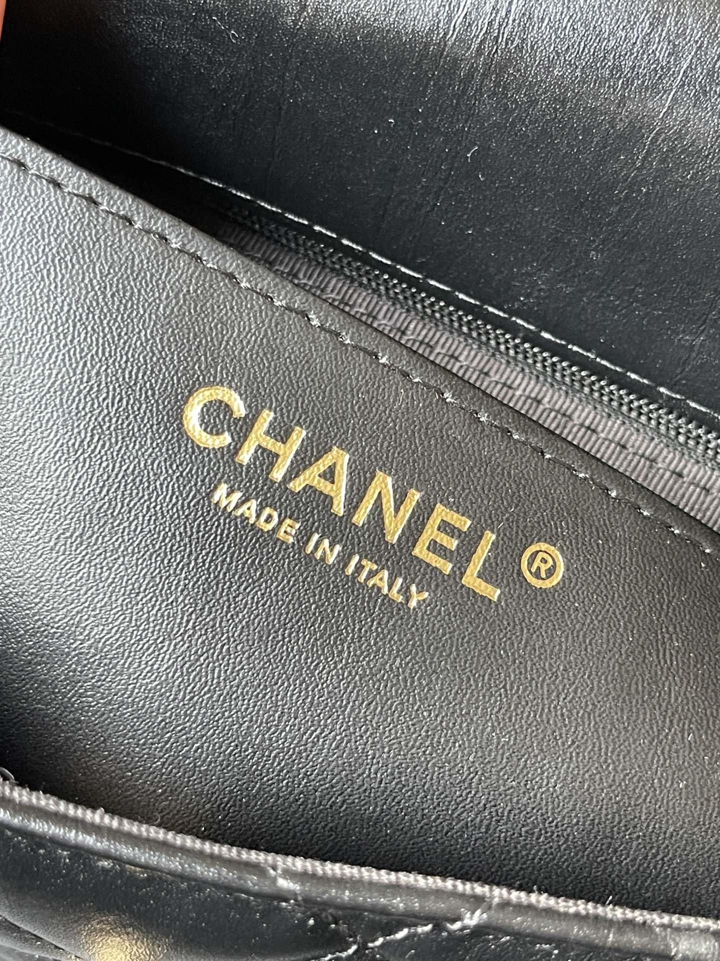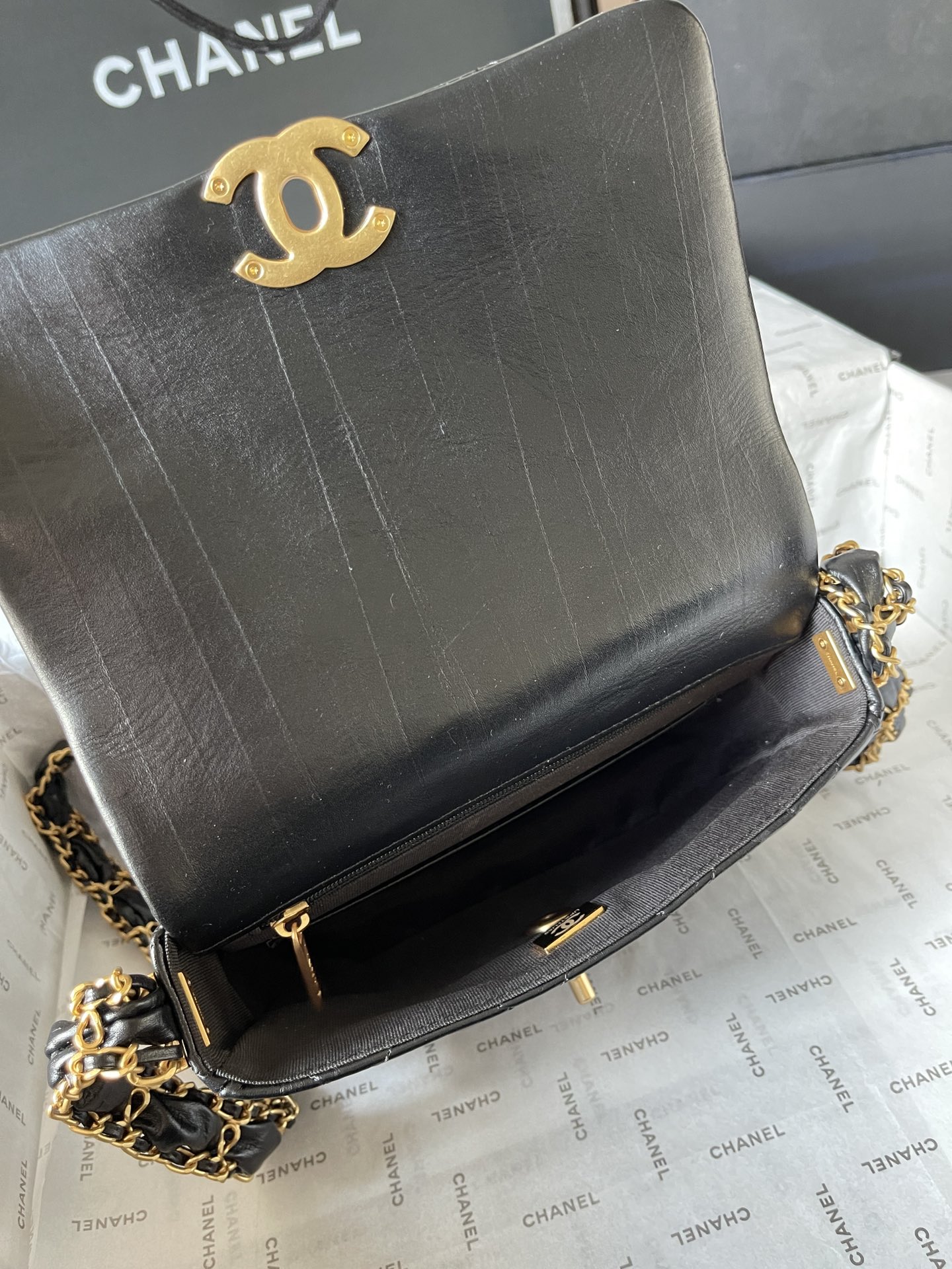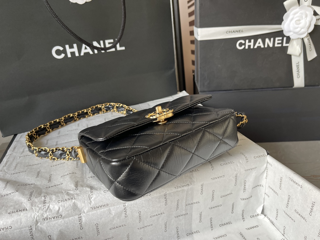 Chanel 19 Mini Bag Black Leather with Gold Chain, 21*15*5cm