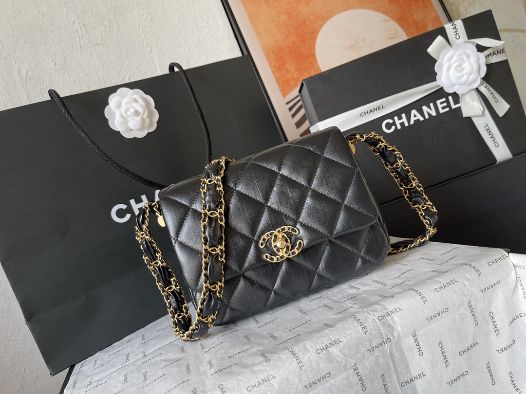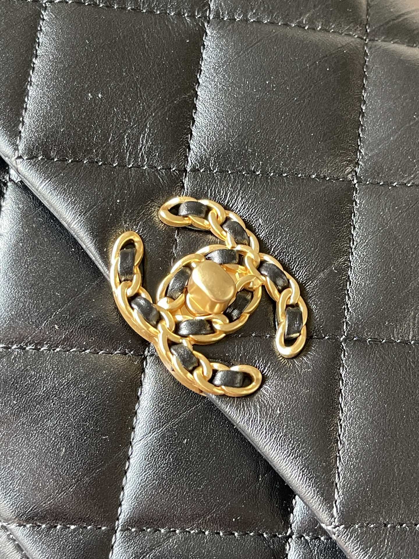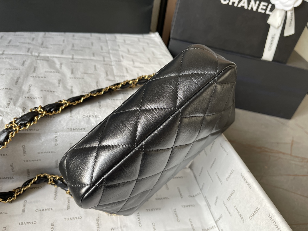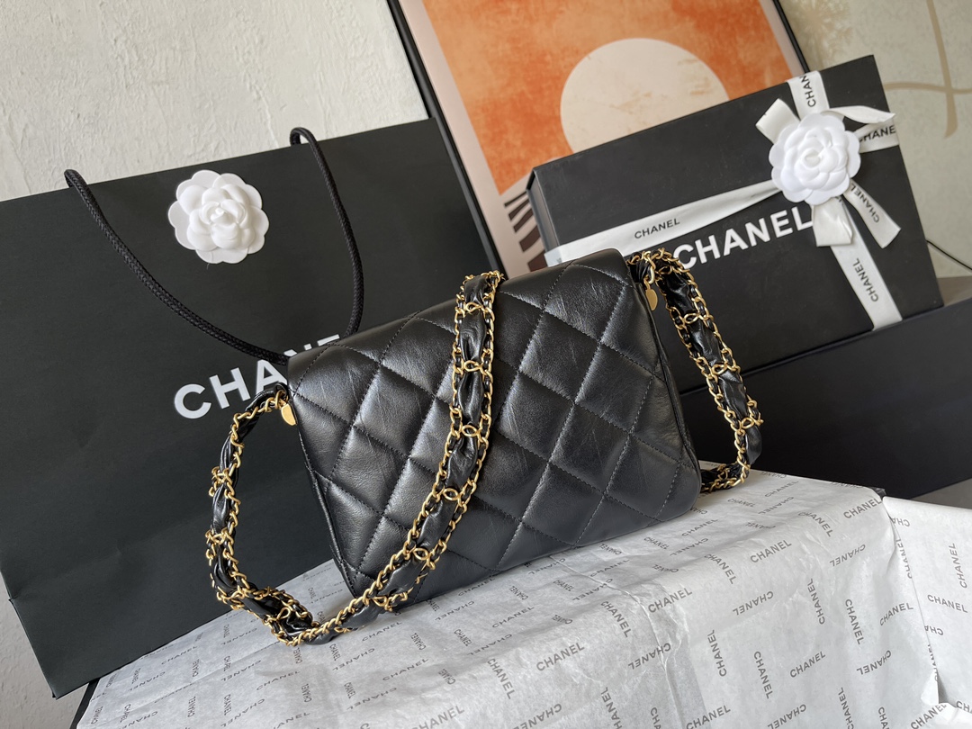 Chanel 19 Mini Bag Black Leather with Gold Chain, 21*15*5cm