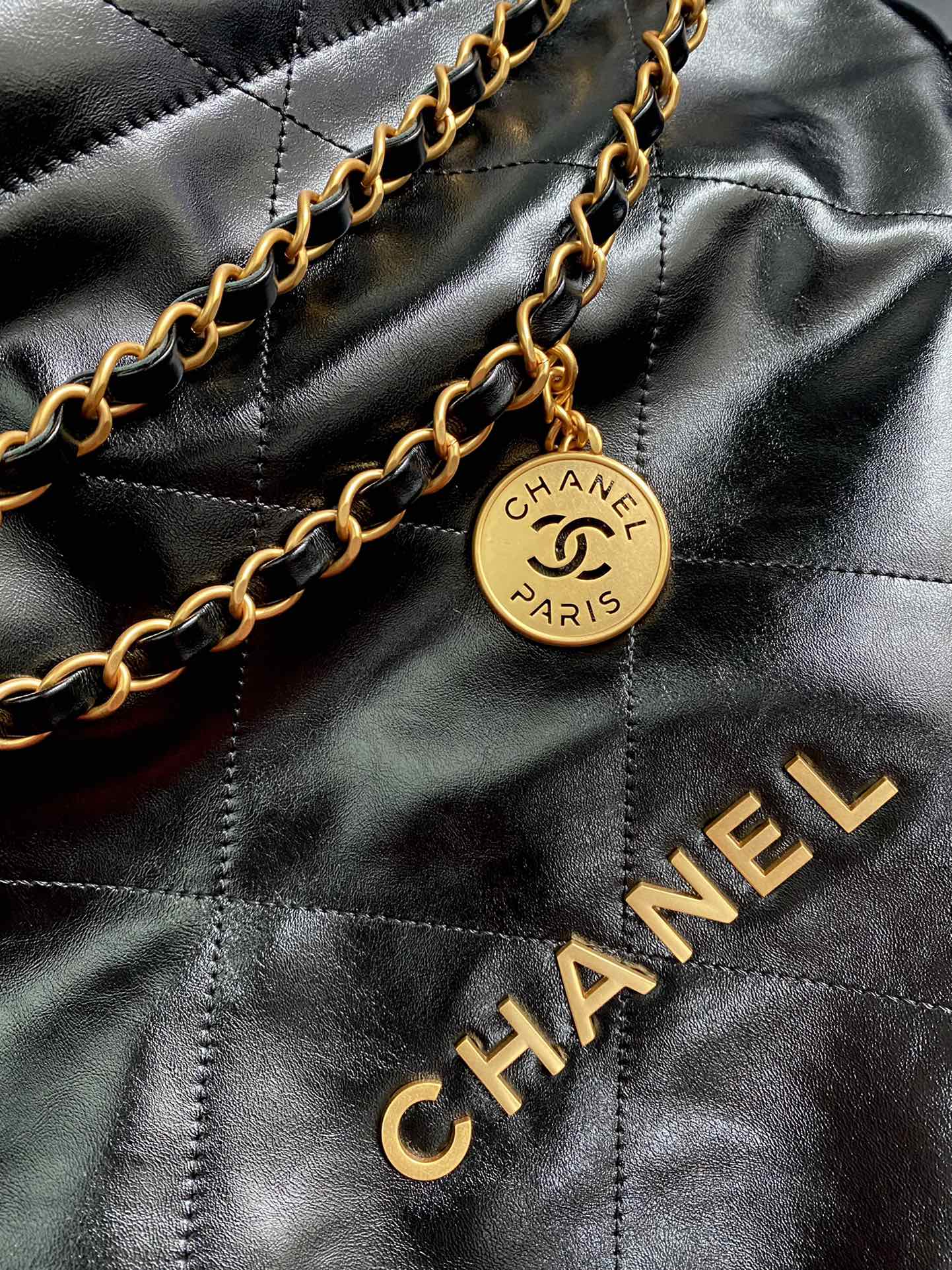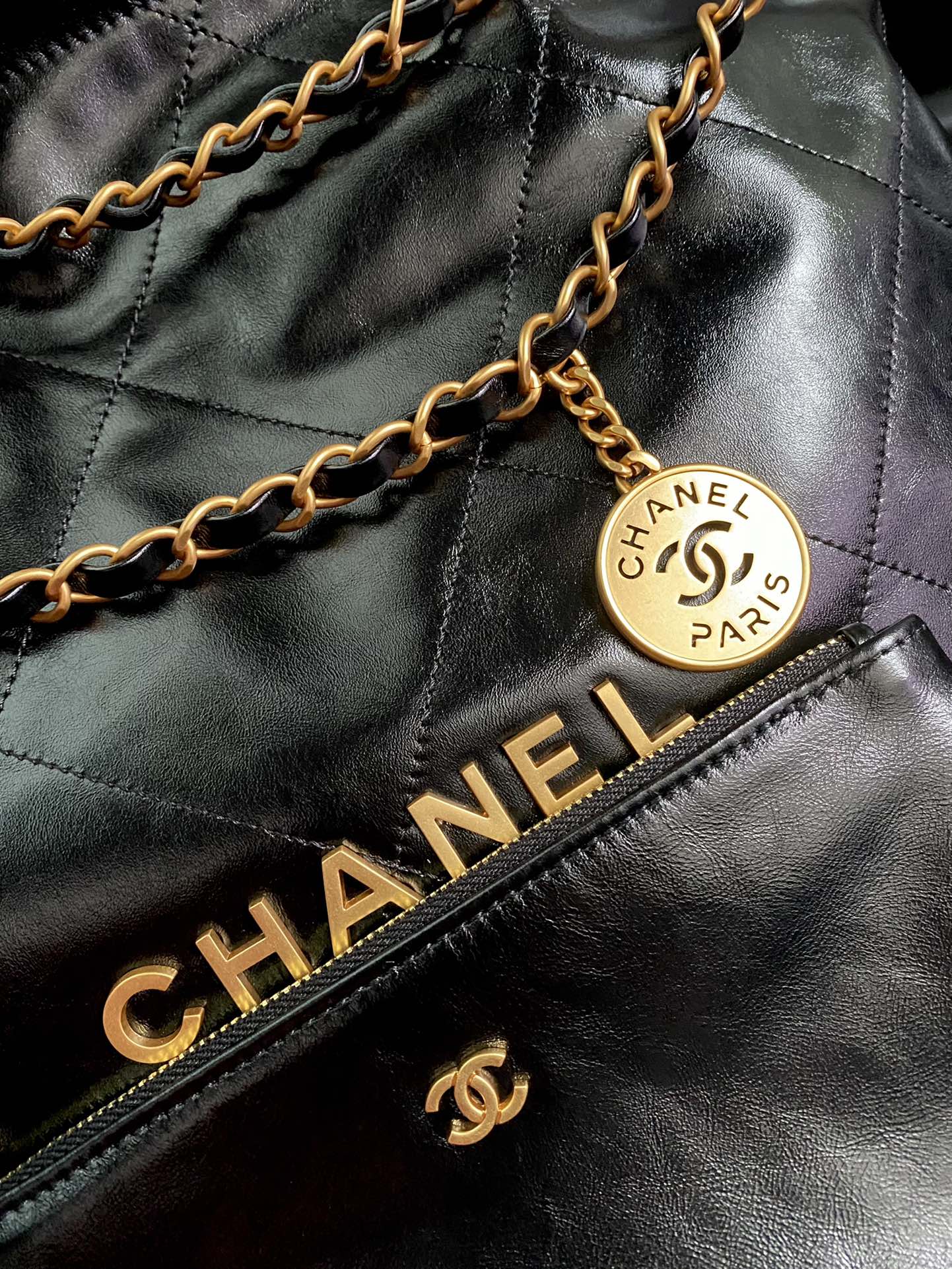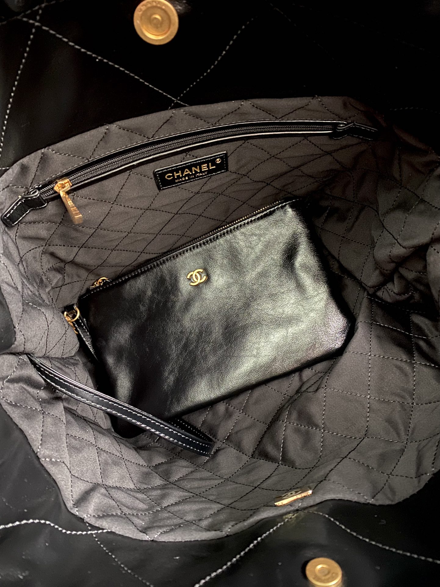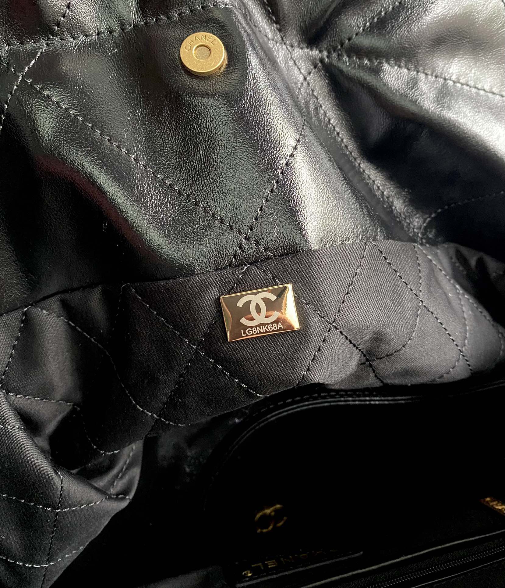Chanel 22 Bag 35cm Black Gold Hardware, Calfskin Leather Shopping Bag