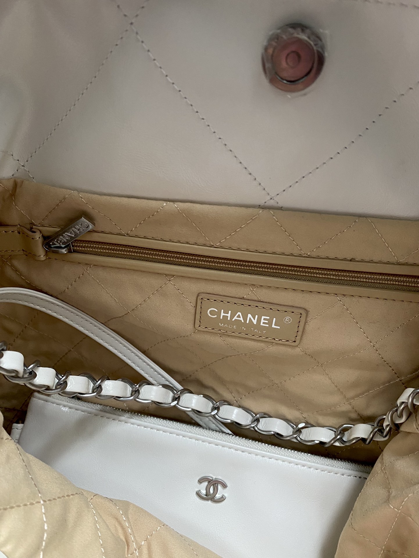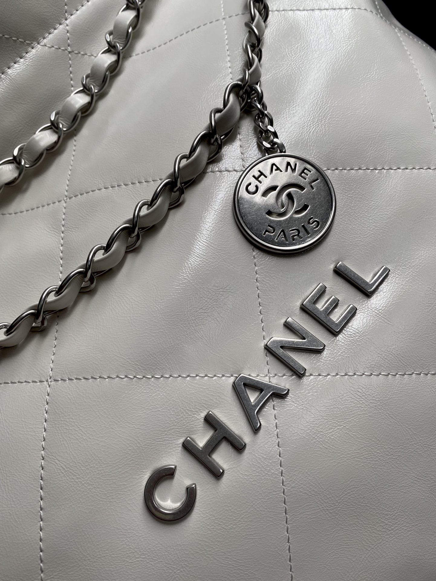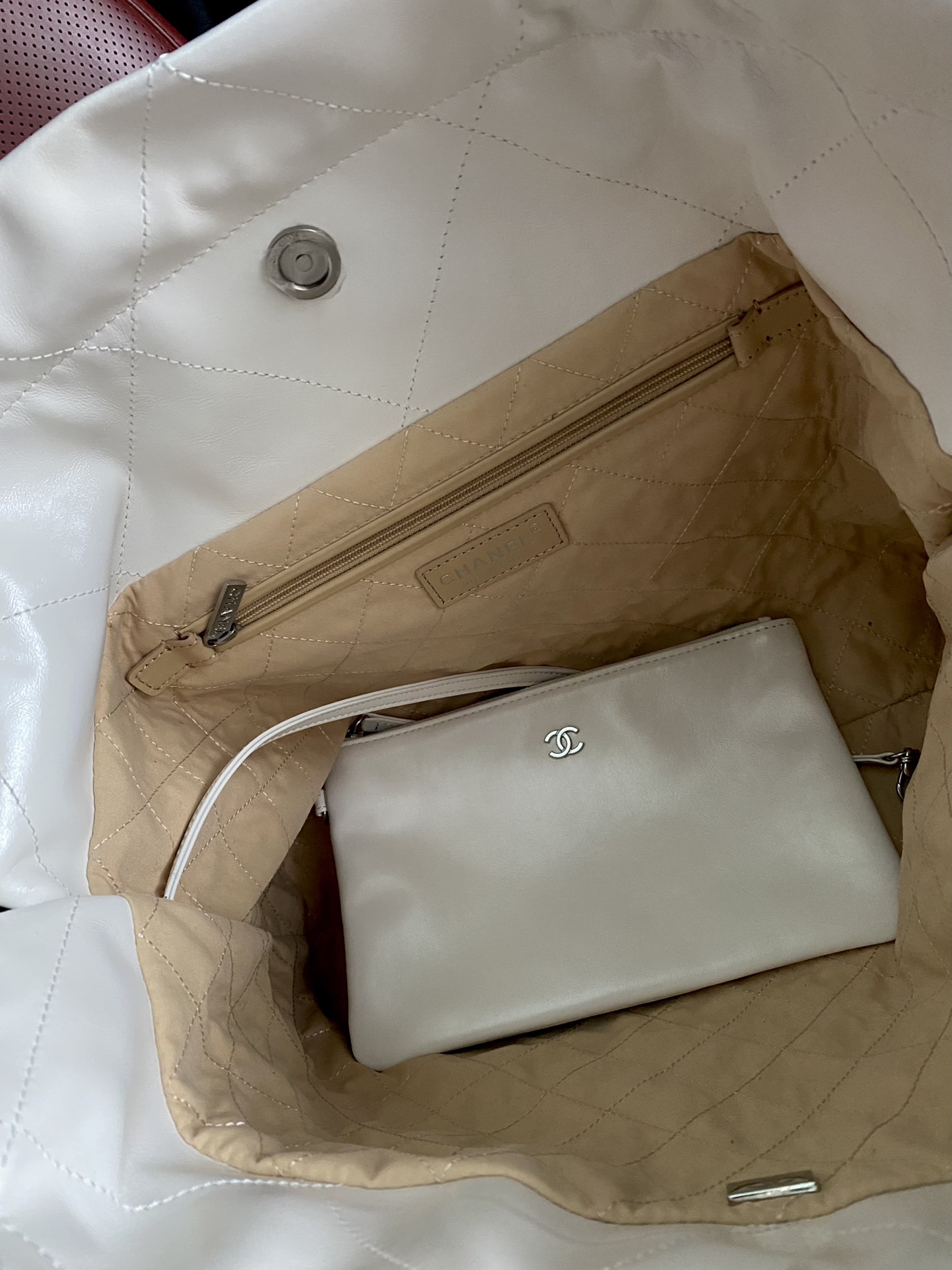 Chanel 22 Bag Large Shopping Bag White Leather Silver Hardware