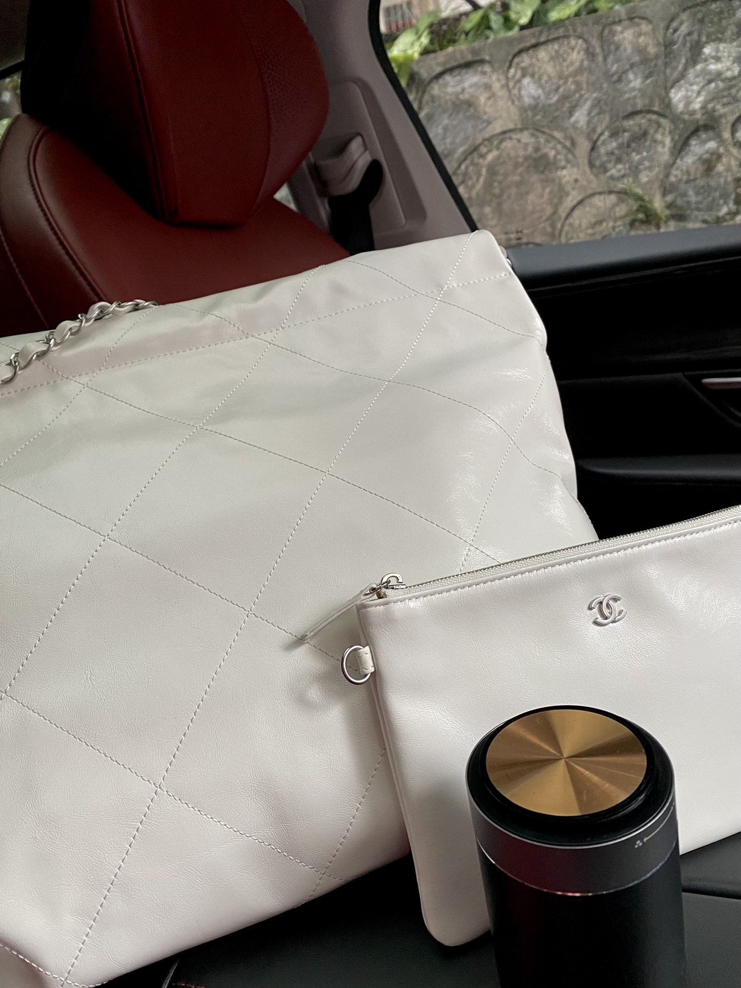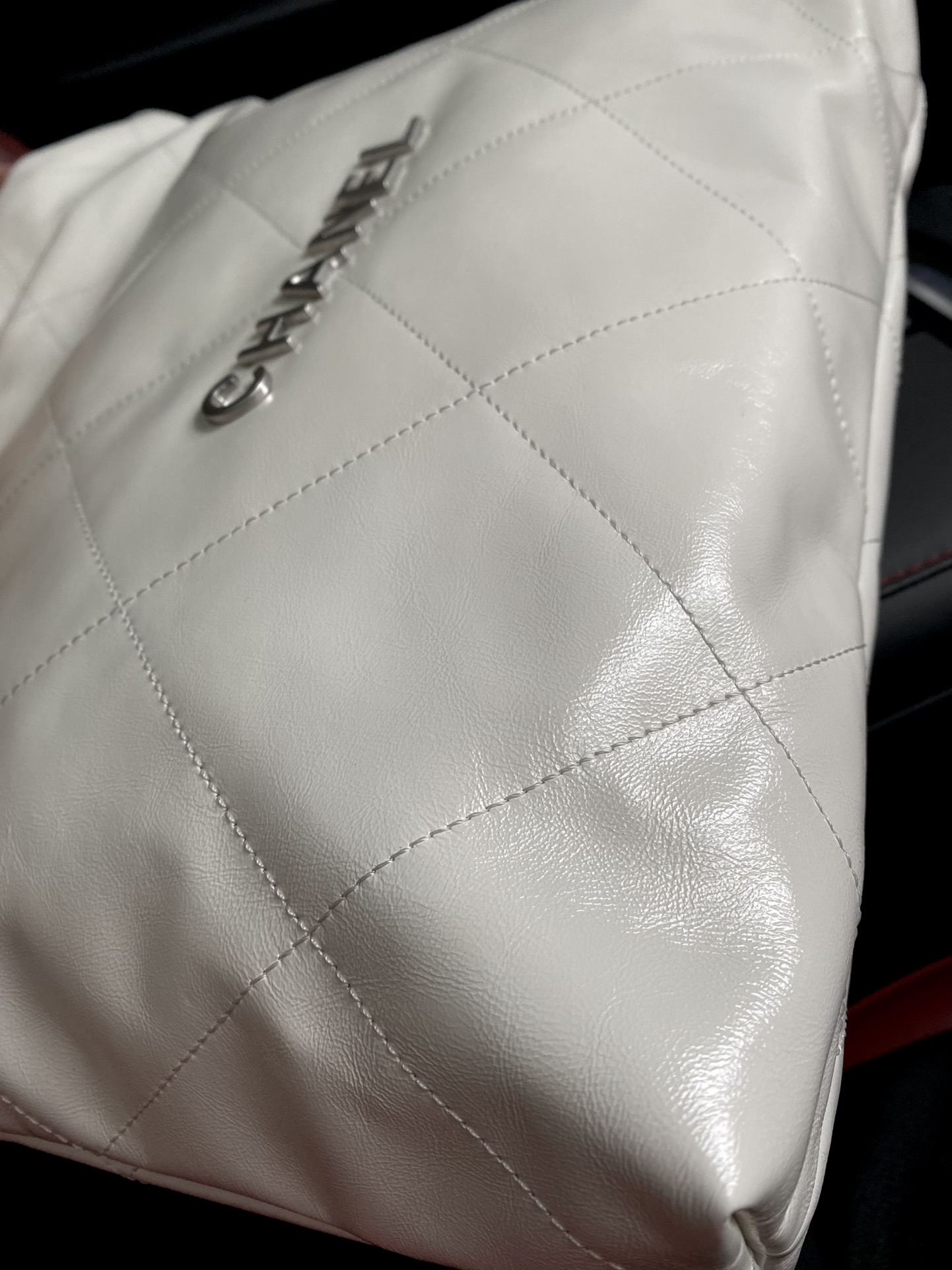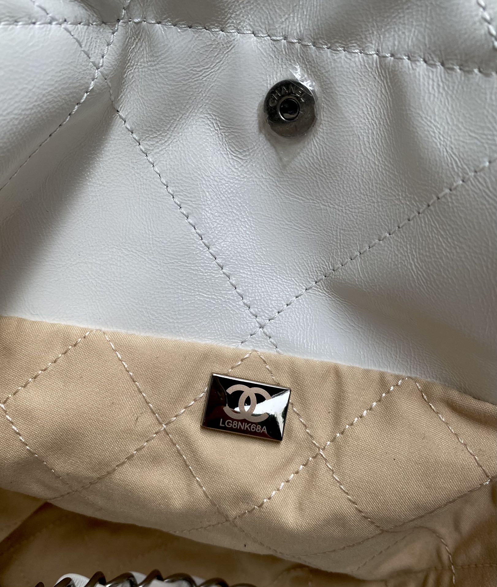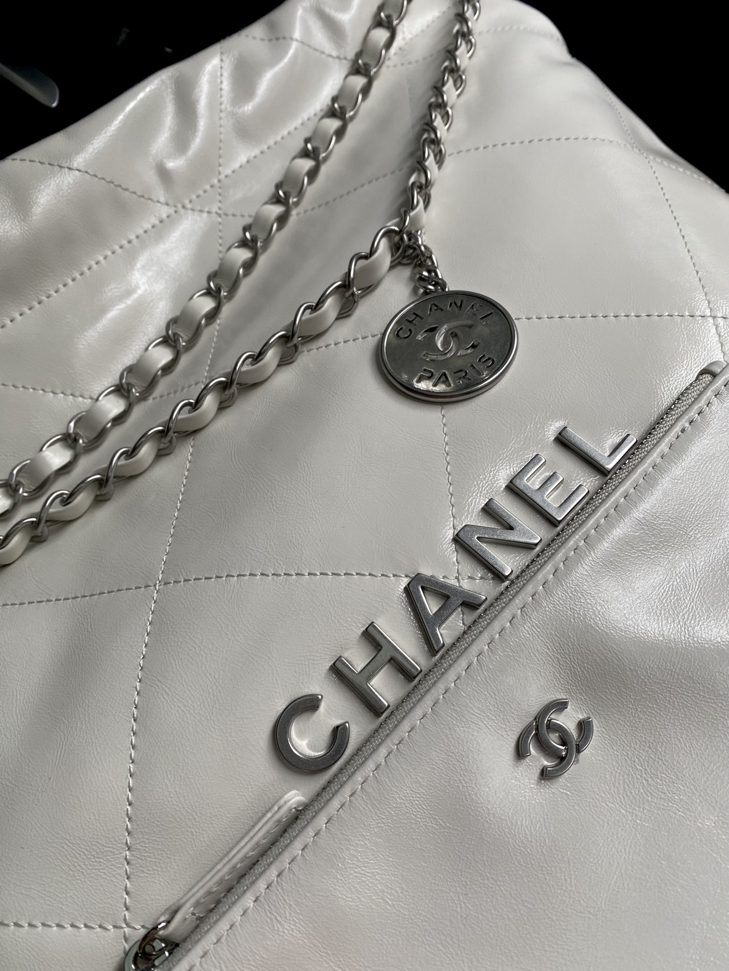 Chanel 22 Bag Large Shopping Bag White Leather Silver Hardware