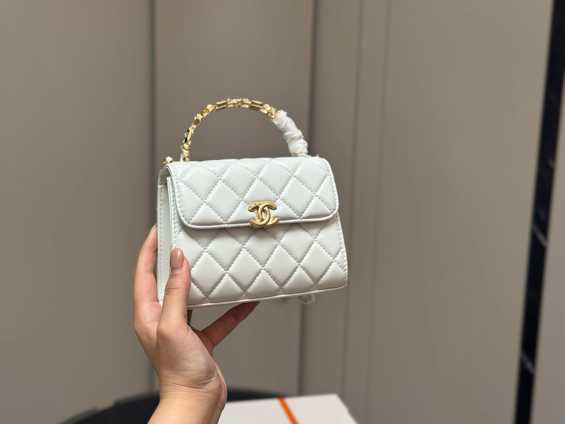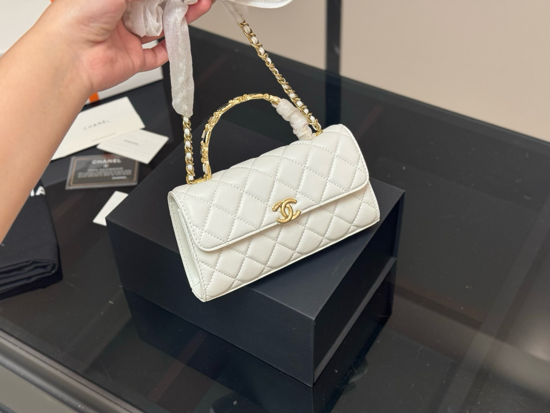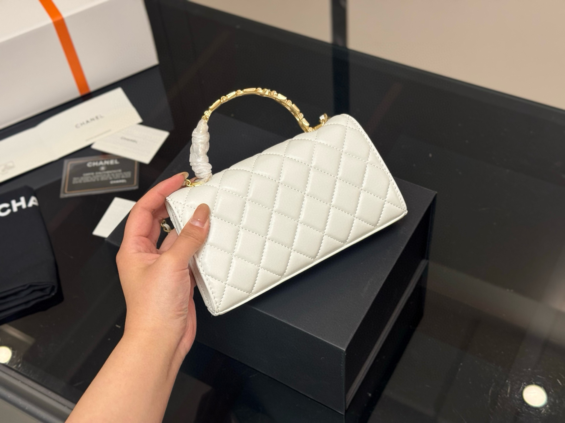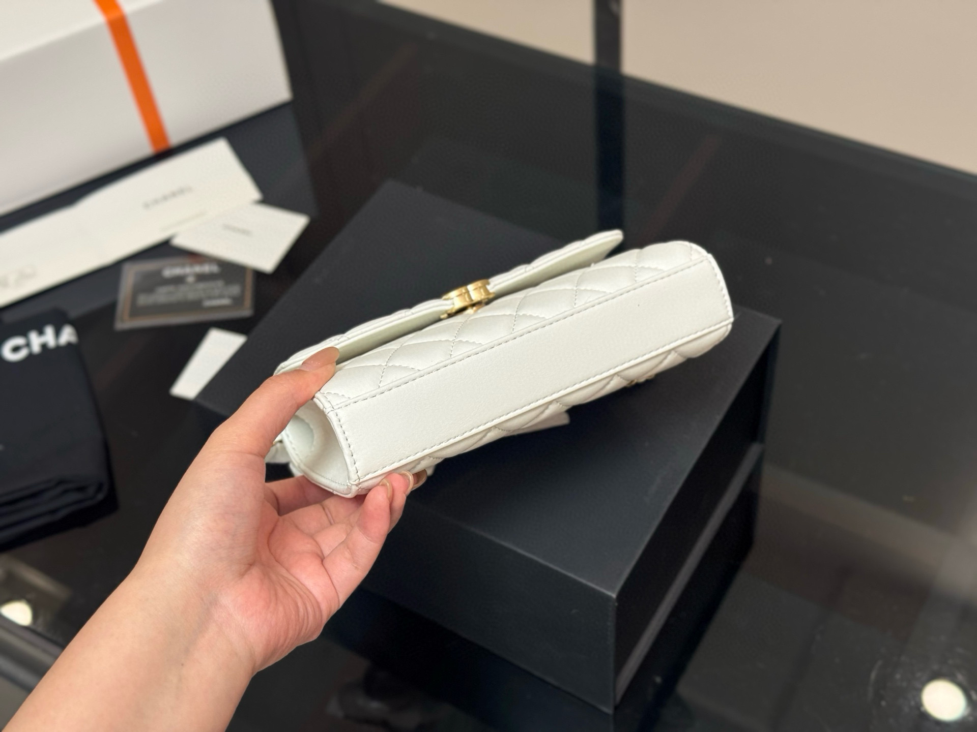 Chanel 23P Kelly Style White Leather Handbag with Gold Hardware, 18cm/15cm