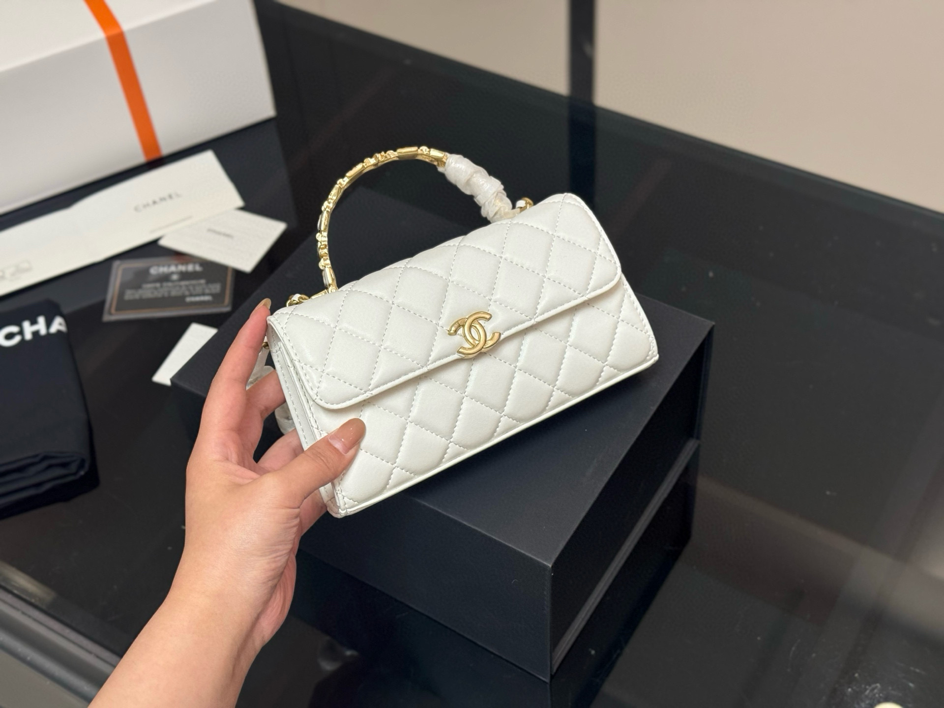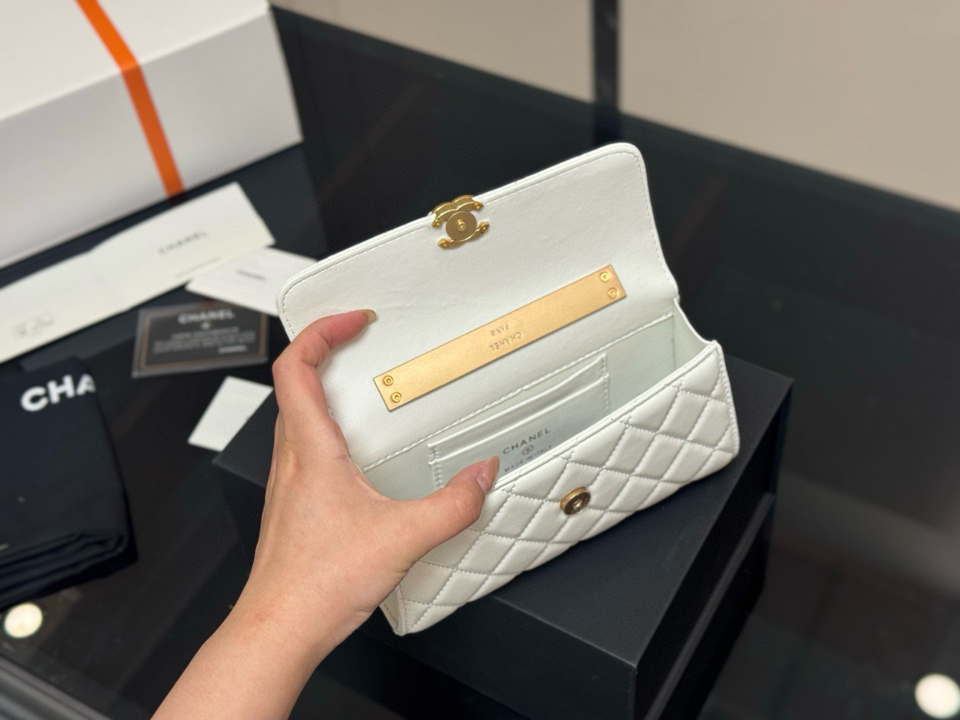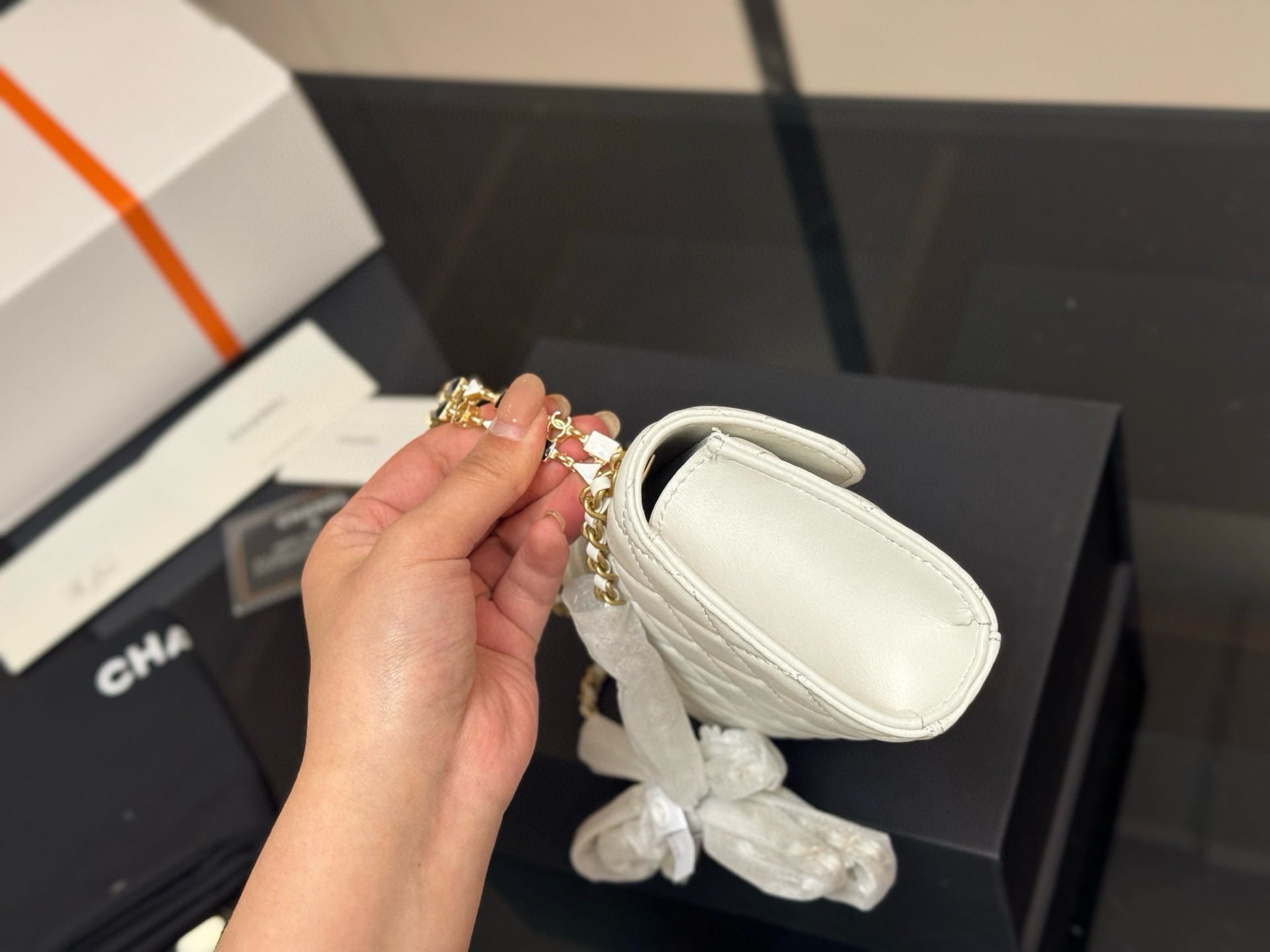 Stunning Chanel 23P Kelly handbag. Crafted in white leather with gold hardware. Size: 18cm/15cm. Comes with full packaging. The new bag is so good!