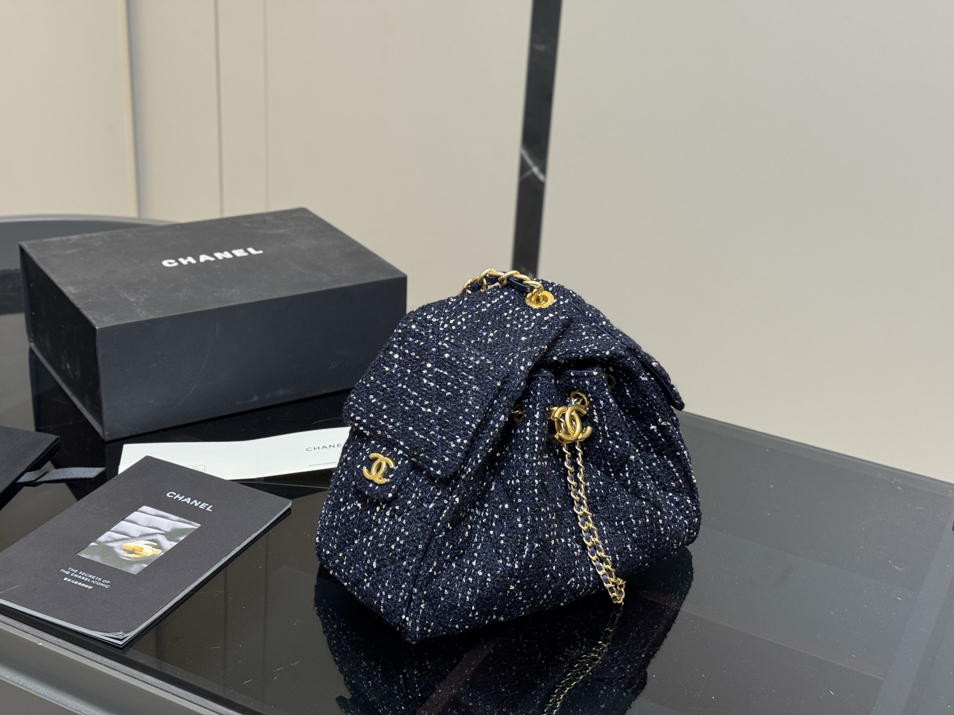 This Chanel 25s series hobo bag is a must-have for any fashion enthusiast. The small size makes it perfect for everyday use, while the wool texture and gold chain add a touch of luxury. It's both durable and chic.