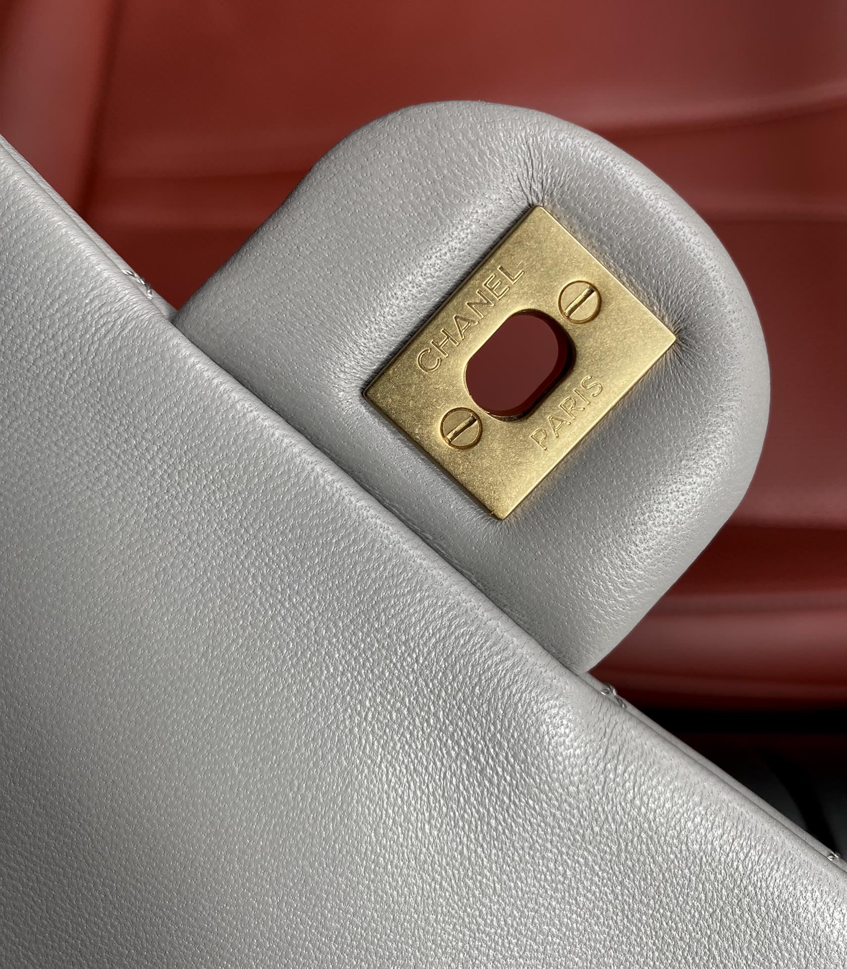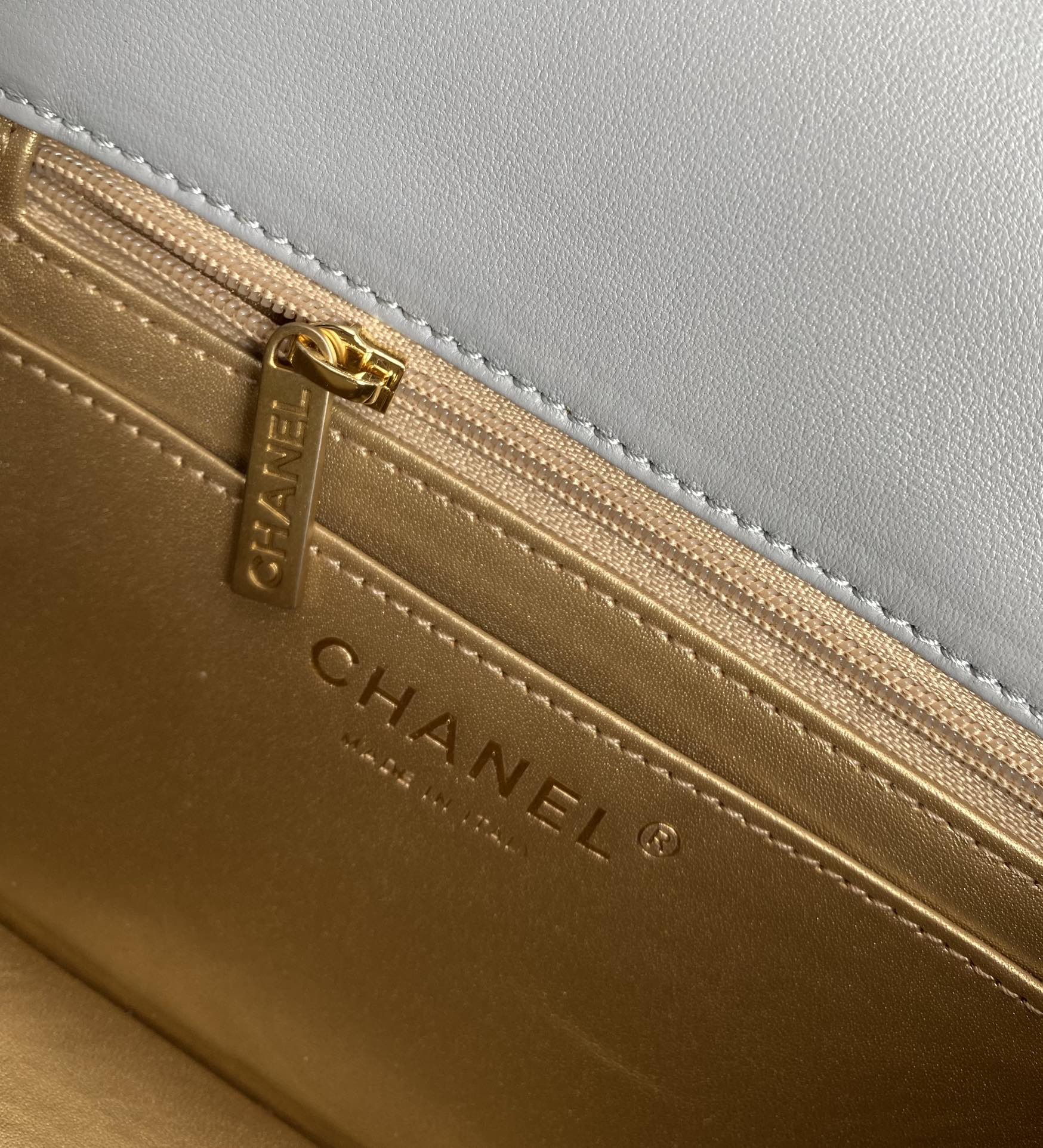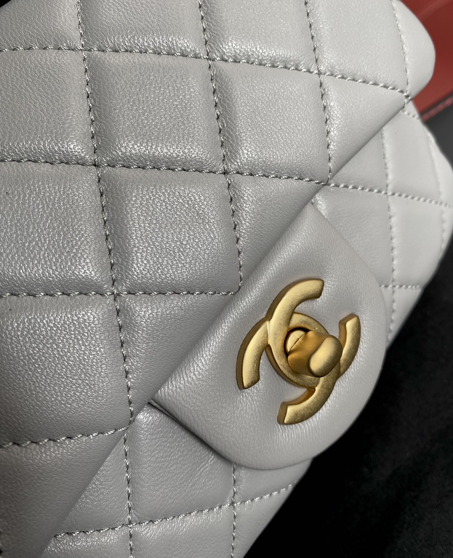Chanel CF Small Golden Ball Flap Bag, Light Grey Leather, Adjustable Chain