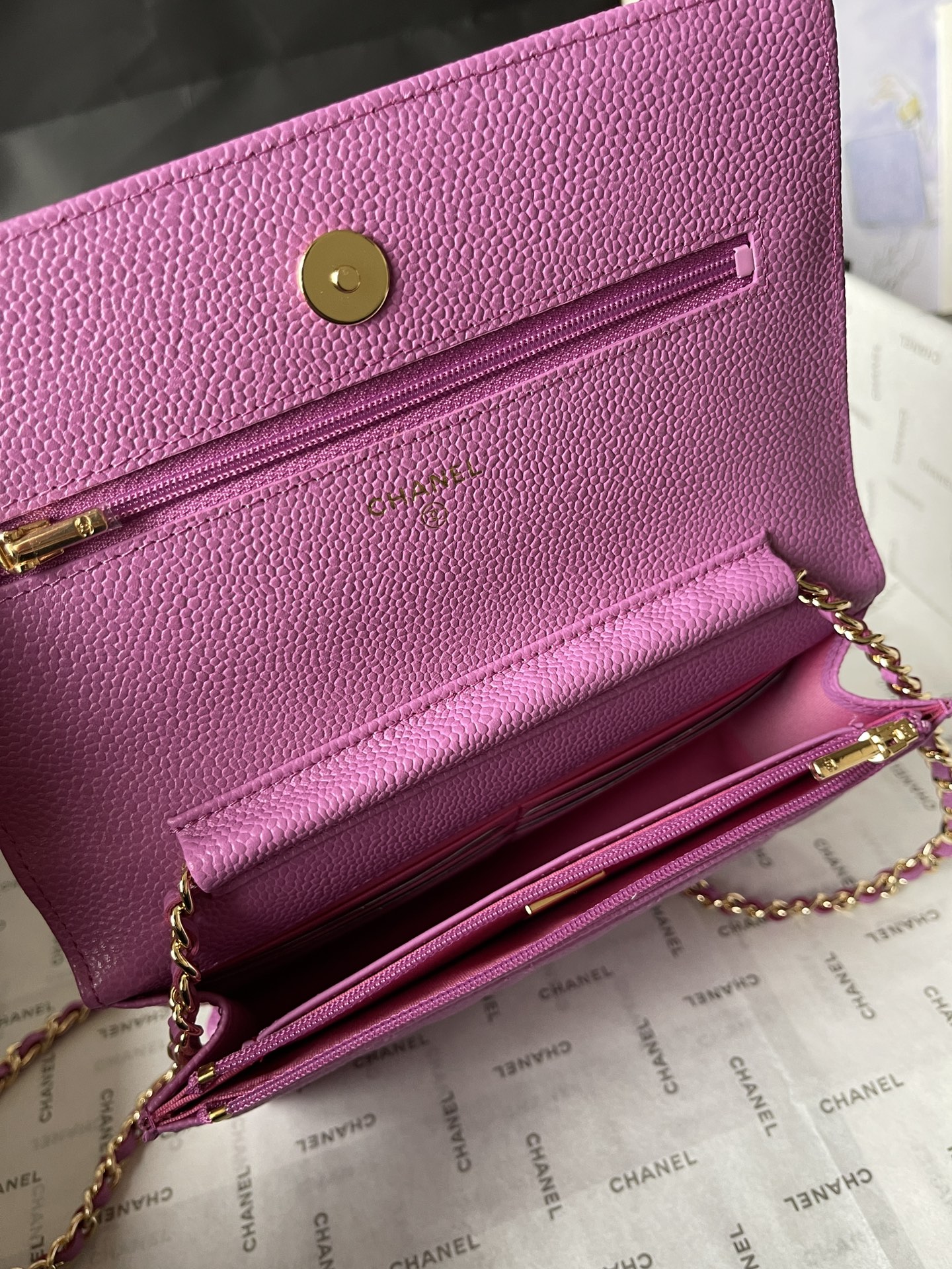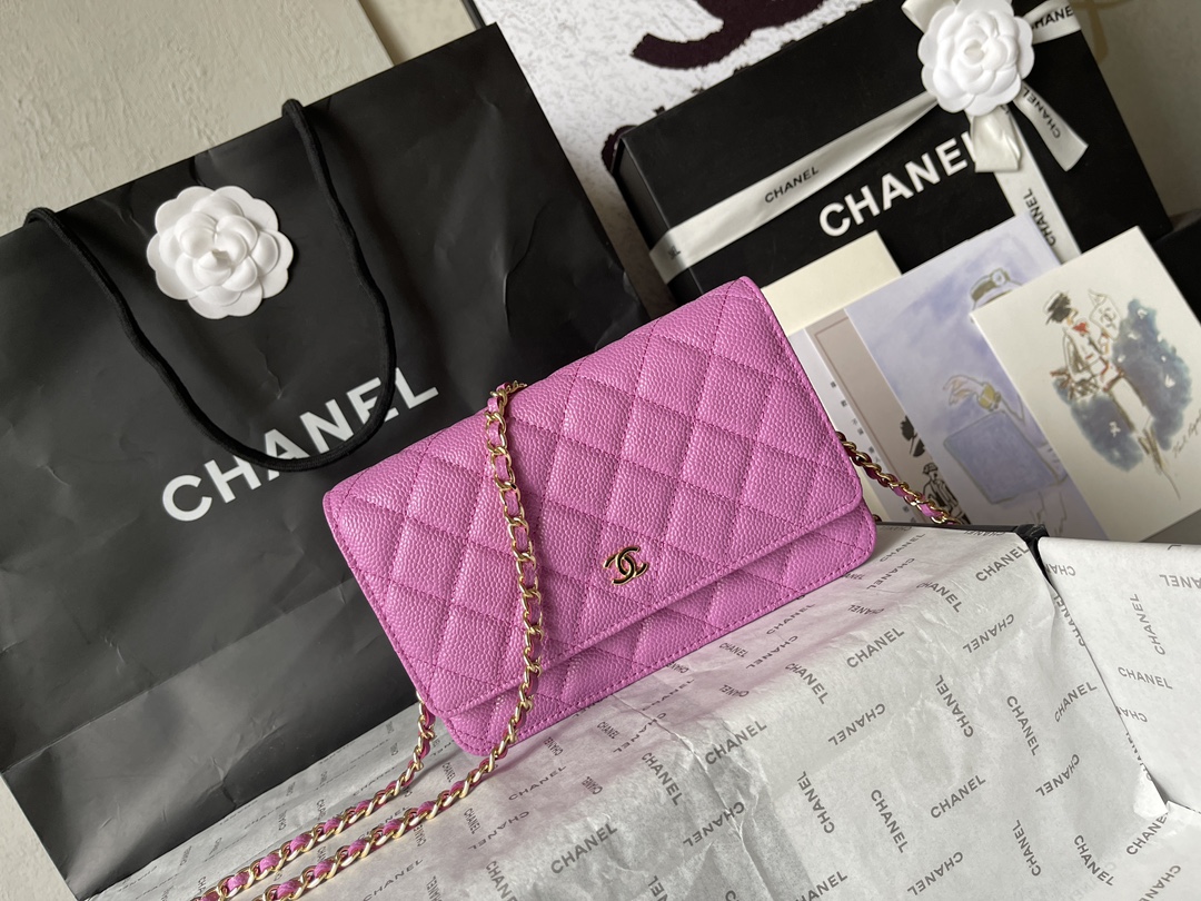 Chanel CF WOC Chain Wallet - Caviar Leather, Gold Hardware, Pink