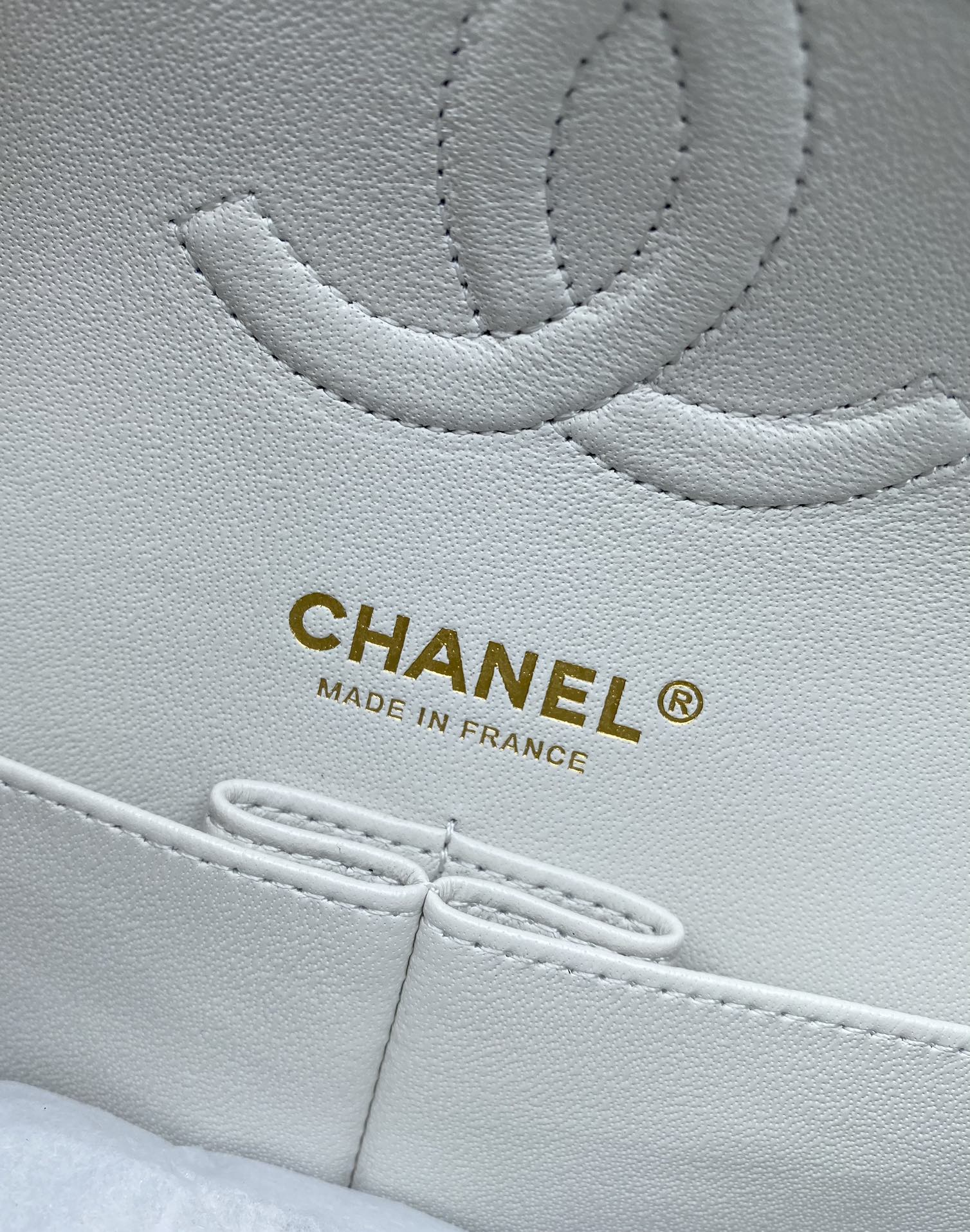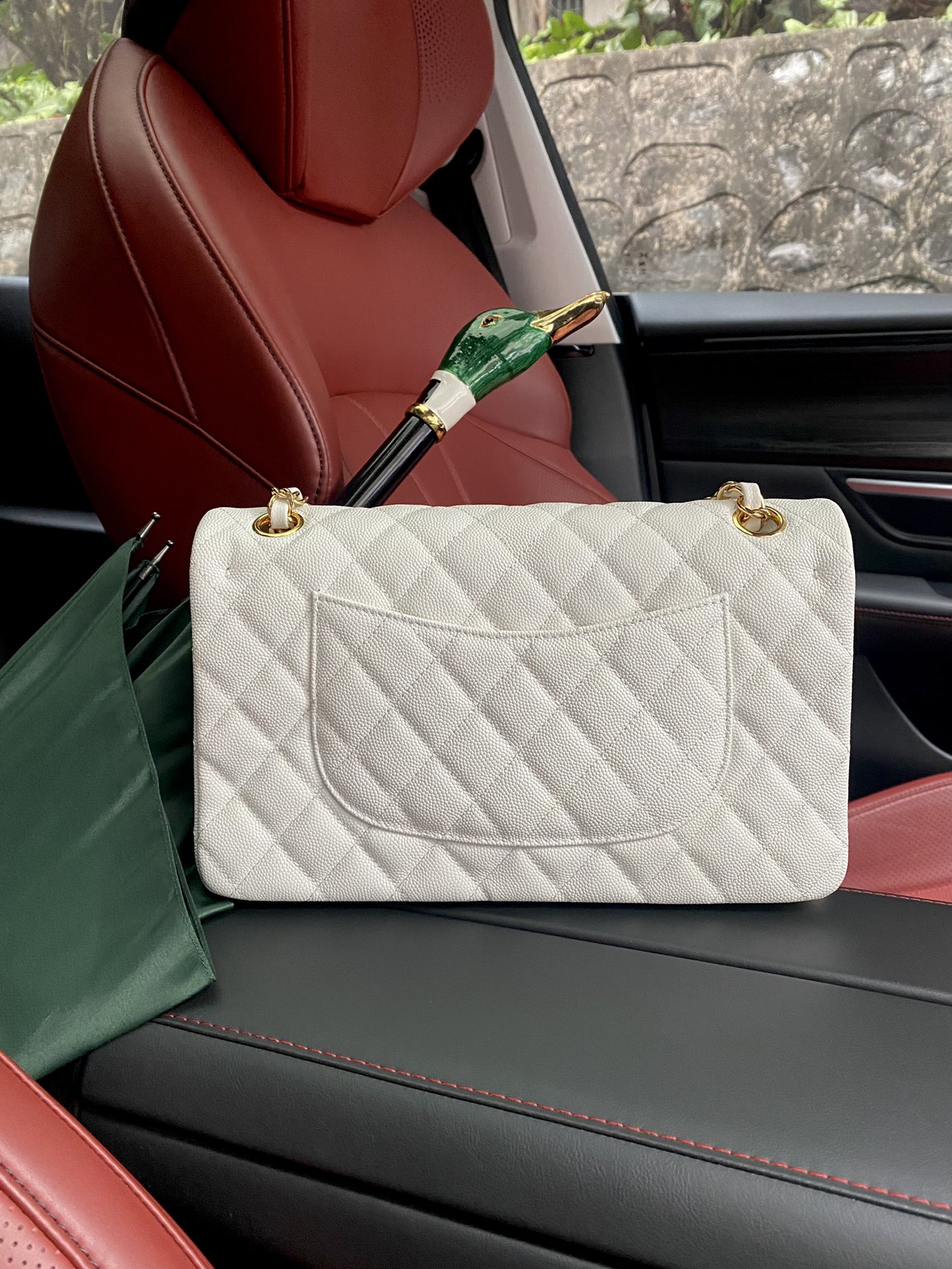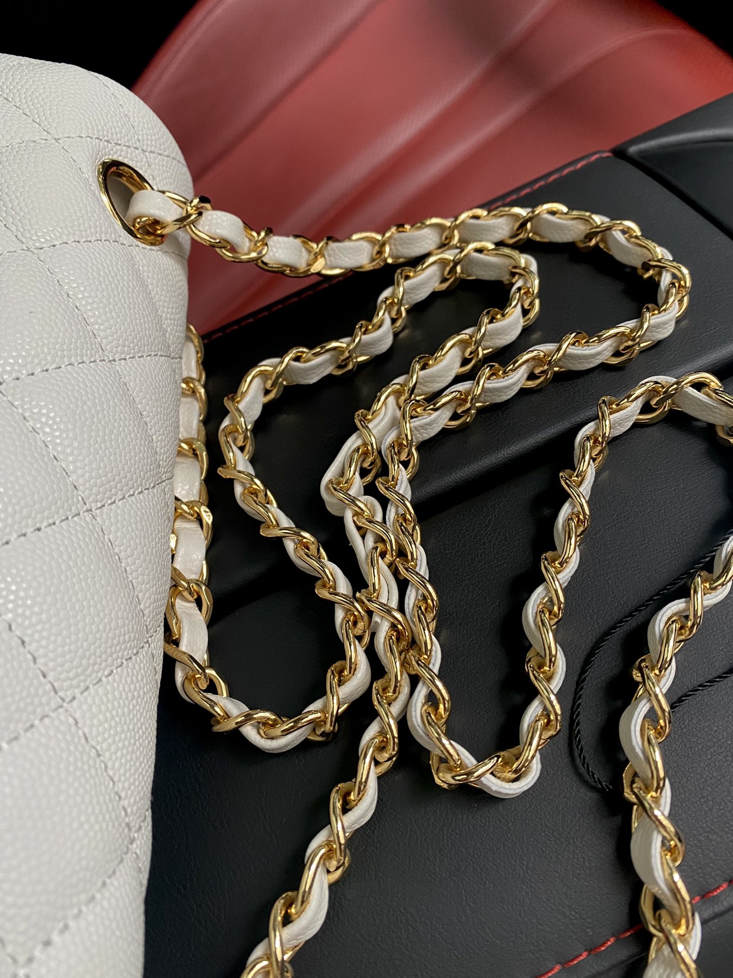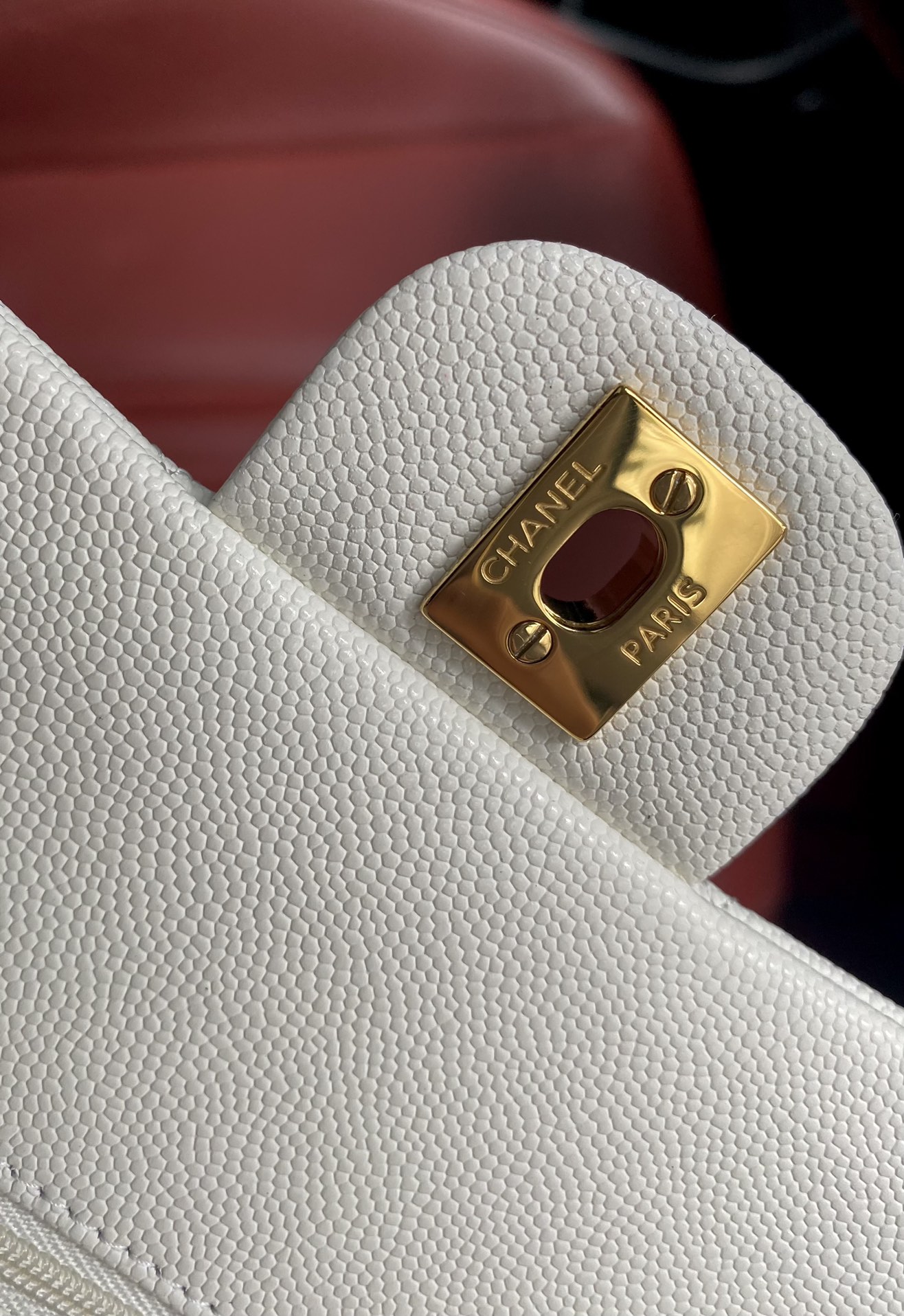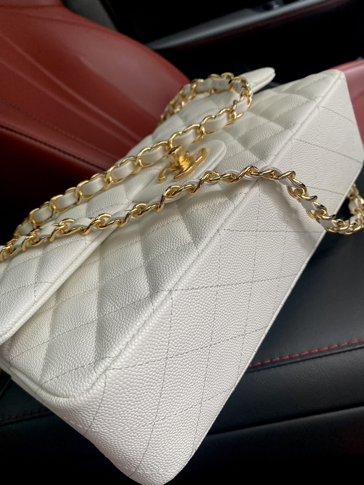 Chanel Classic CF1112 White Caviar Leather Shoulder Bag, 25.5cm