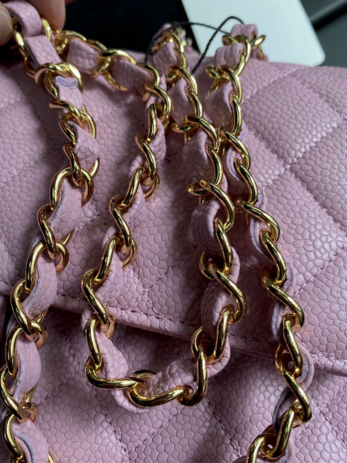 Chanel Classic Flap Bag Pink Caviar Leather Gold Hardware, 25.5 cm