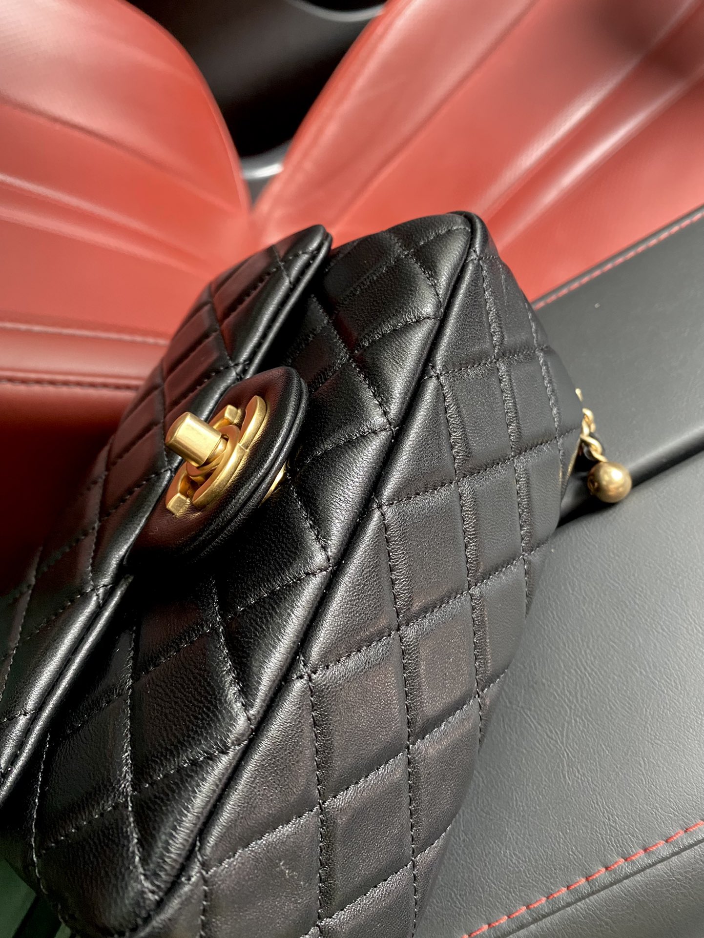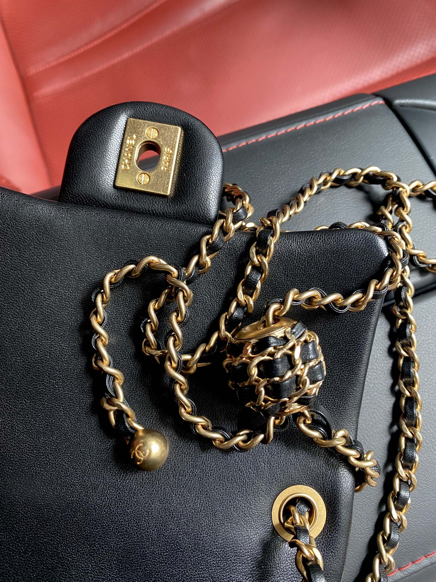 The Chanel CF Small Golden Ball is crafted with high-quality hardware, original mold, and lambskin leather. Size: 13*18*7cm.