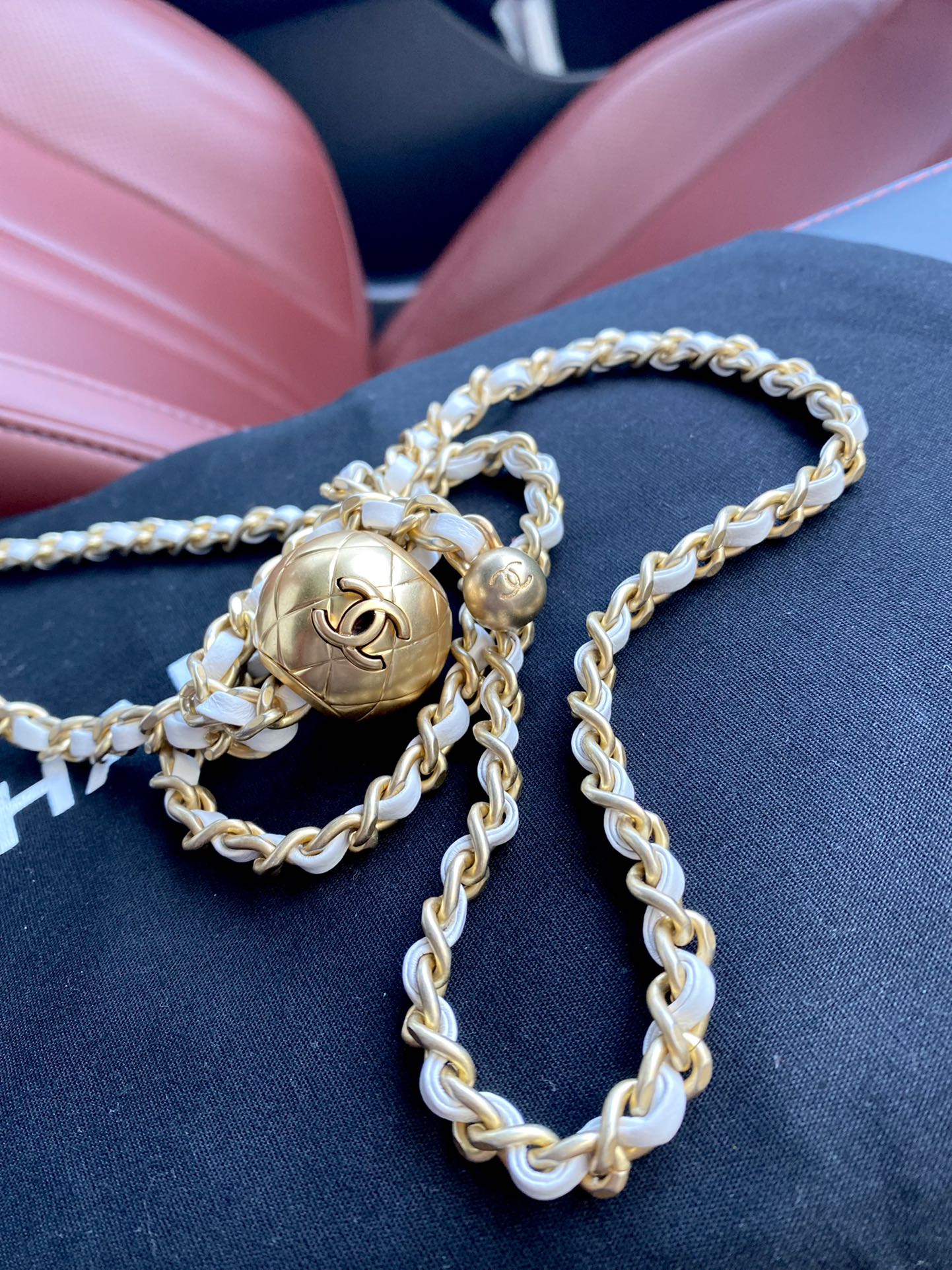 - Features a unique adjustable golden ball on the chain.