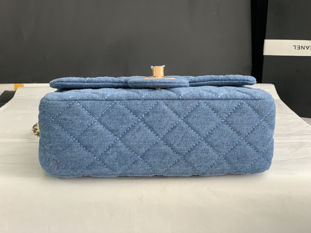 Chanel Classic Flap Denim Bag with Gold Hardware and Pearl Accent, 20cm