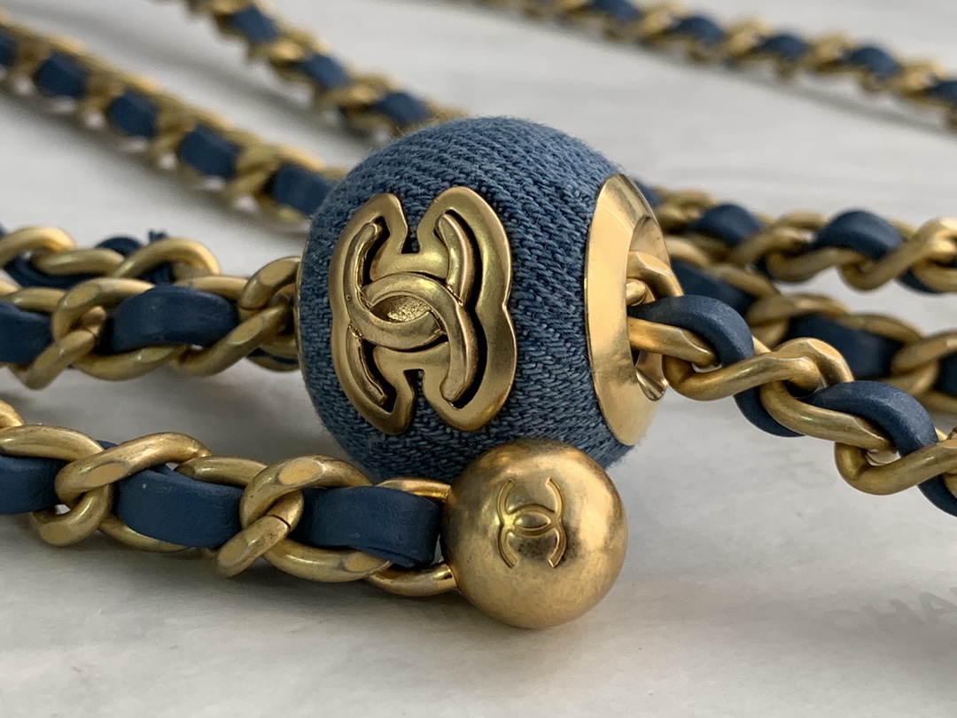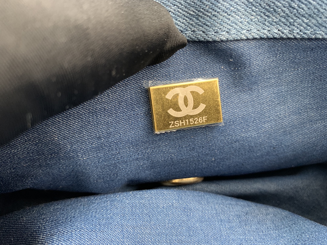 This Chanel Classic Flap bag is a must-have for any fashion enthusiast. Its blend of denim, gold hardware, and pearl accents makes it a versatile and stylish addition to any wardrobe.