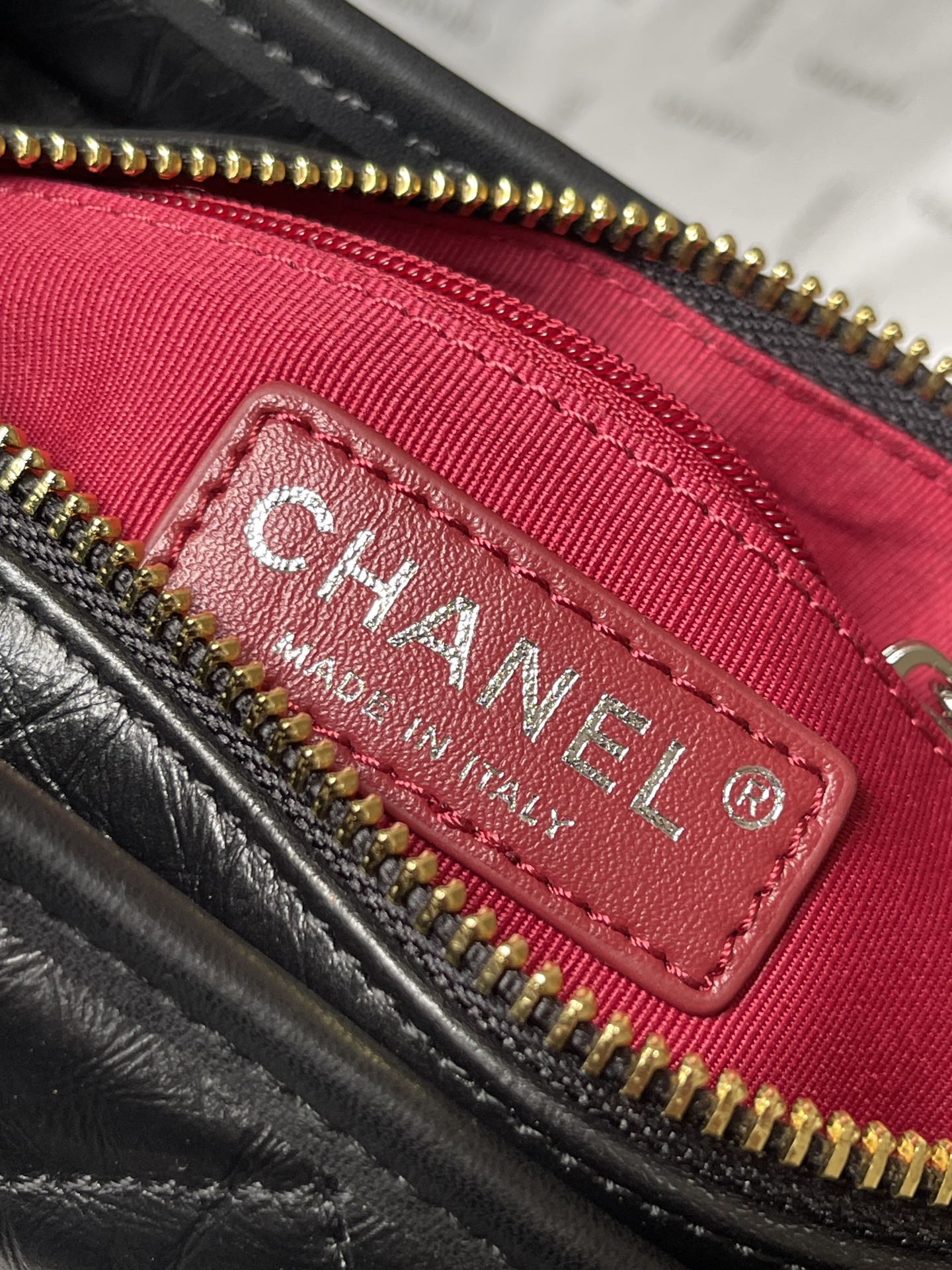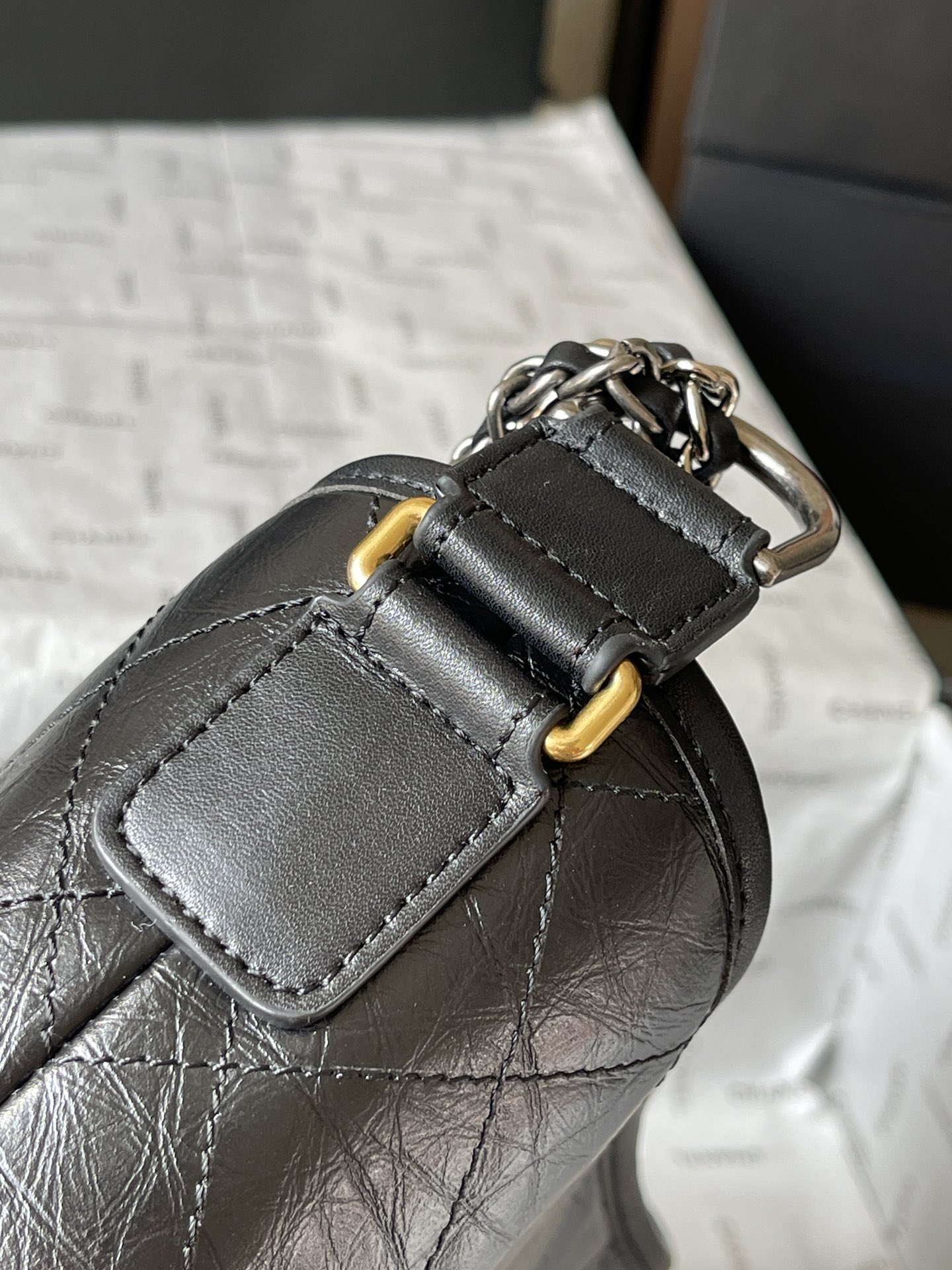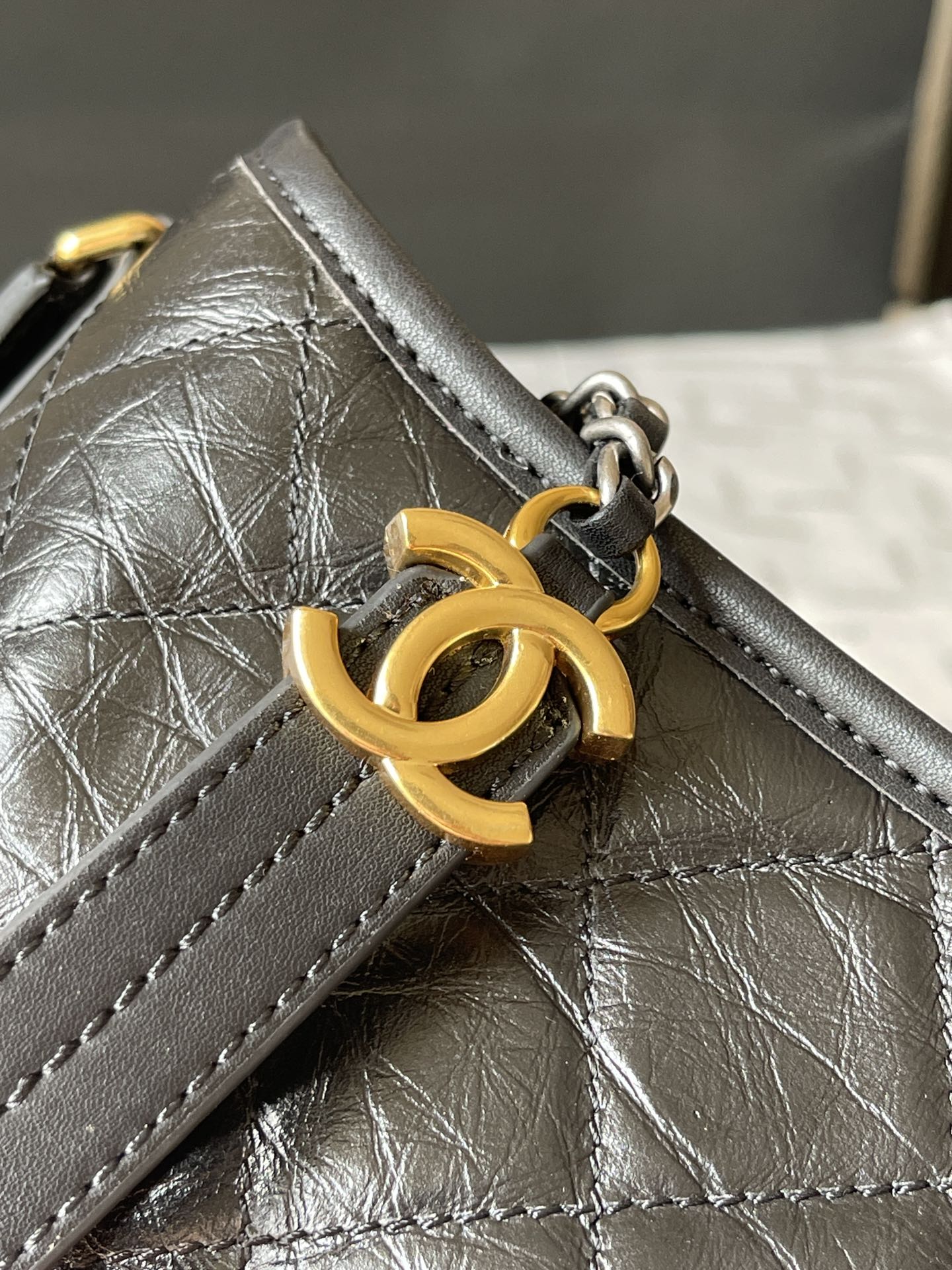 - Design: Iconic Chanel Gabrielle design with a quilted leather body.