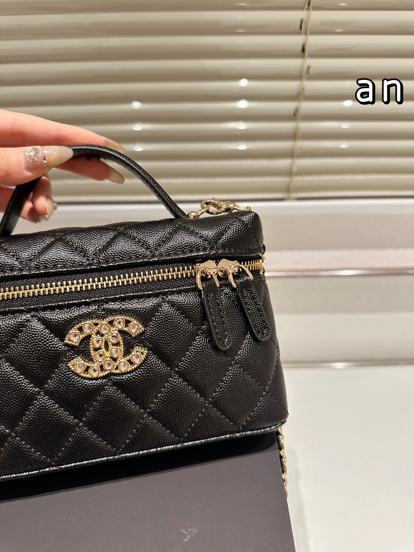 - Rhinestone CC Lock: Features a dazzling rhinestone-encrusted CC lock for added glamour.