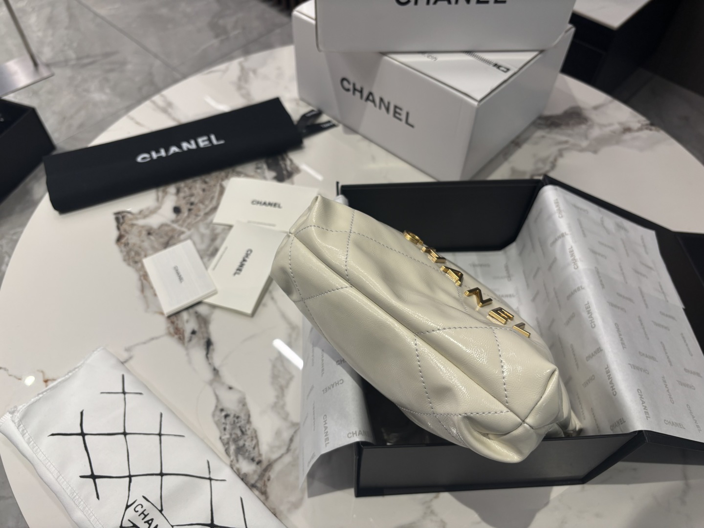 The Chanel Mini 22 Bag offers a playful and compact take on the classic 22 Bag design. This charming accessory is perfect for adding a touch of luxury to any outfit.