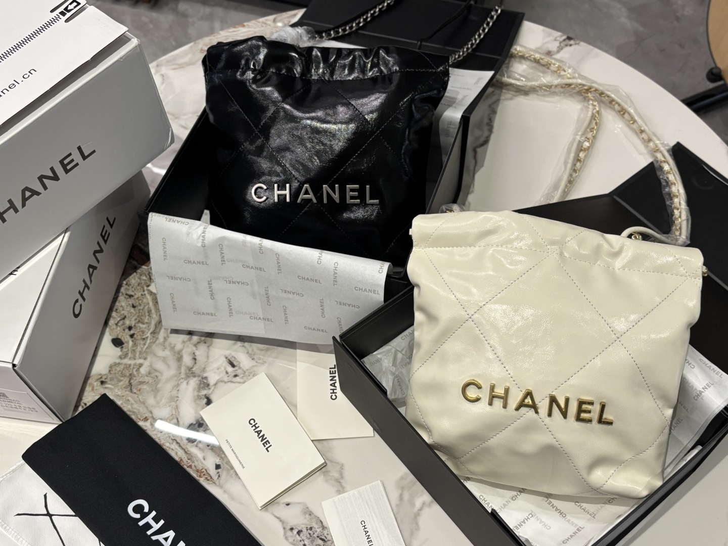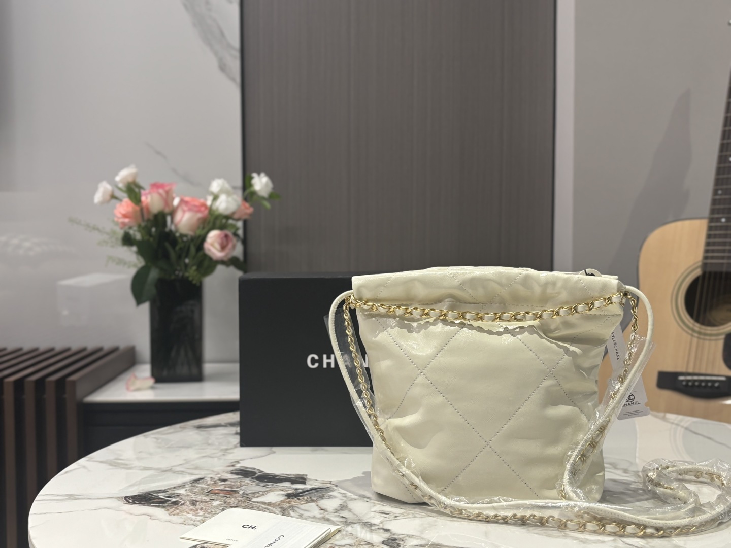 Chanel Mini 22 Bag Quilted Leather Drawstring Bucket Bag, 20 cm