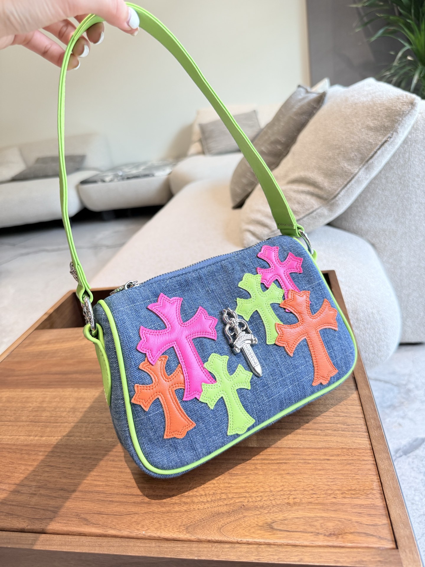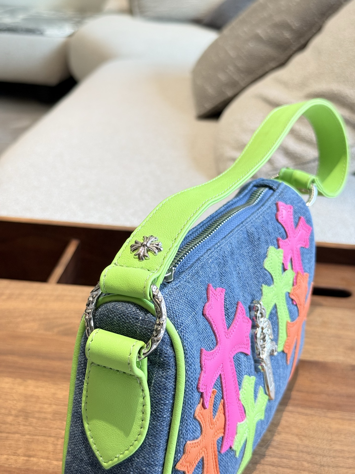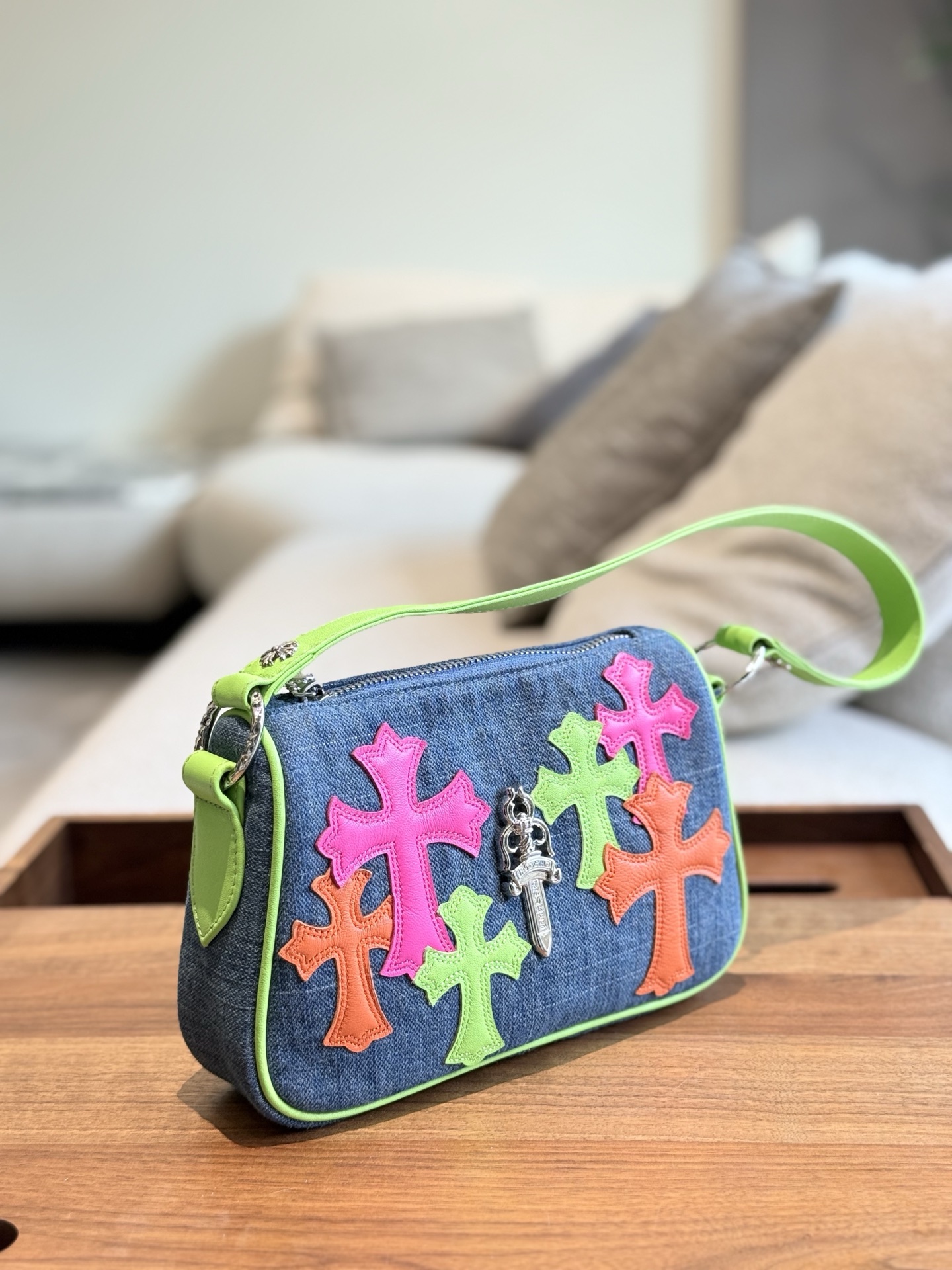 Introducing the Chrome Hearts Miami Exclusive Colorful Leather Denim Nuggets Bag, a standout piece that blends luxury with street style.