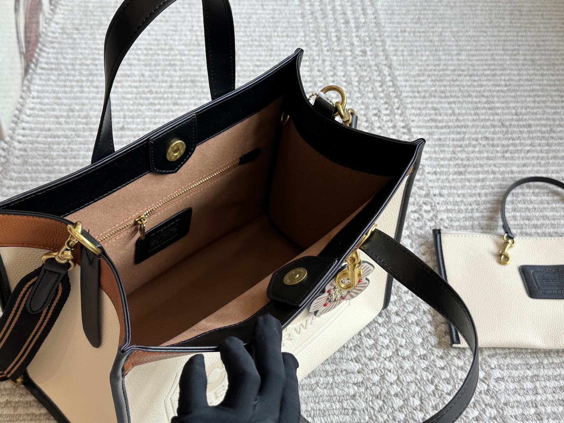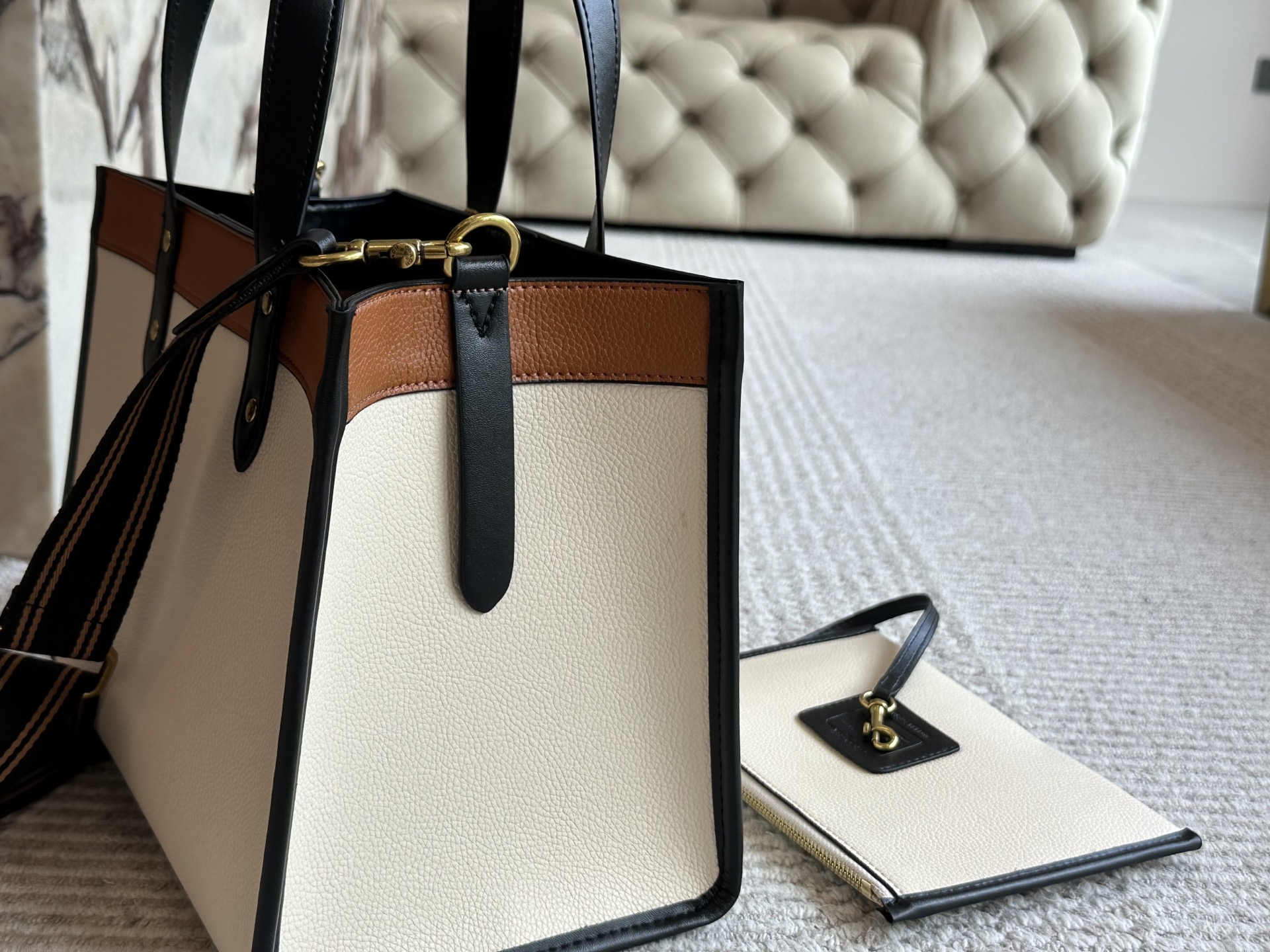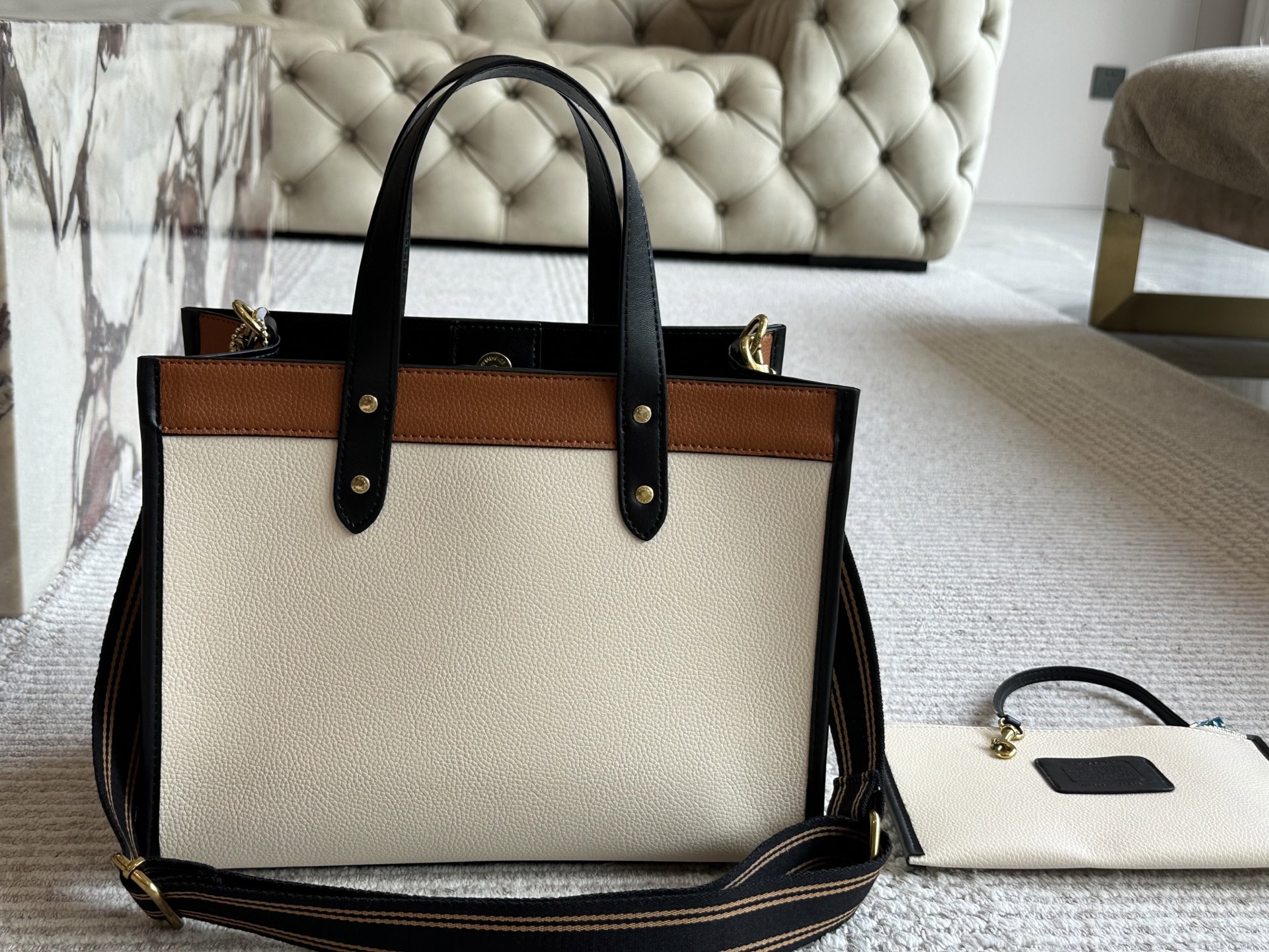 This Coach Coacho tote bag is the epitome of refined elegance. With its unique blend of colors and sophisticated design, it's an accessory that speaks volumes without saying a word.
