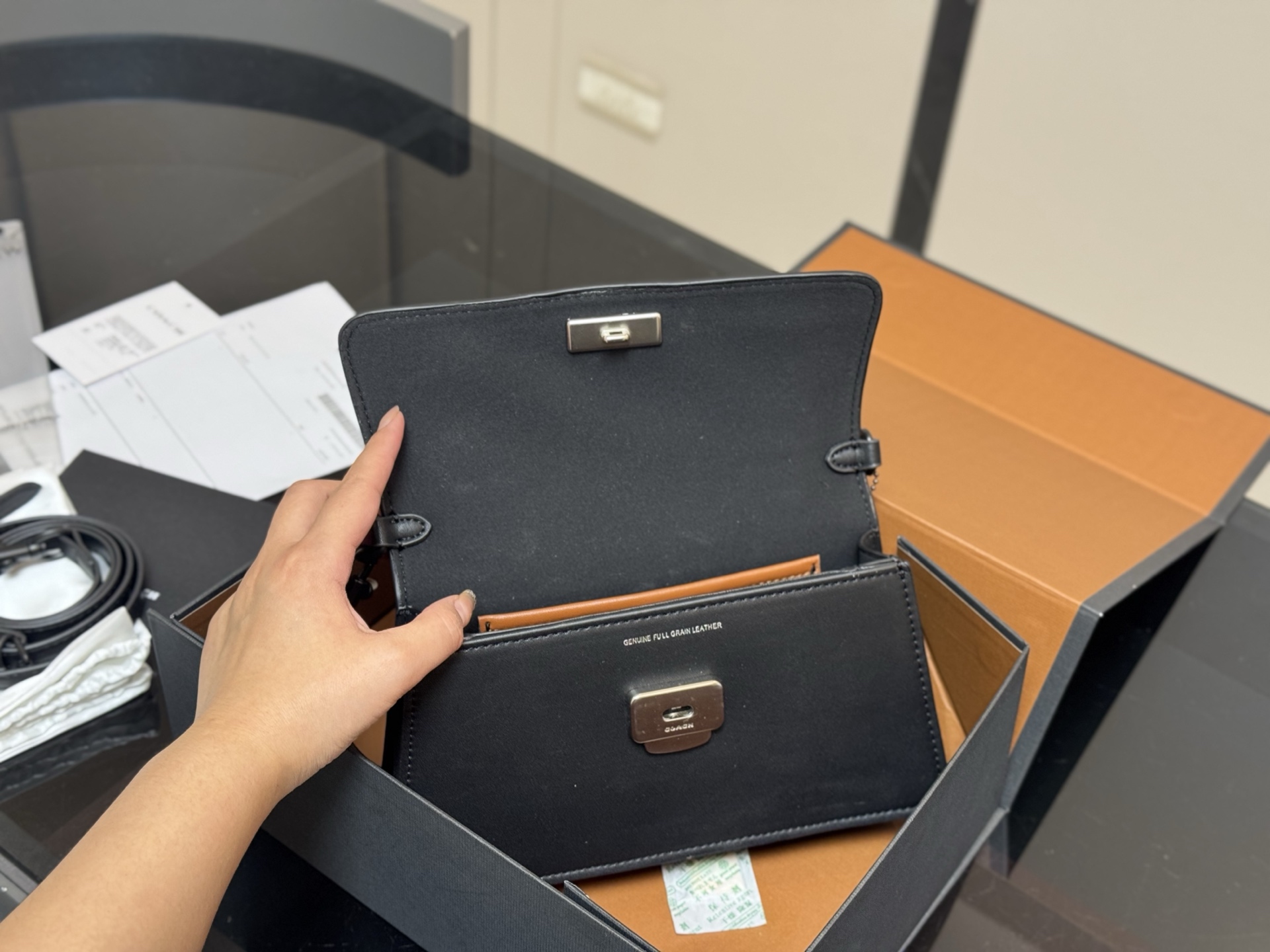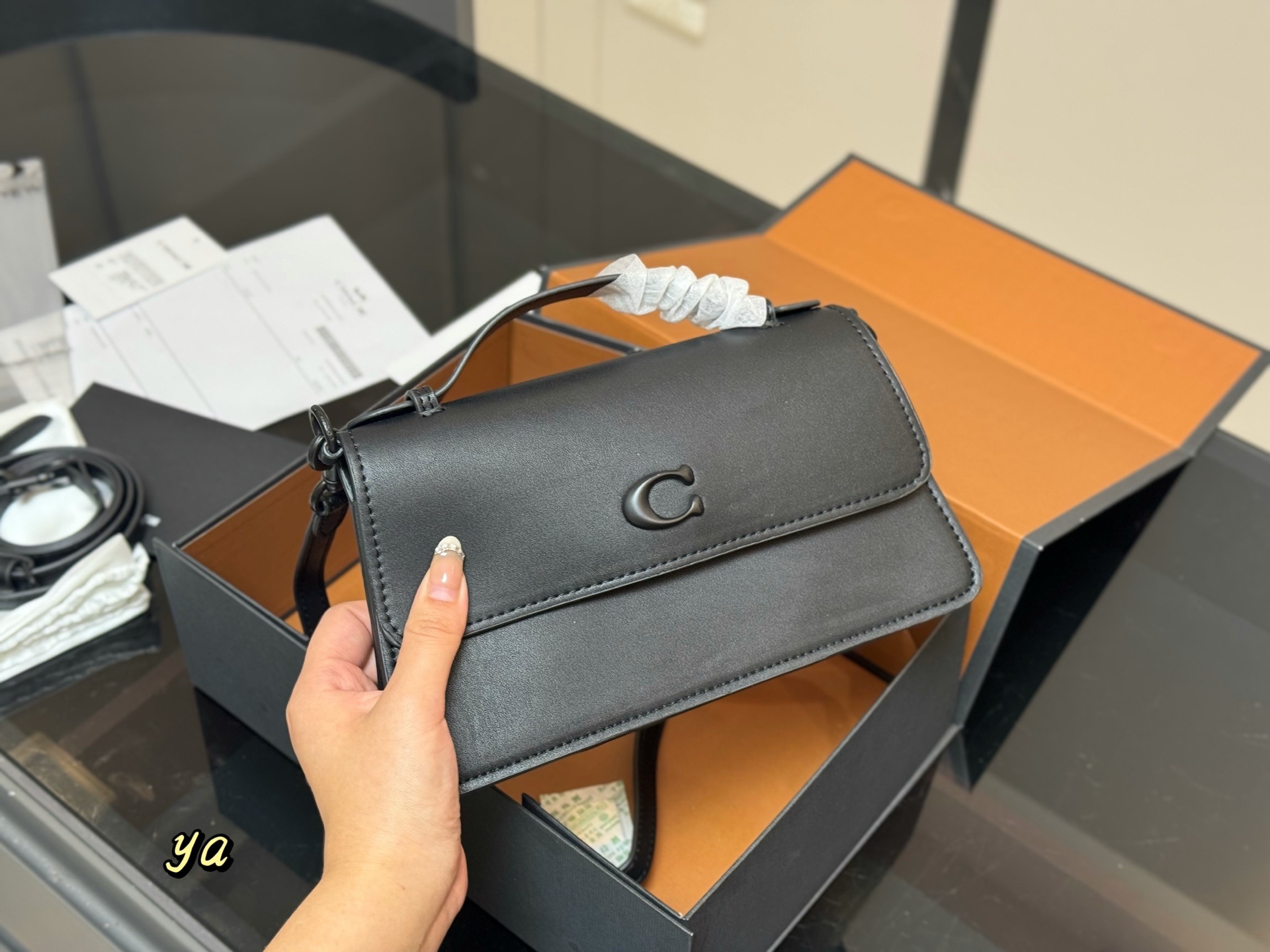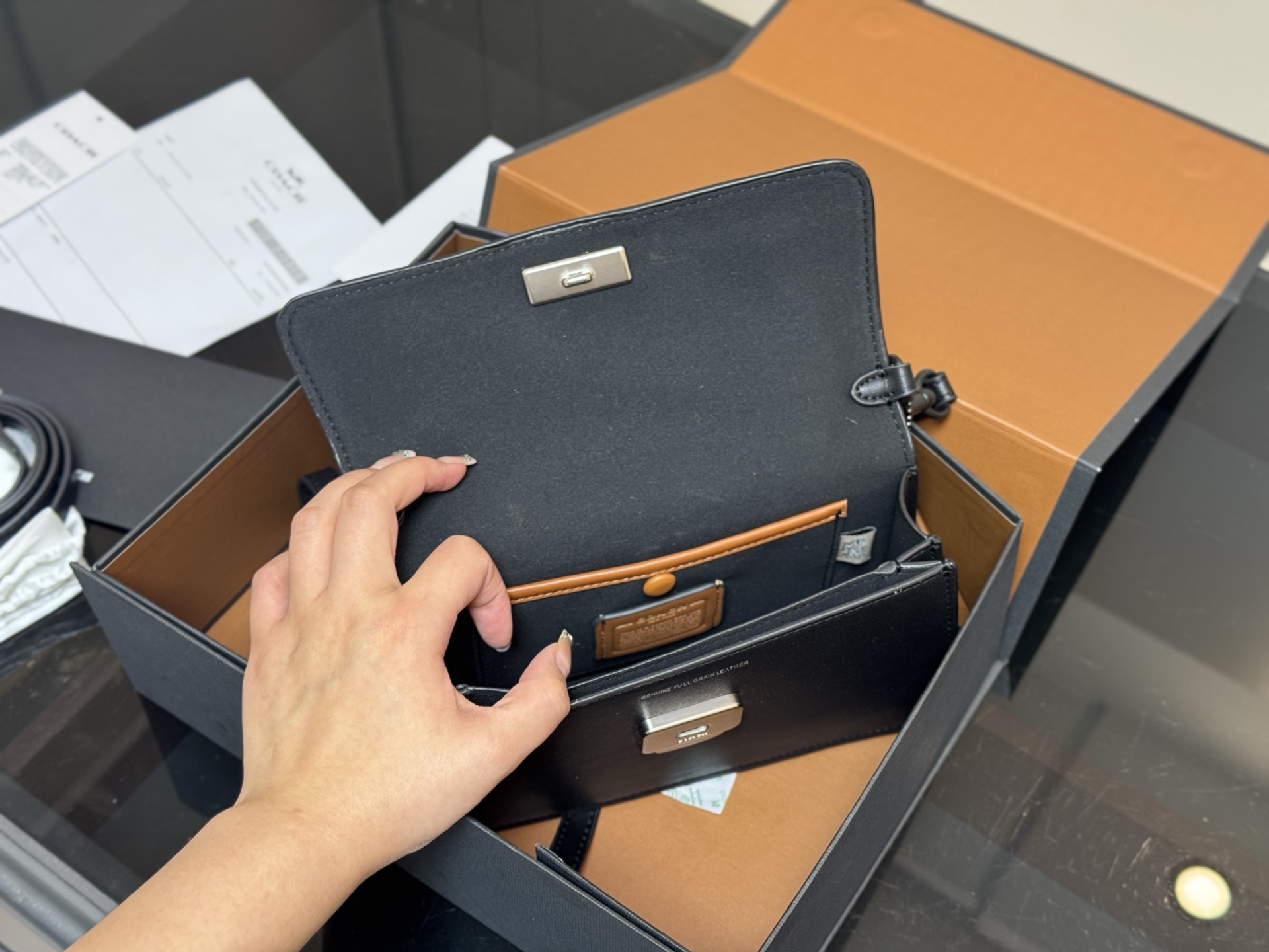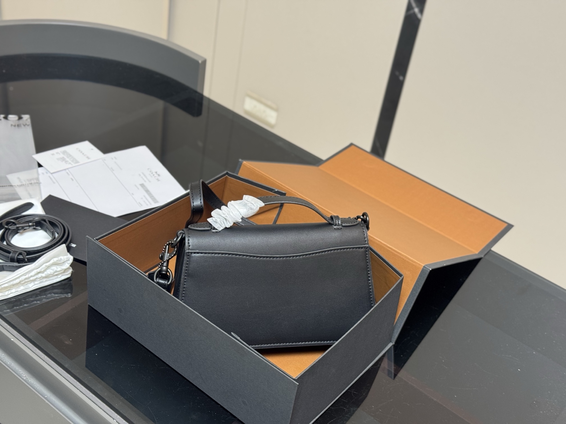 Coach Juno Black Leather Crossbody Bag with Foldable Box, 23 x 13 cm