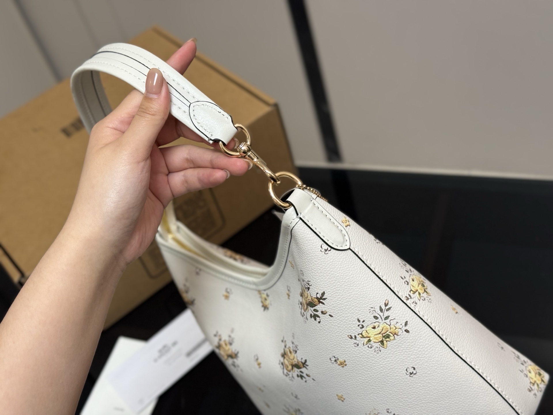Coach Laurel White Floral Print Hobo Bag with Two Shoulder Straps