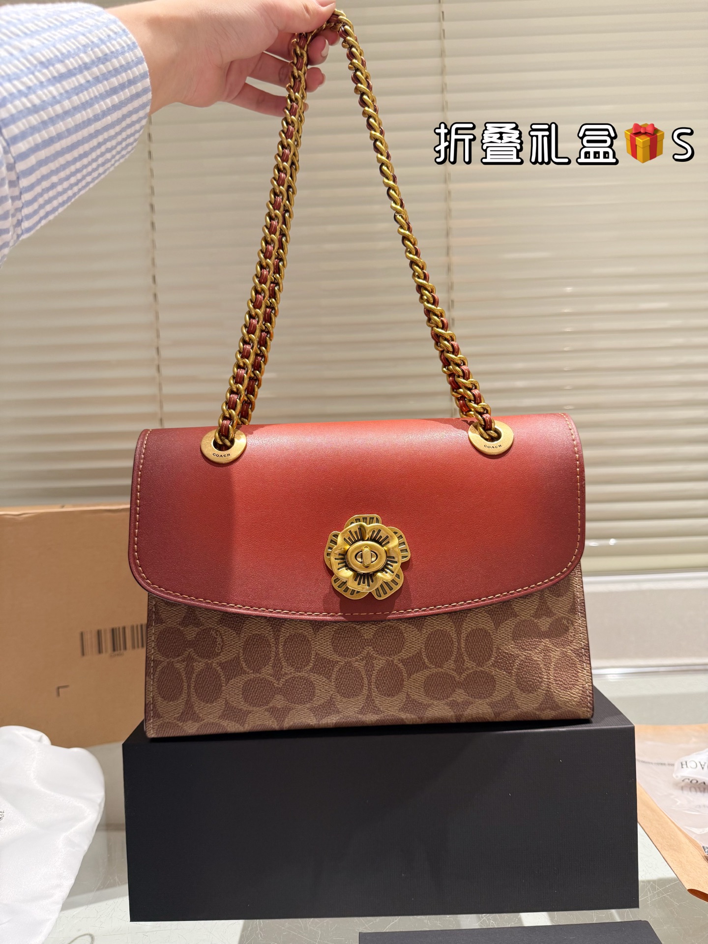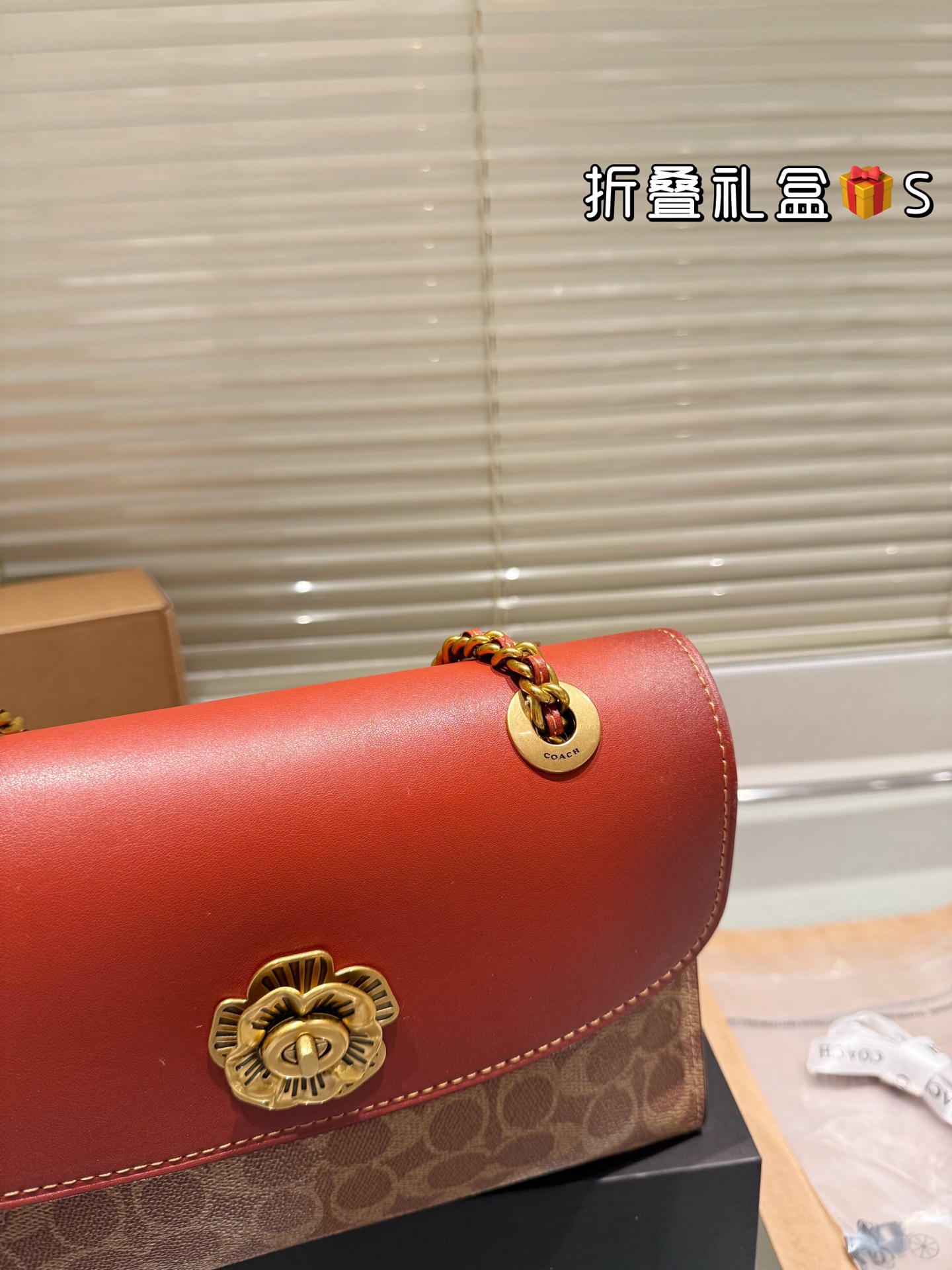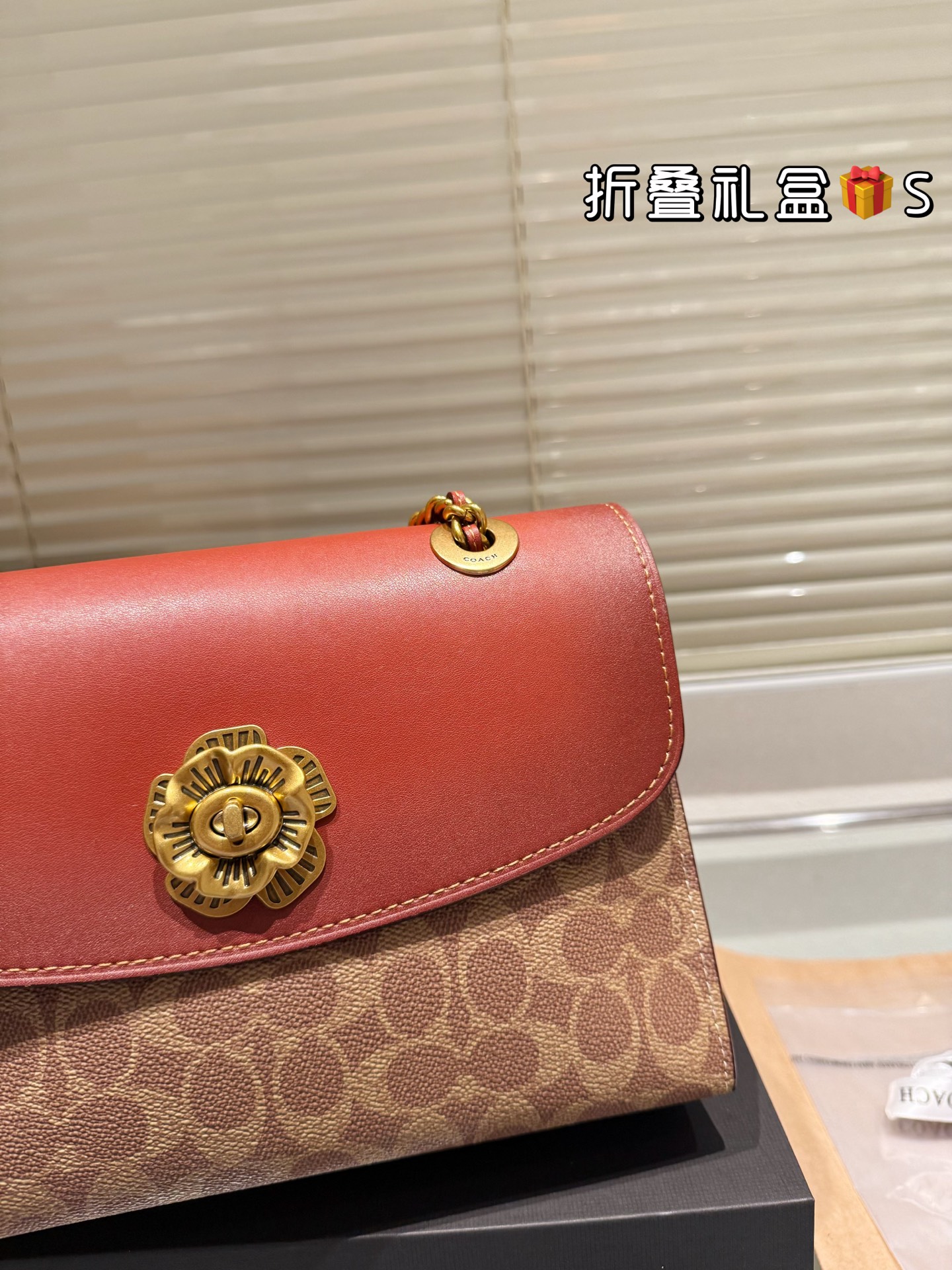 Original quality Coach Parker bag with soft leather, spacious interior, and tea rose detail. Perfect for any occasion. Size: 26 x 18cm.