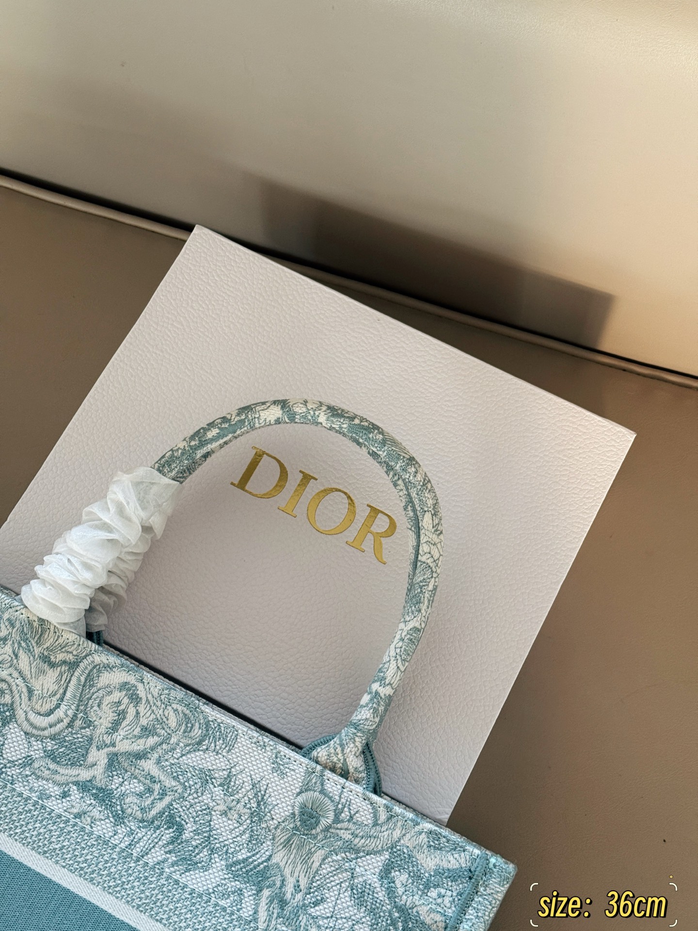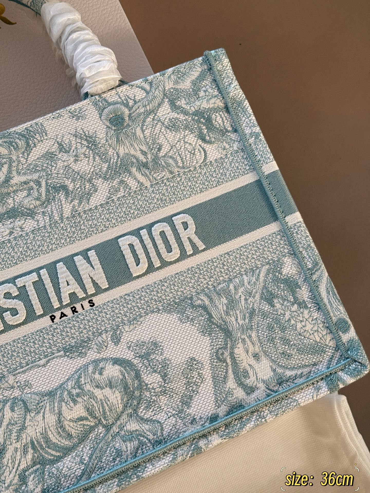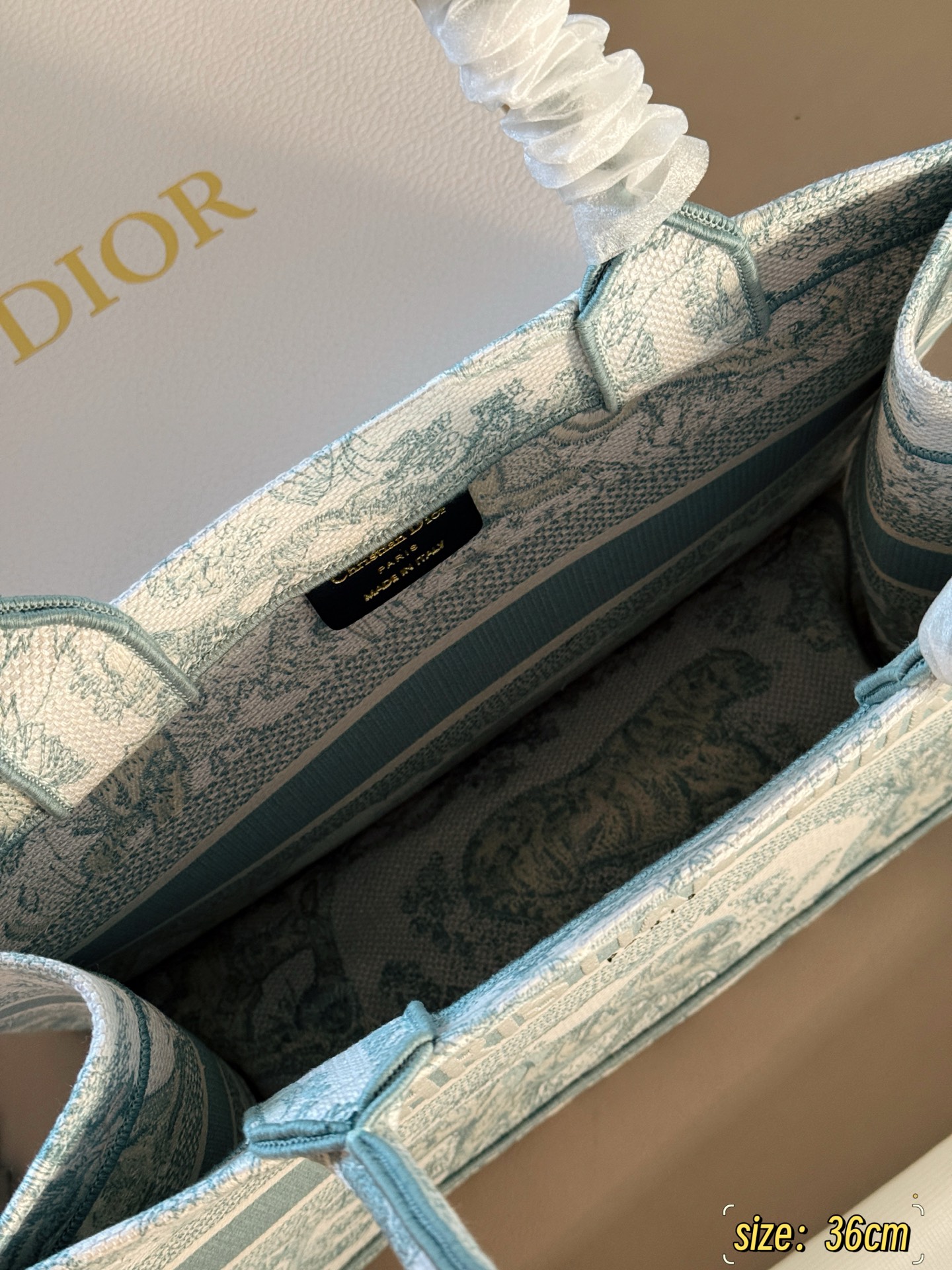 Exclusive Dior Book Tote 25 shopping bag, a spring limited edition. Lightweight with summer colors, easy to carry. Size: 36cm.