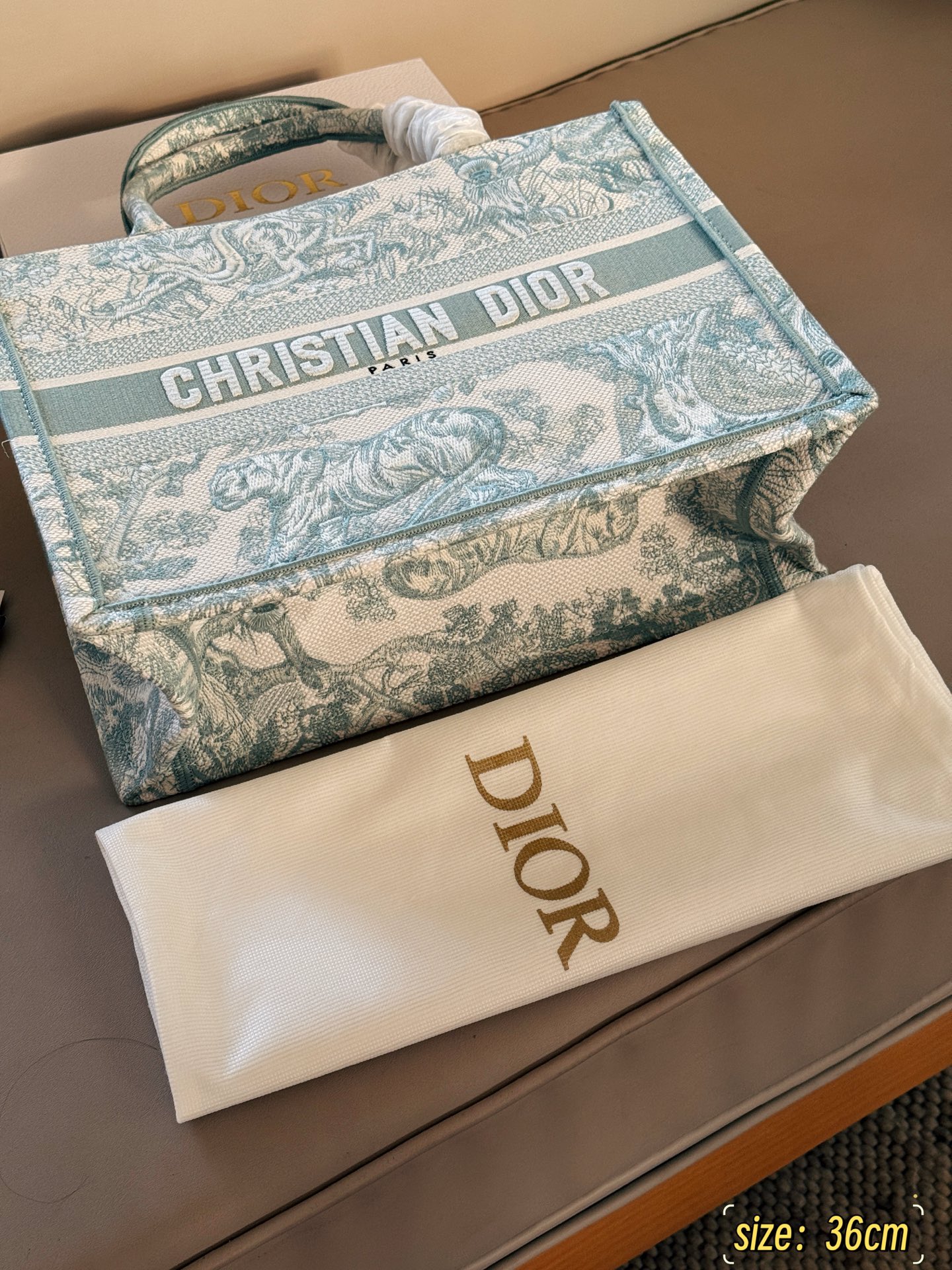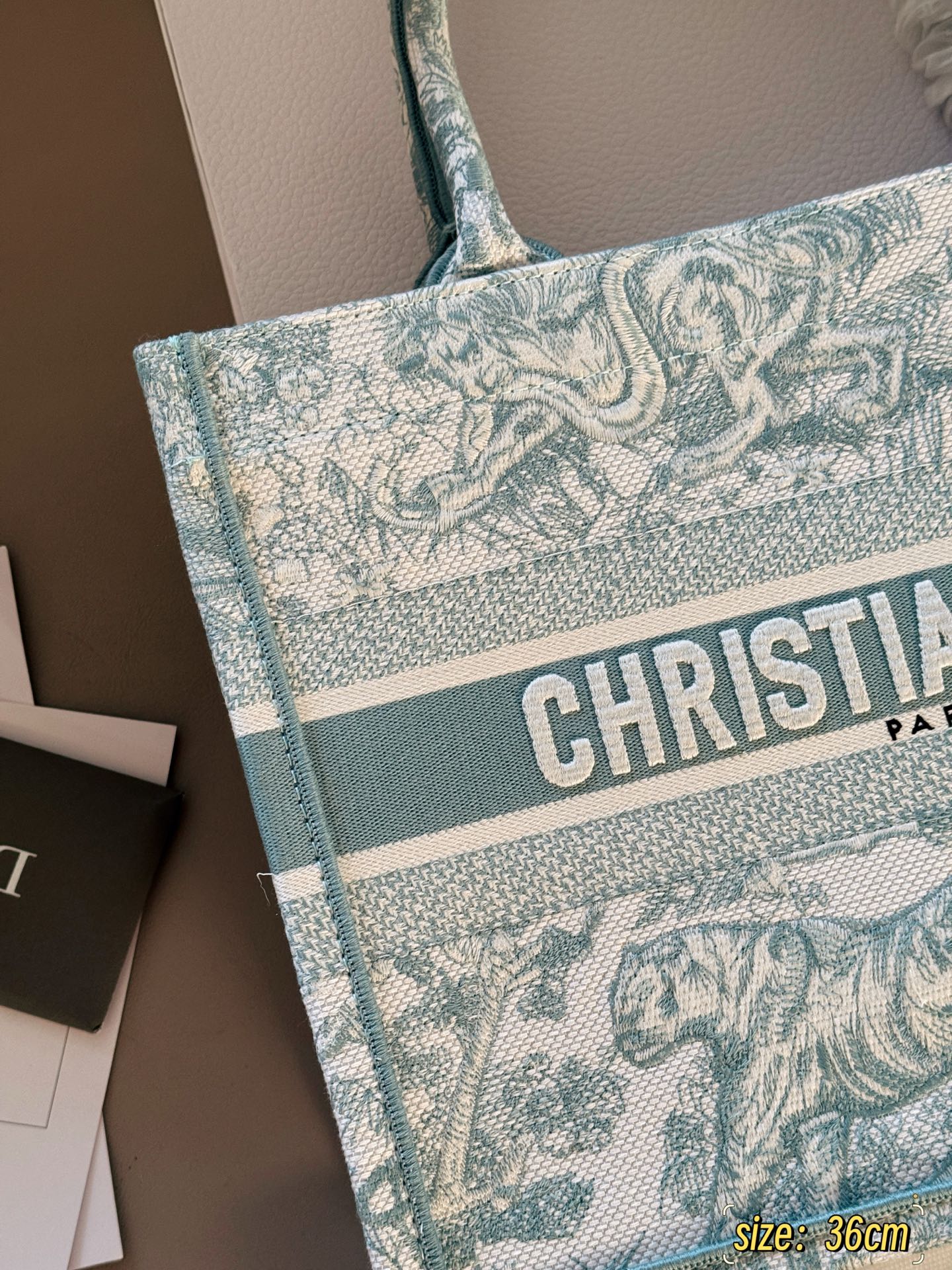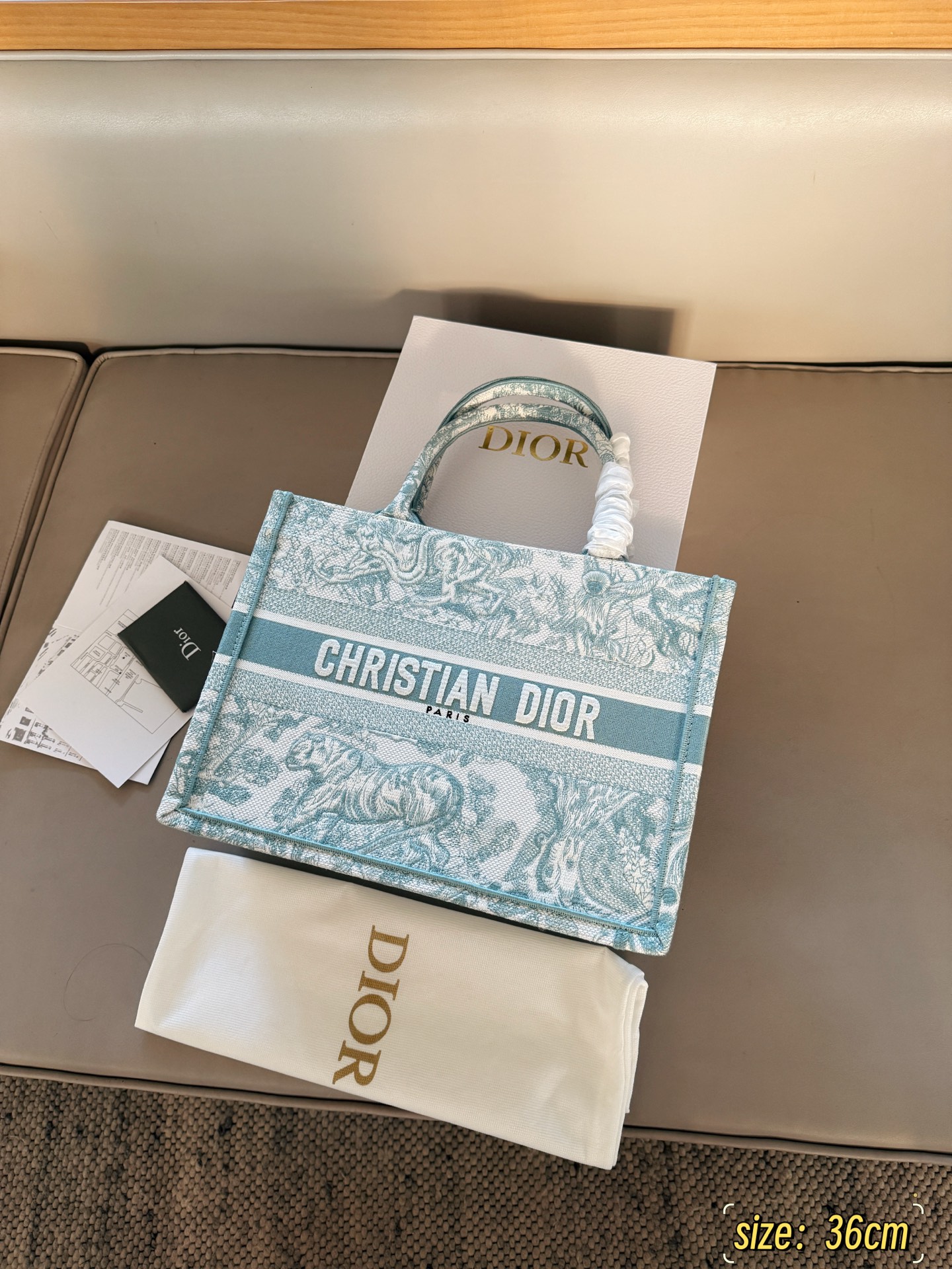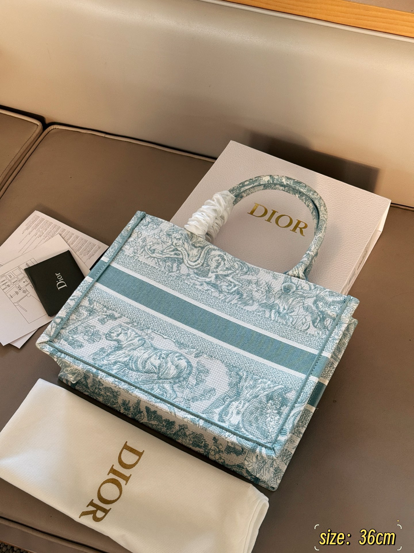 Exclusive Dior Book Tote 25 shopping bag, a spring limited edition. Lightweight with summer colors, easy to carry. Size: 36cm.