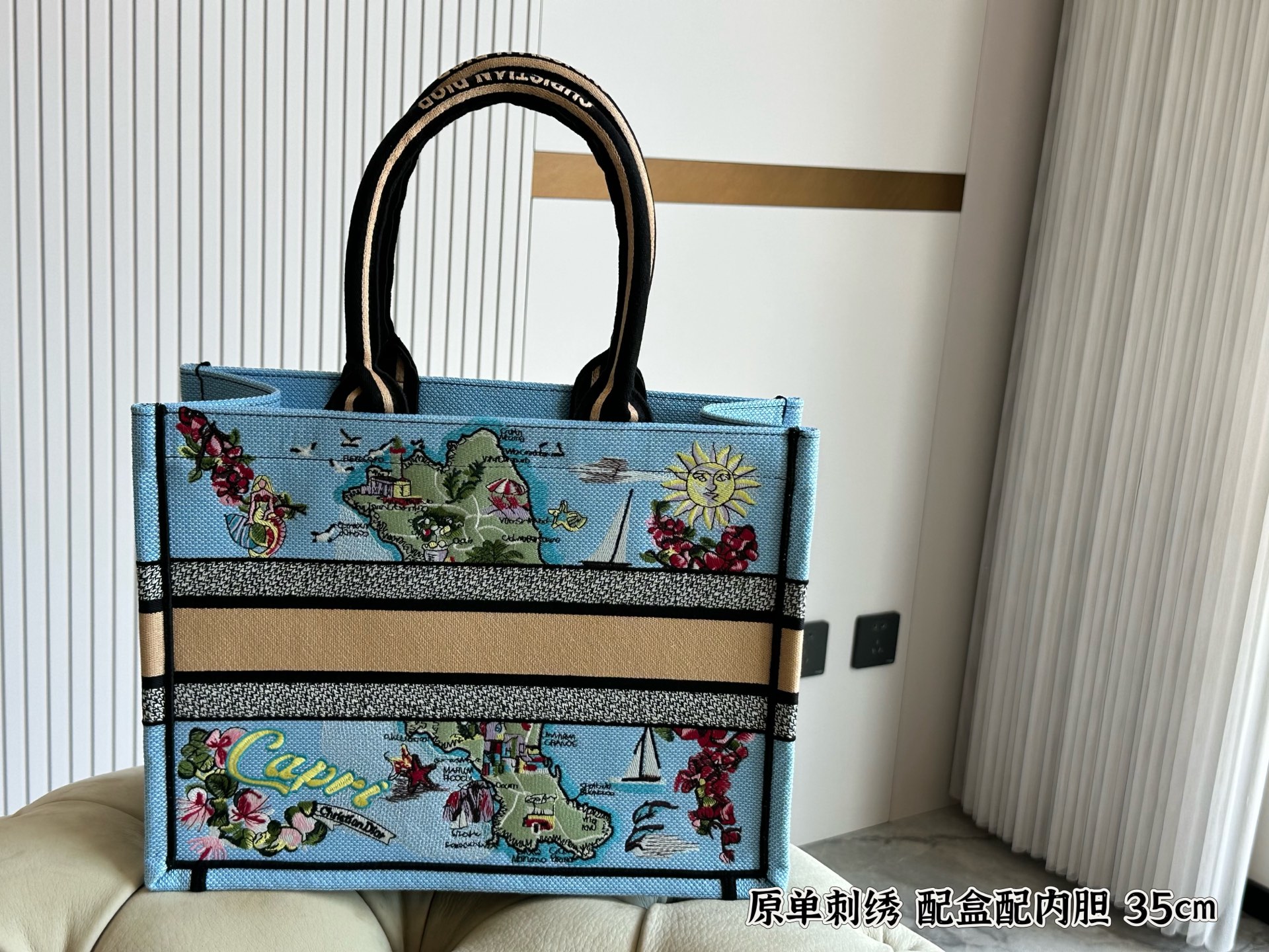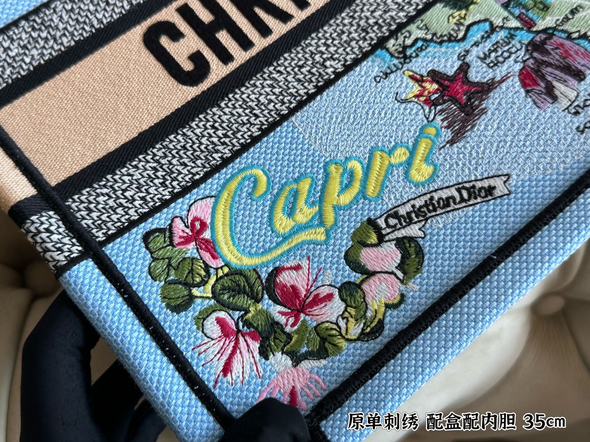 Dior CDBooktote25 Tote Bag, 35*28cm, Embroidered Canvas, Capri Motif