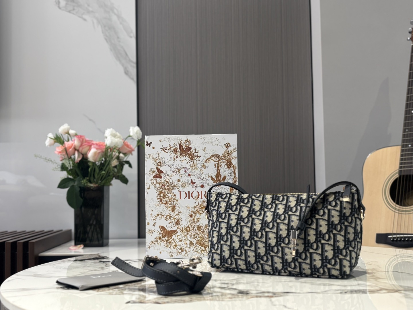 Dior Nomad Oblique Jacquard Hobo Bag with Detachable Shoulder Strap