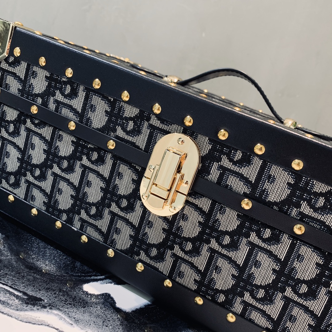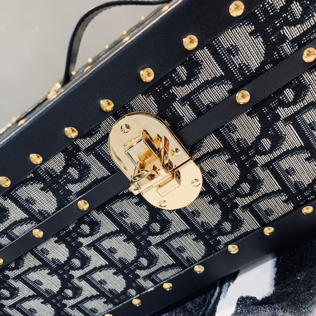 Dior Oblique Lock Vanity Case, Small Cosmetic Box Bag for Travel and Storage