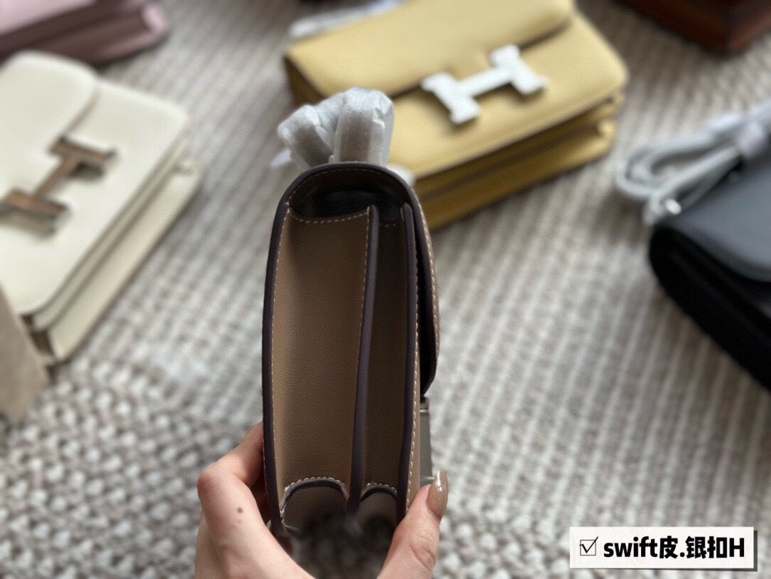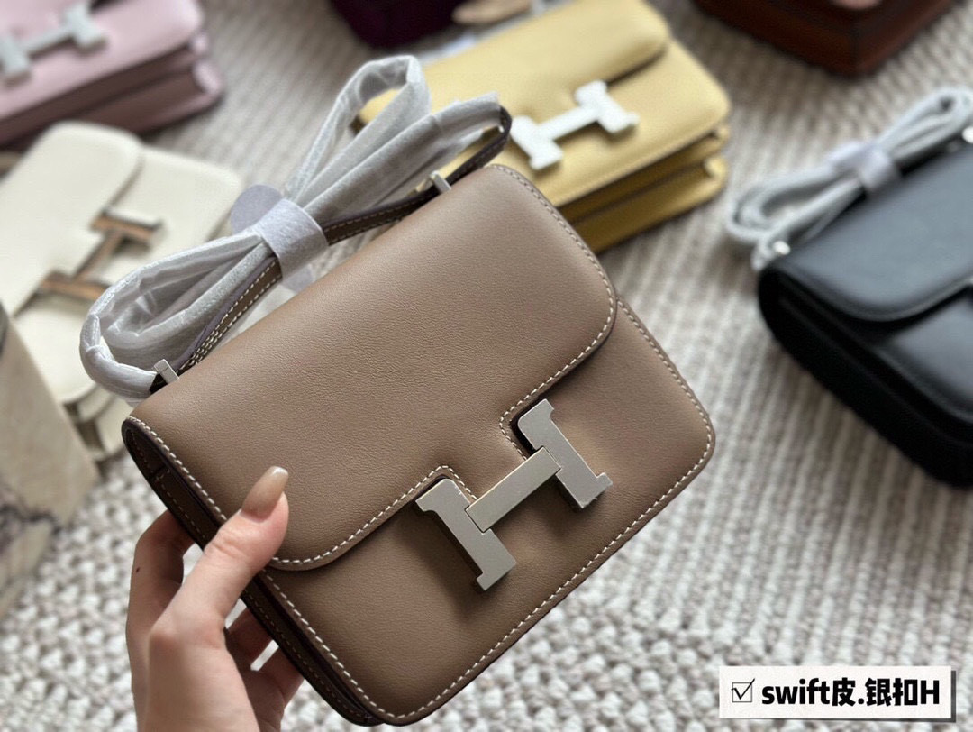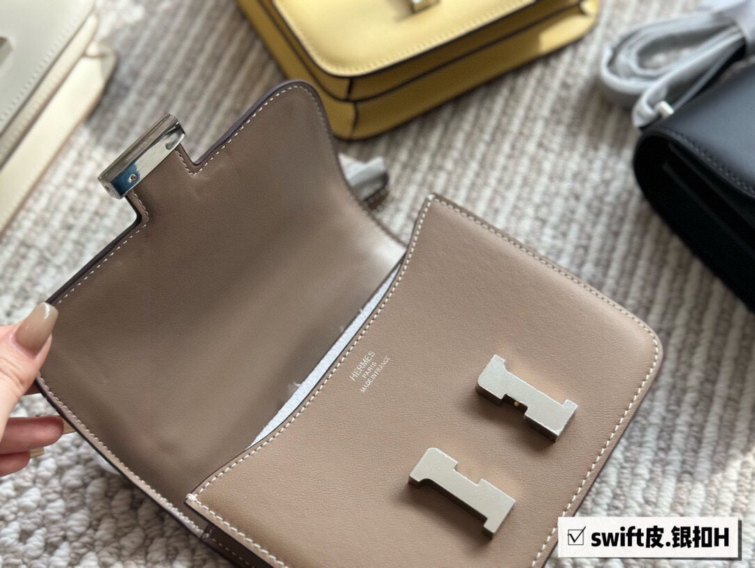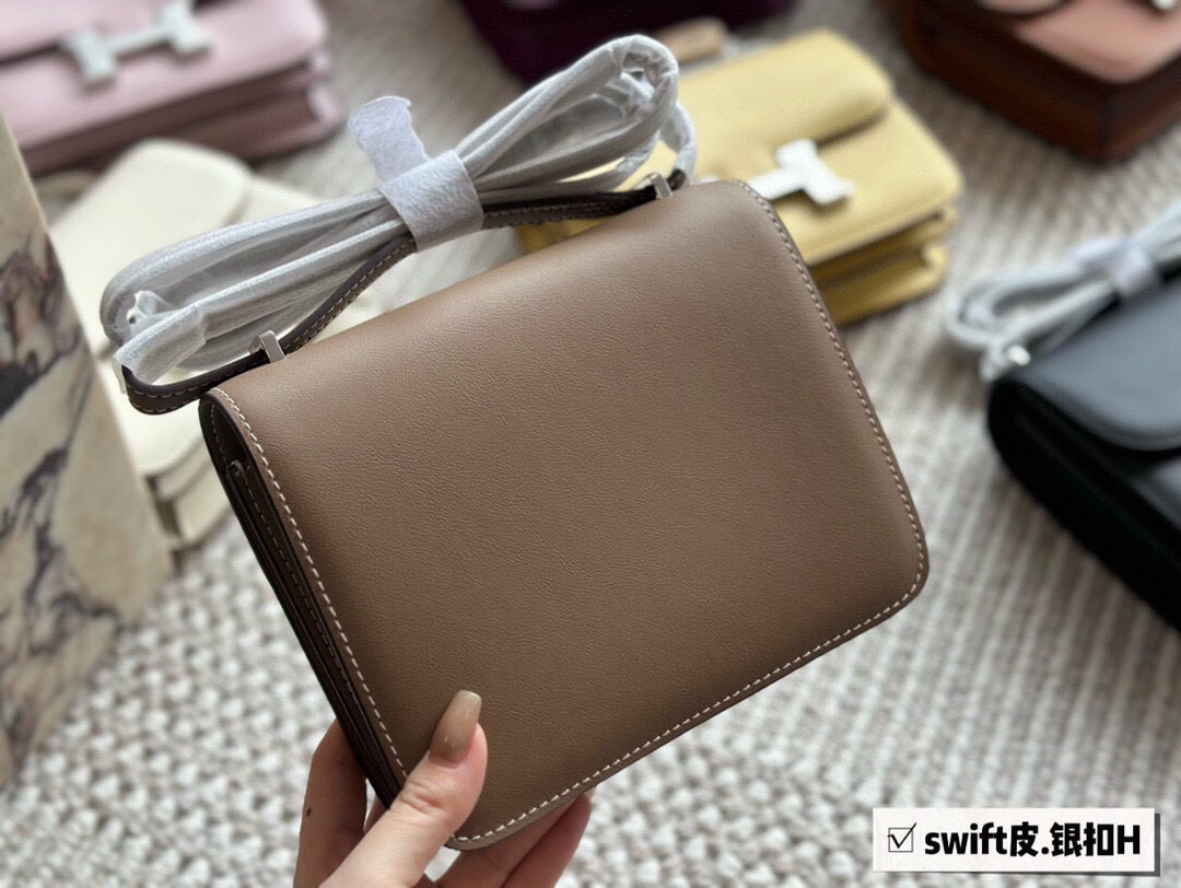Elegant Hermes Swift Leather Shoulder Bag with Silver Hardware, 19*15cm