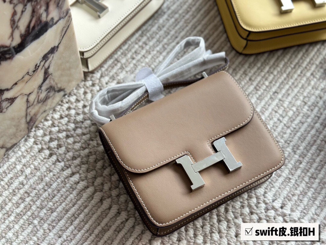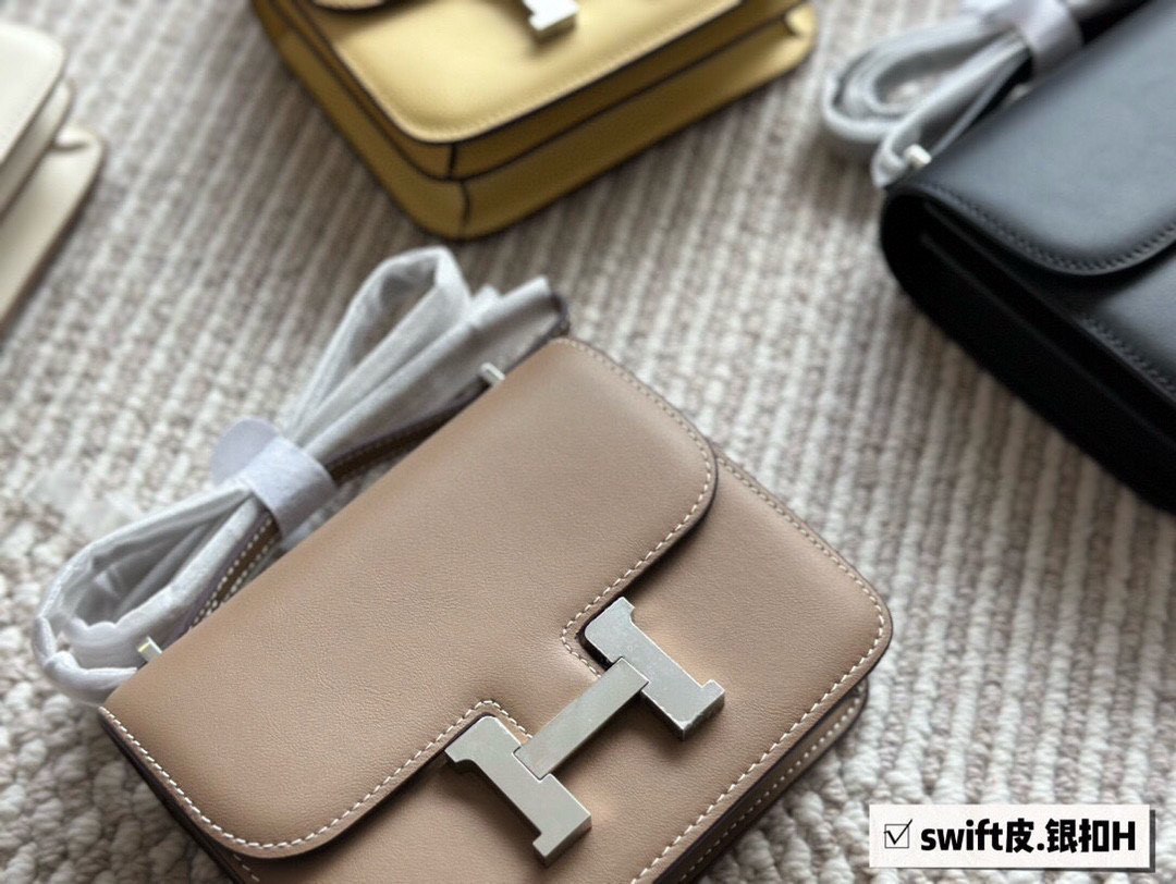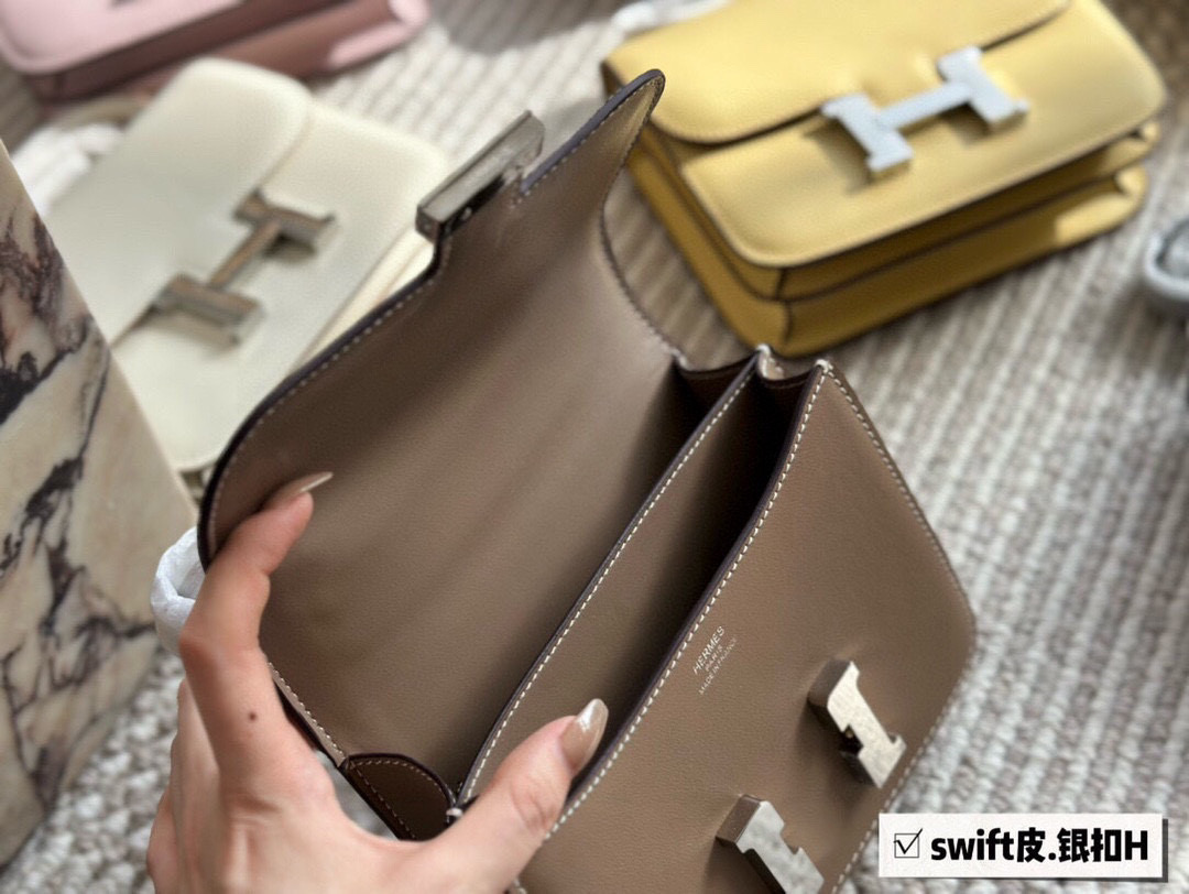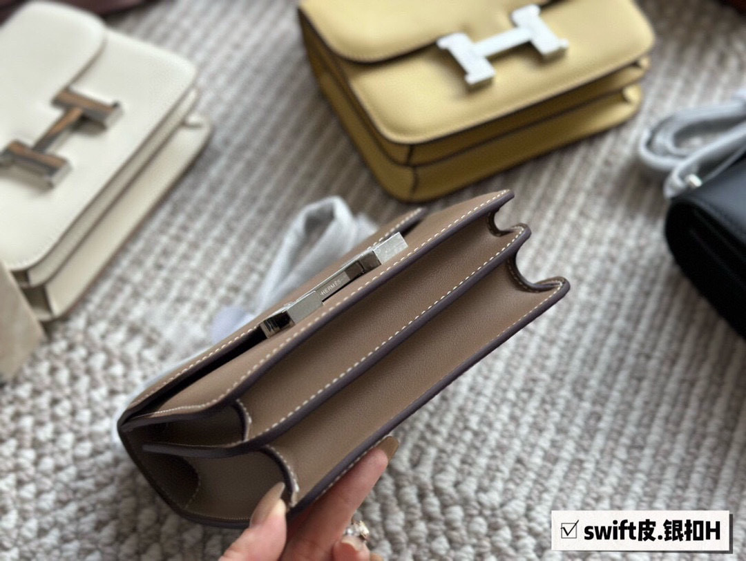 Elegant Hermes Swift Leather Shoulder Bag with Silver Hardware, 19*15cm