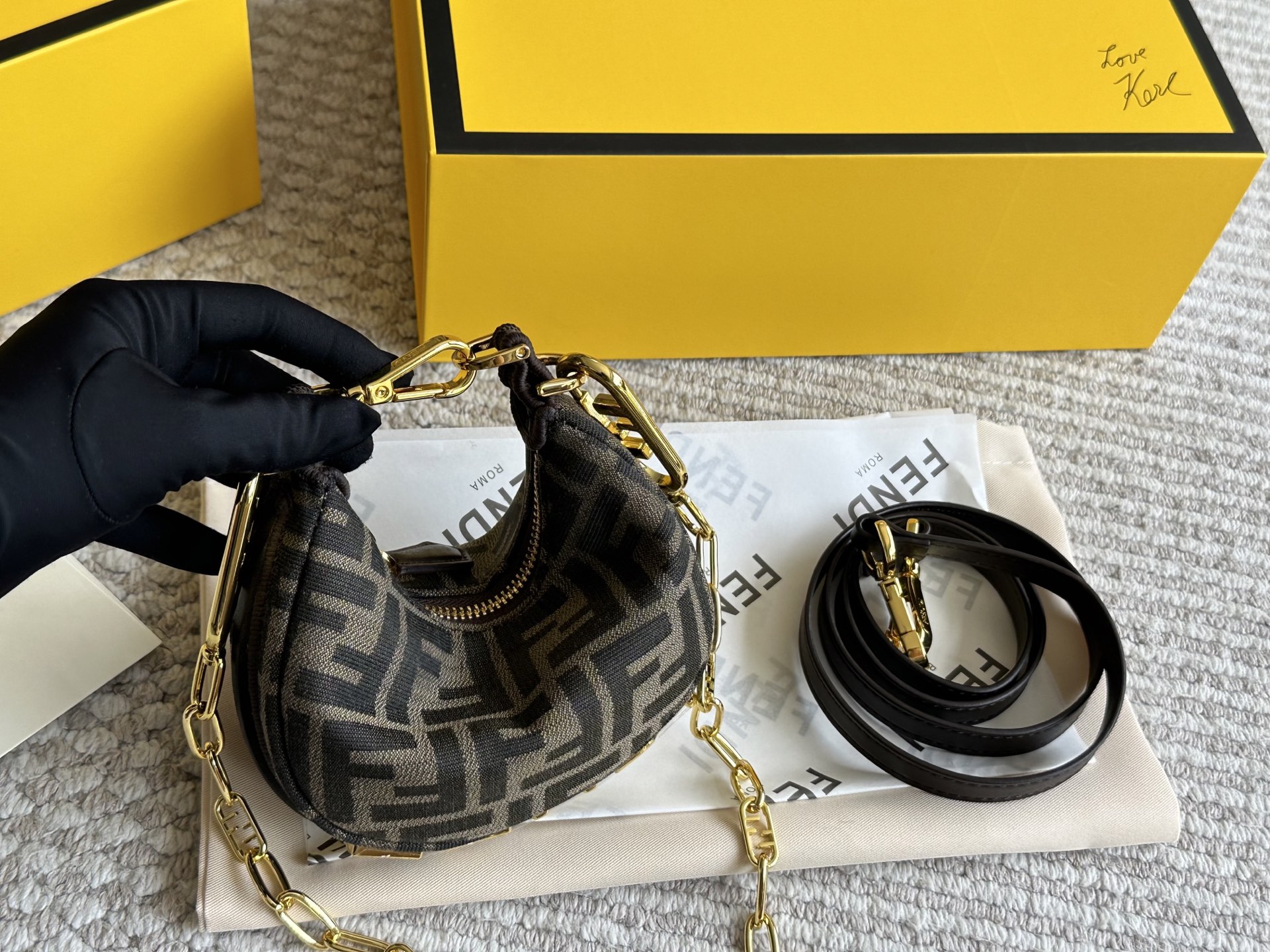 - Logo: Bold Fendi logo embellishment.