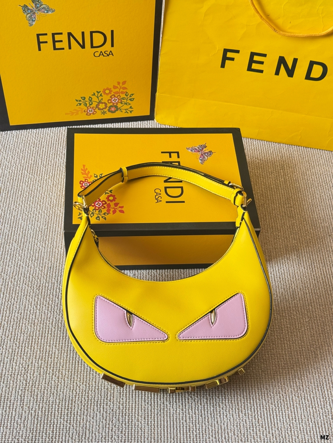 Fendi Fendigraphy Small Hobo Bag, Pink Leather with Yellow Monster Eyes