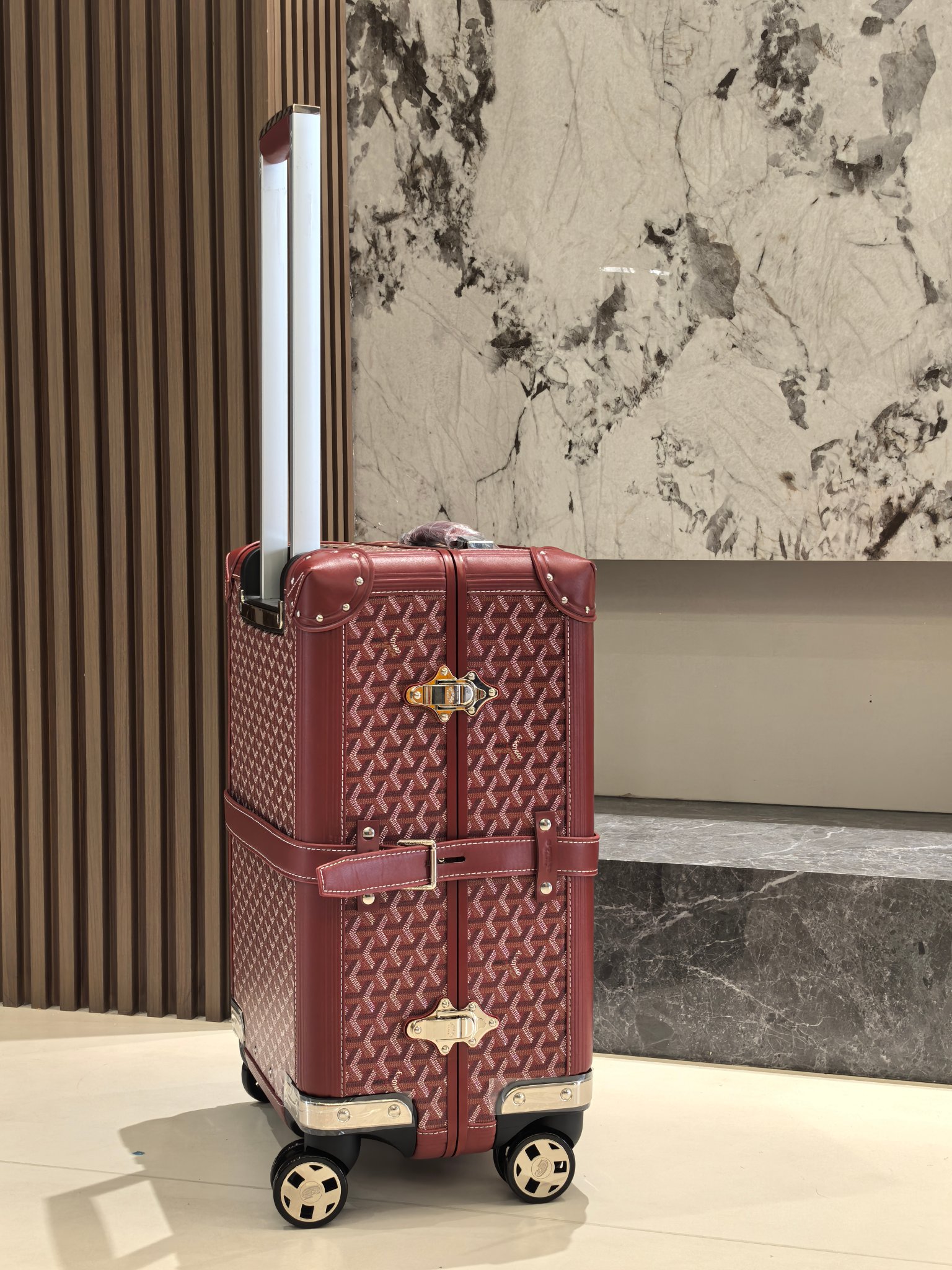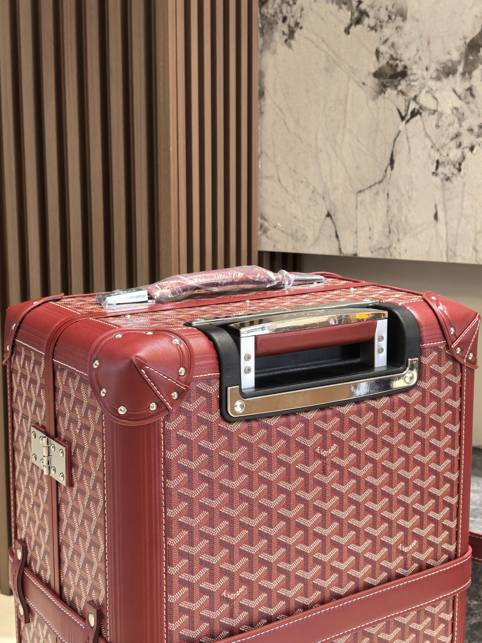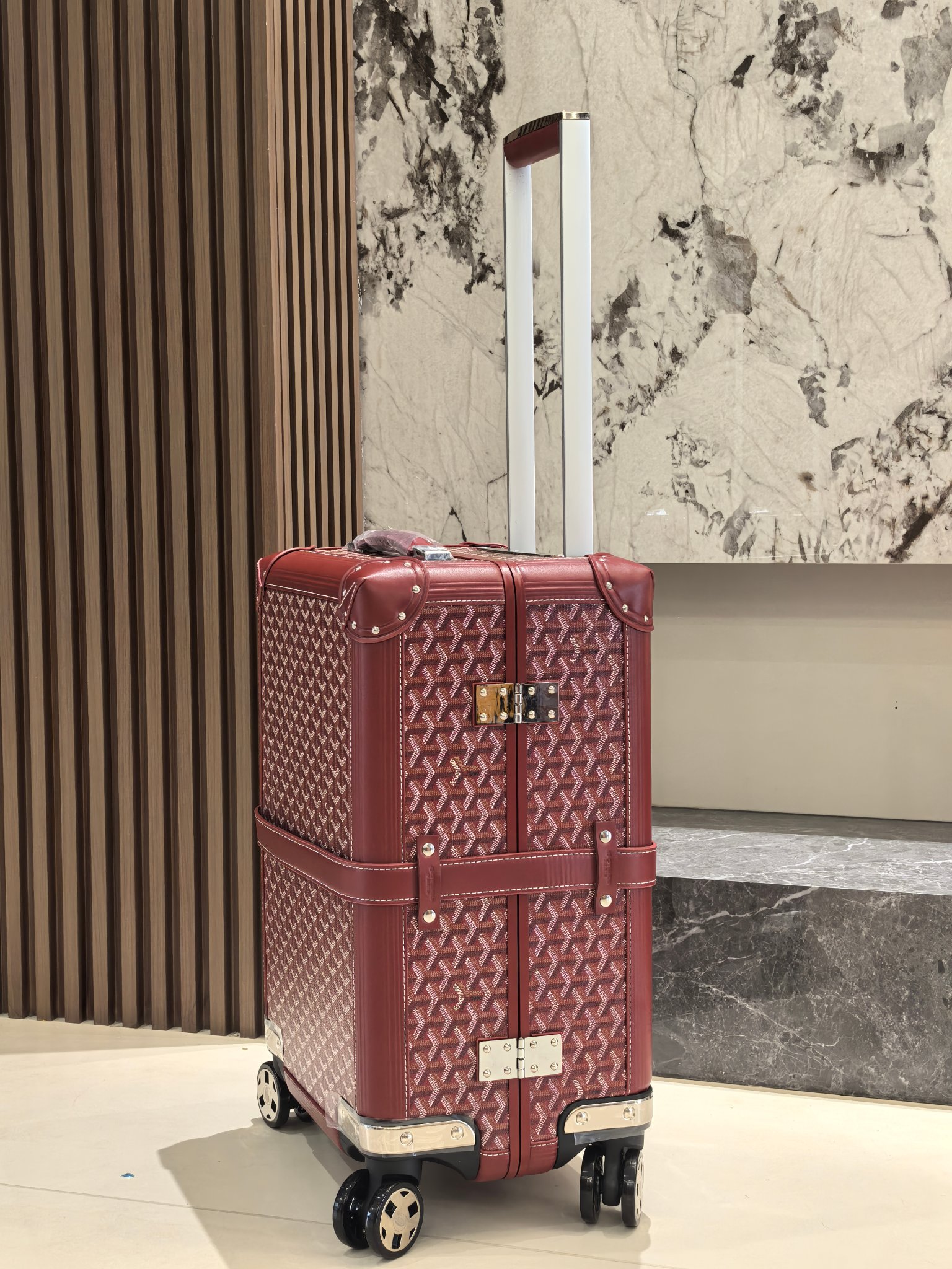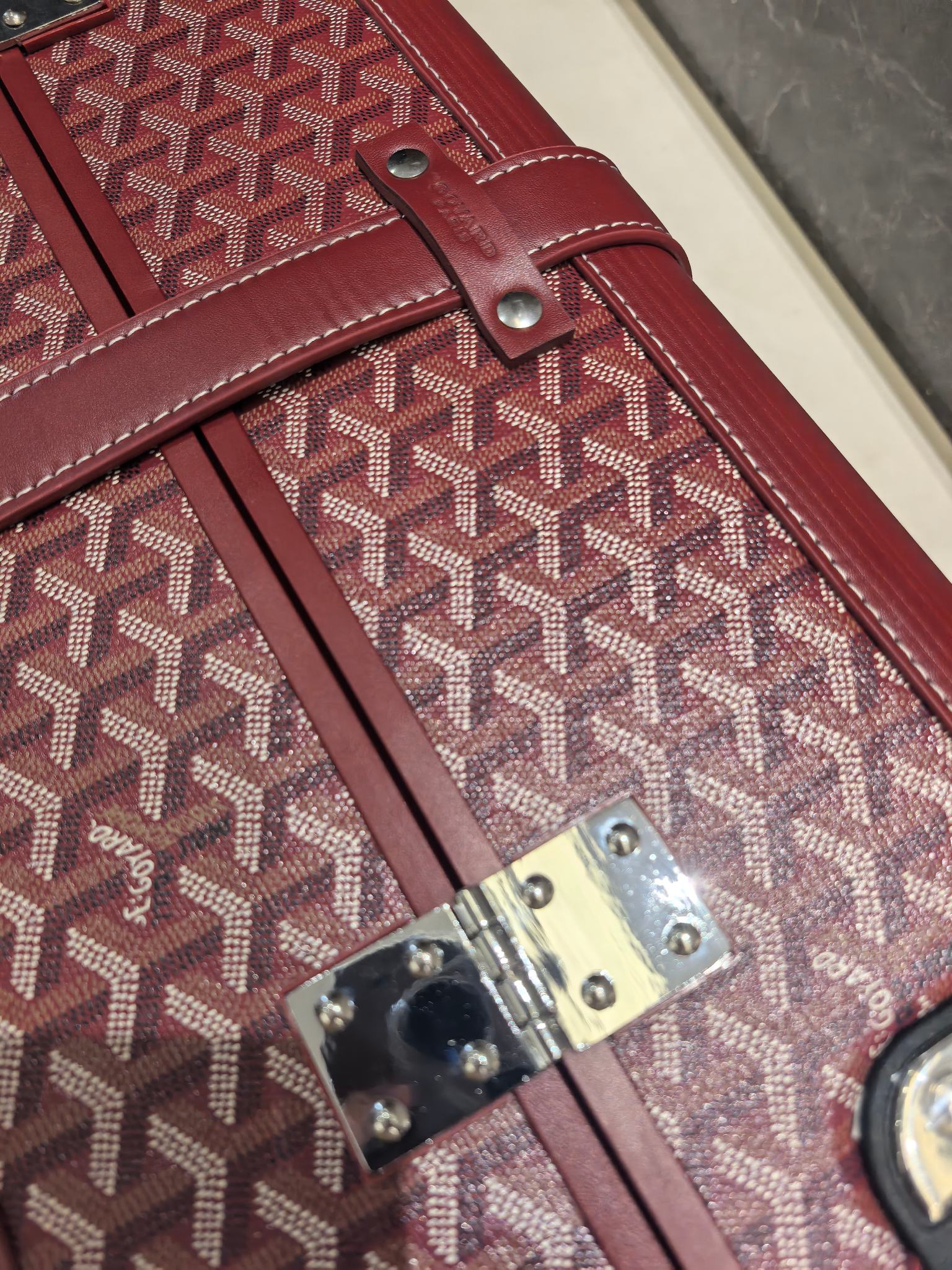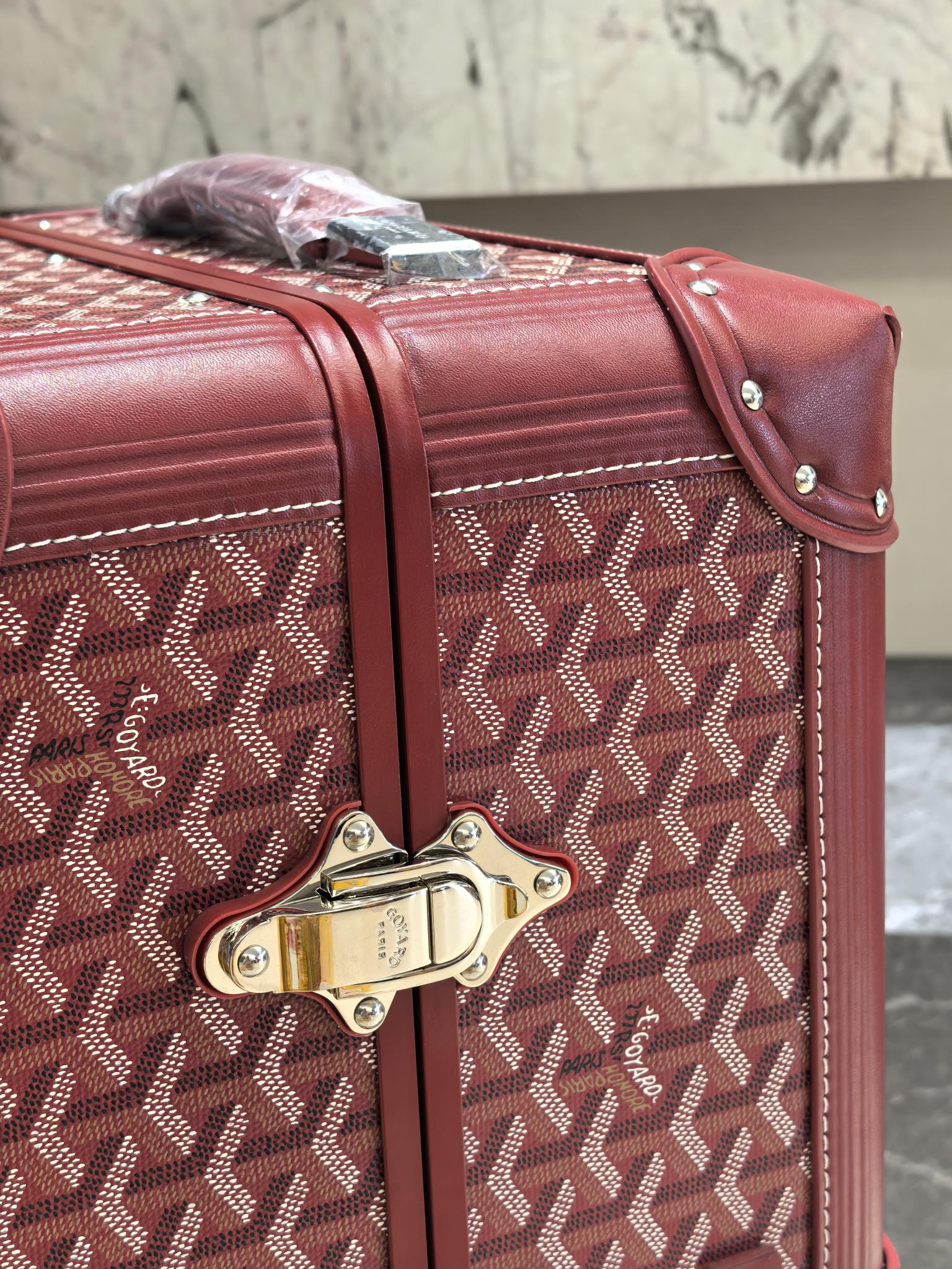 Goyard 20-inch Burgundy Cabin Trolley Suitcase - Handcrafted Luxury Travel Companion