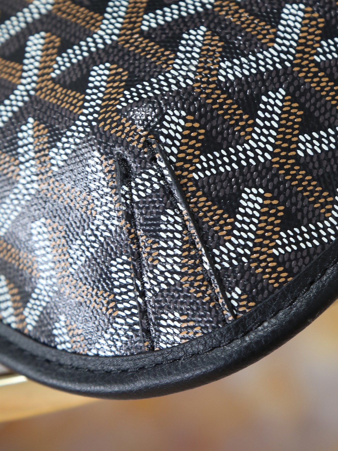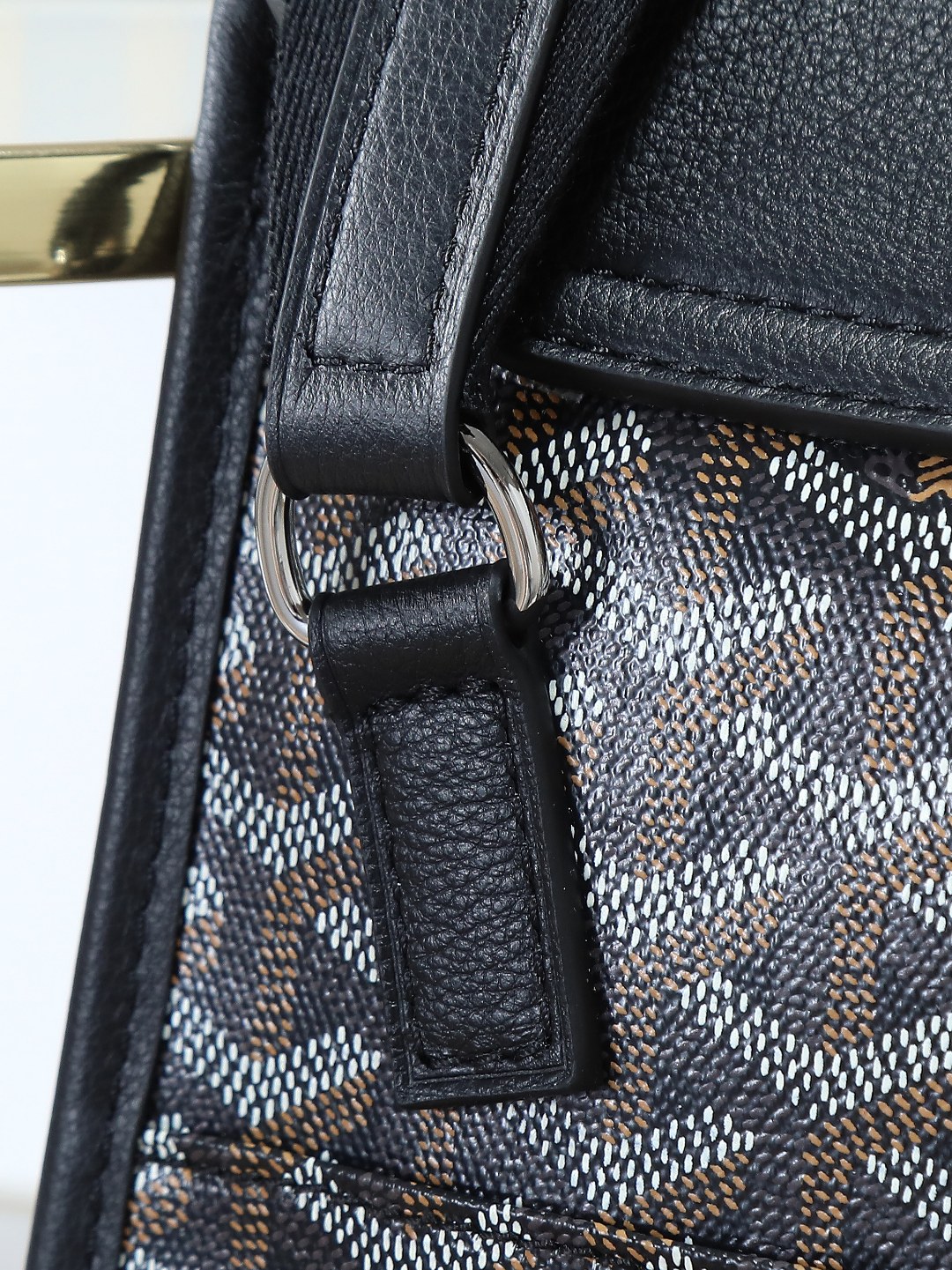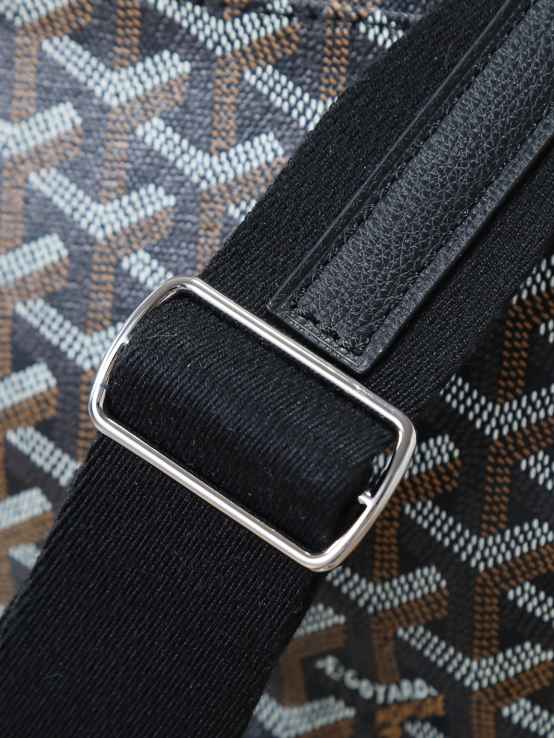 The Goyard Coursier bag is a stylish and compact everyday companion, featuring adjustable straps for comfortable crossbody wear.