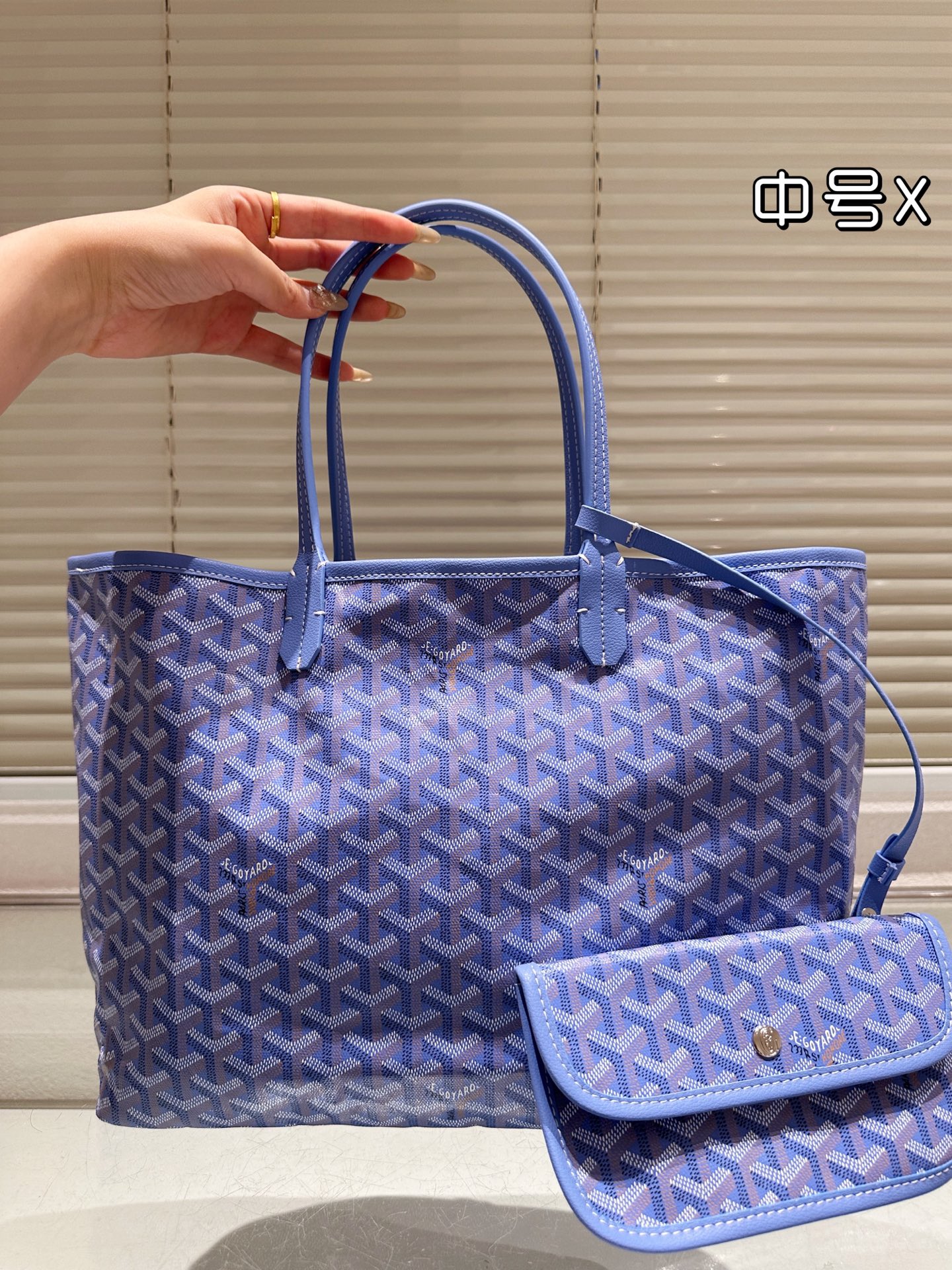 The Goyard tote bag is lightweight and durable. Its spacious design makes it ideal for carrying essentials for work or travel.