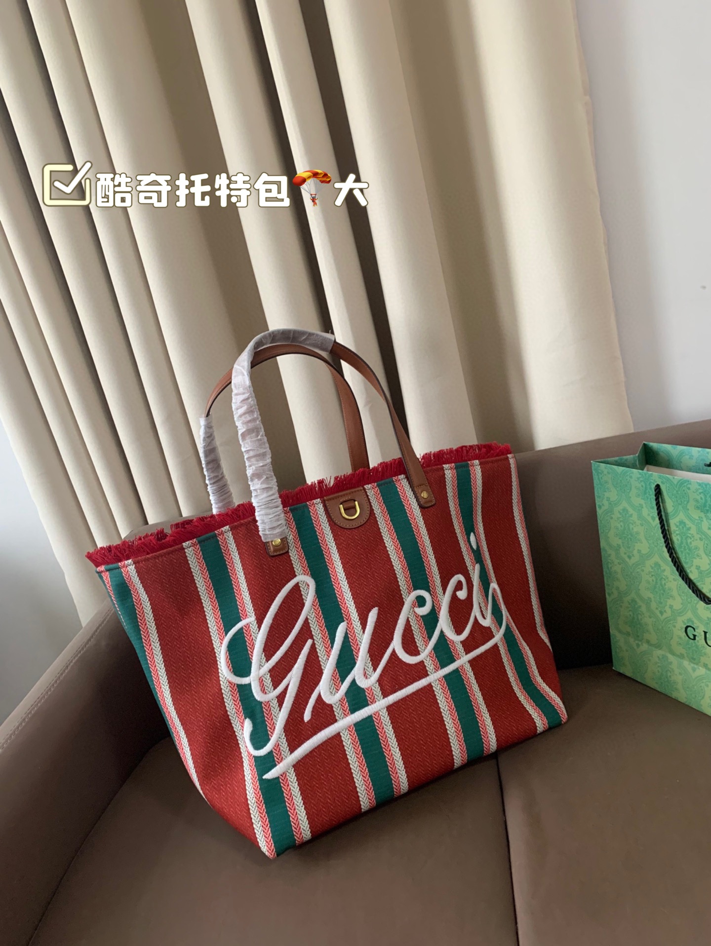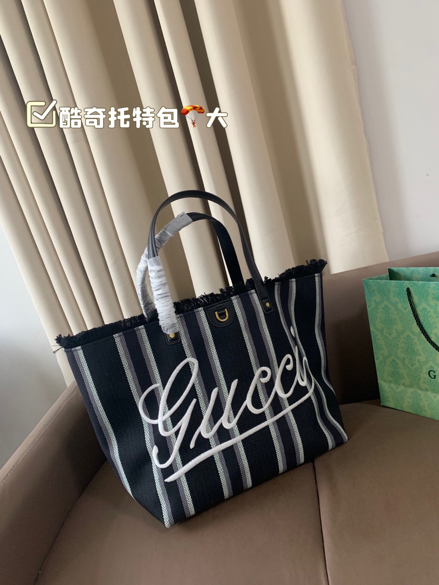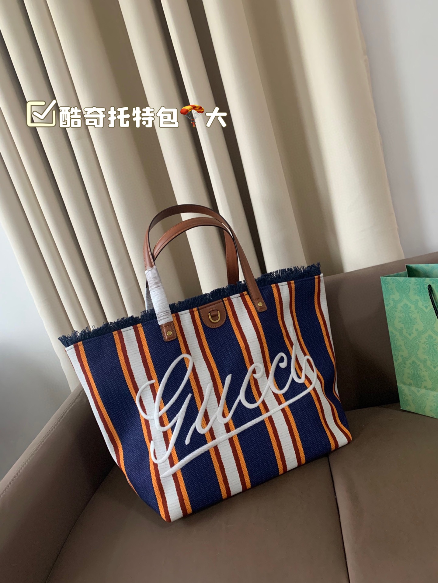 Gucci 2025 Spring Summer Striped Cotton Canvas Tote Bag with Gucci Embroidery