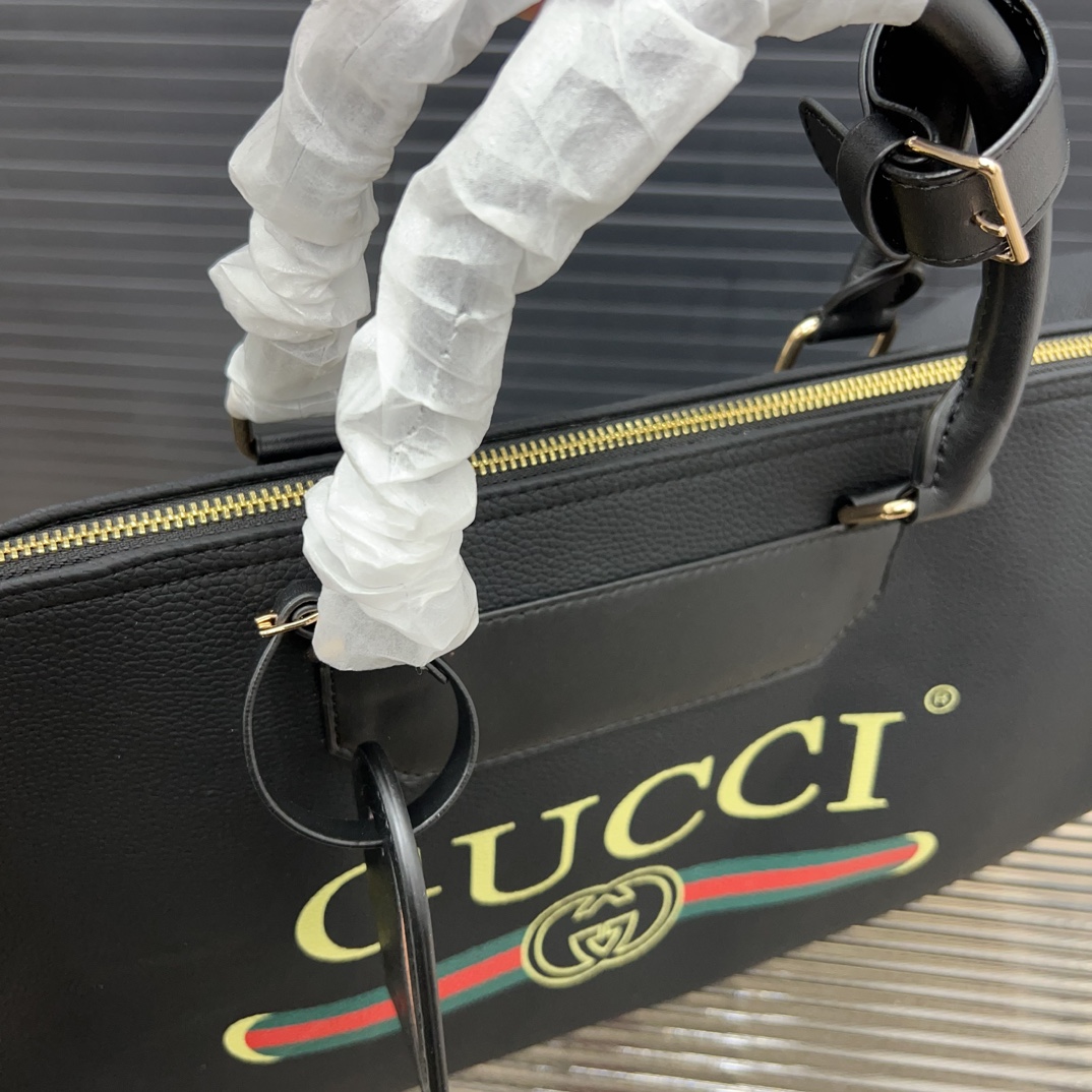 Gucci Embossed Leather Travel Bag, Large Capacity Airport Handbag