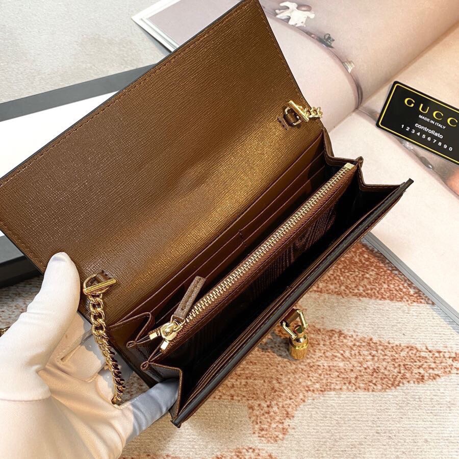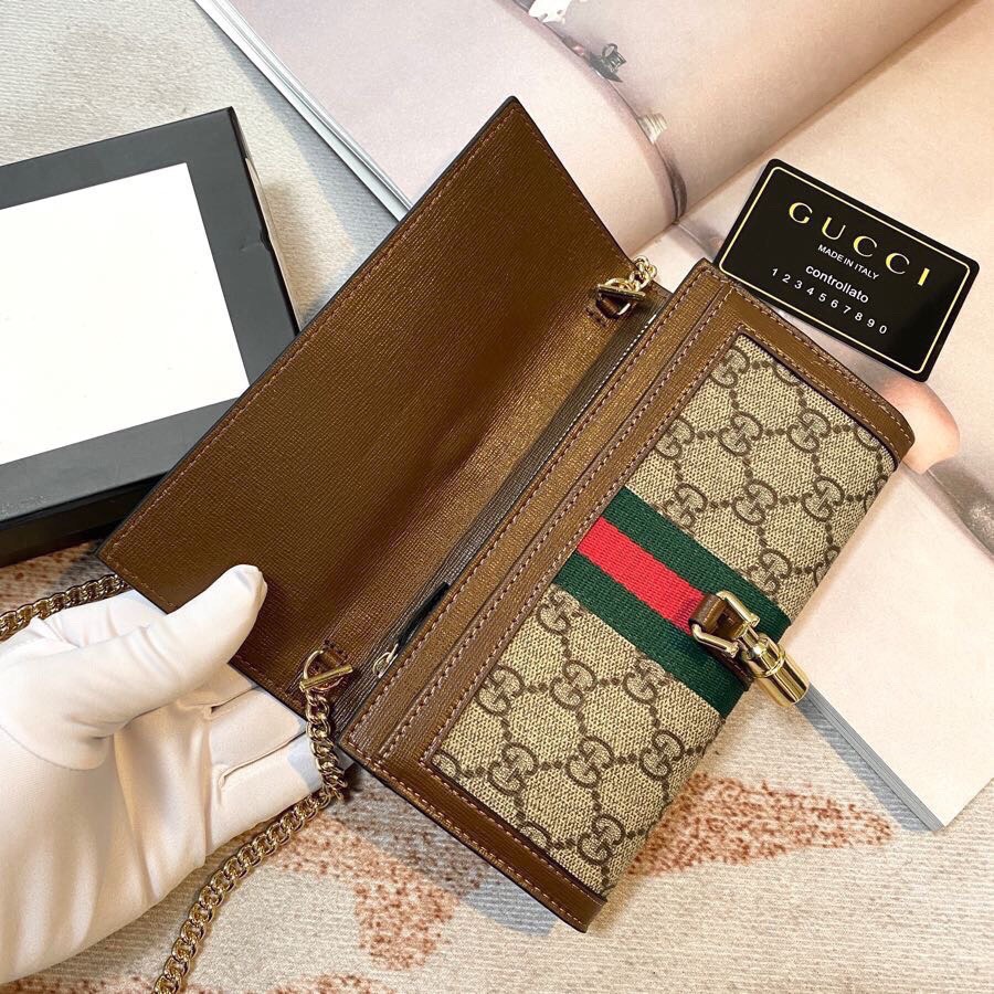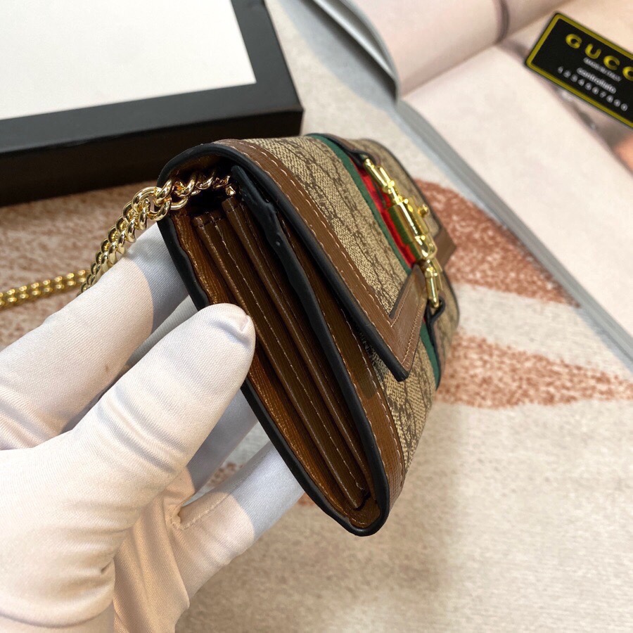 Gucci Jackie 1961 Chain Wallet - Brown GG Supreme Canvas and Gold Hardware