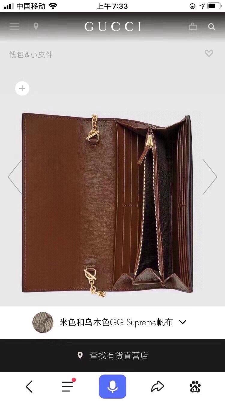 The Gucci Jackie 1961 chain wallet presents a fusion of classic design and modern functionality. This wallet is crafted in GG Supreme canvas, complete with a luxurious gold-tone push-lock closure and a detachable chain strap.